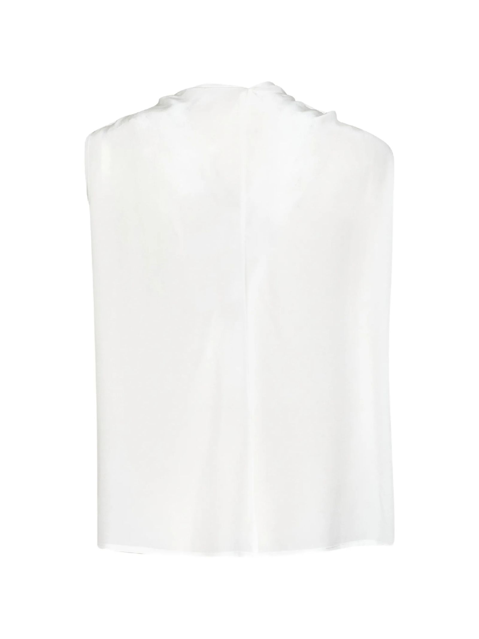 White silk blouse, sleeveless, classic collar, knot closure