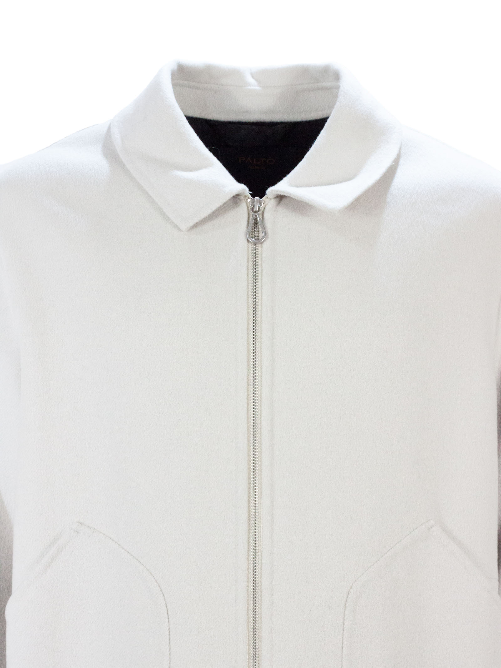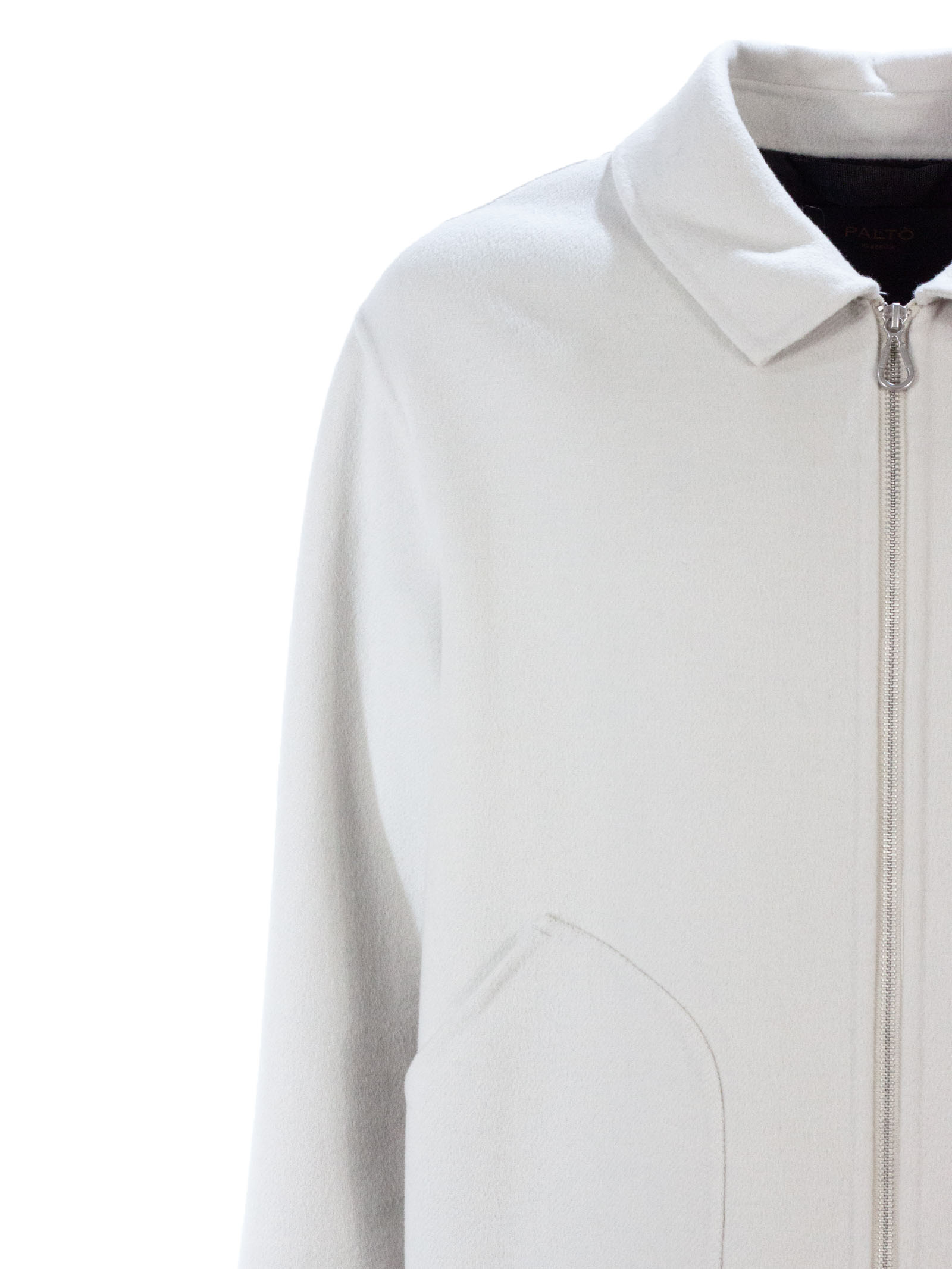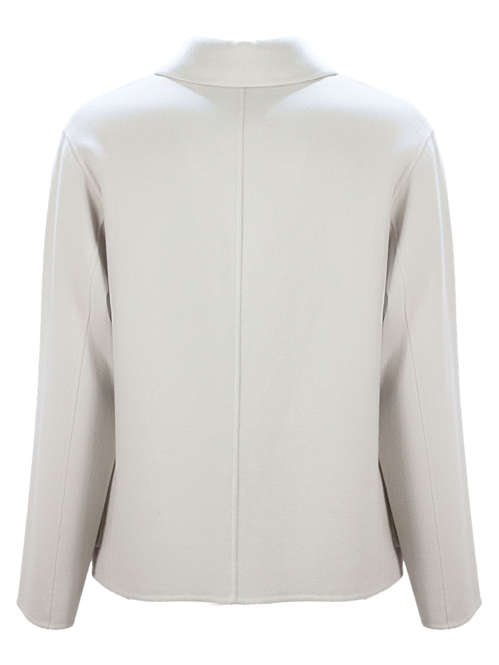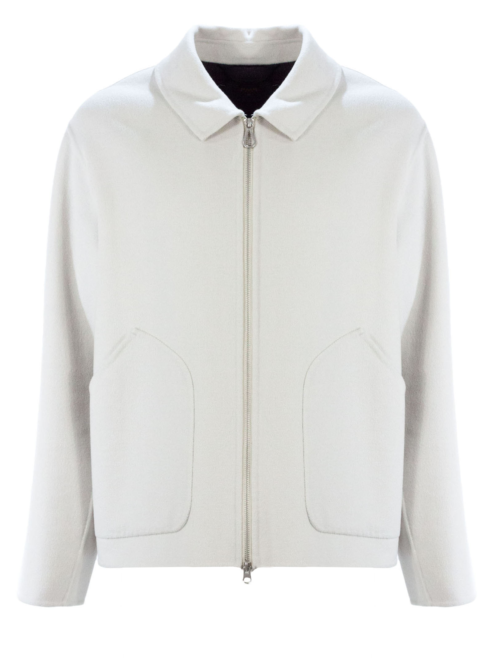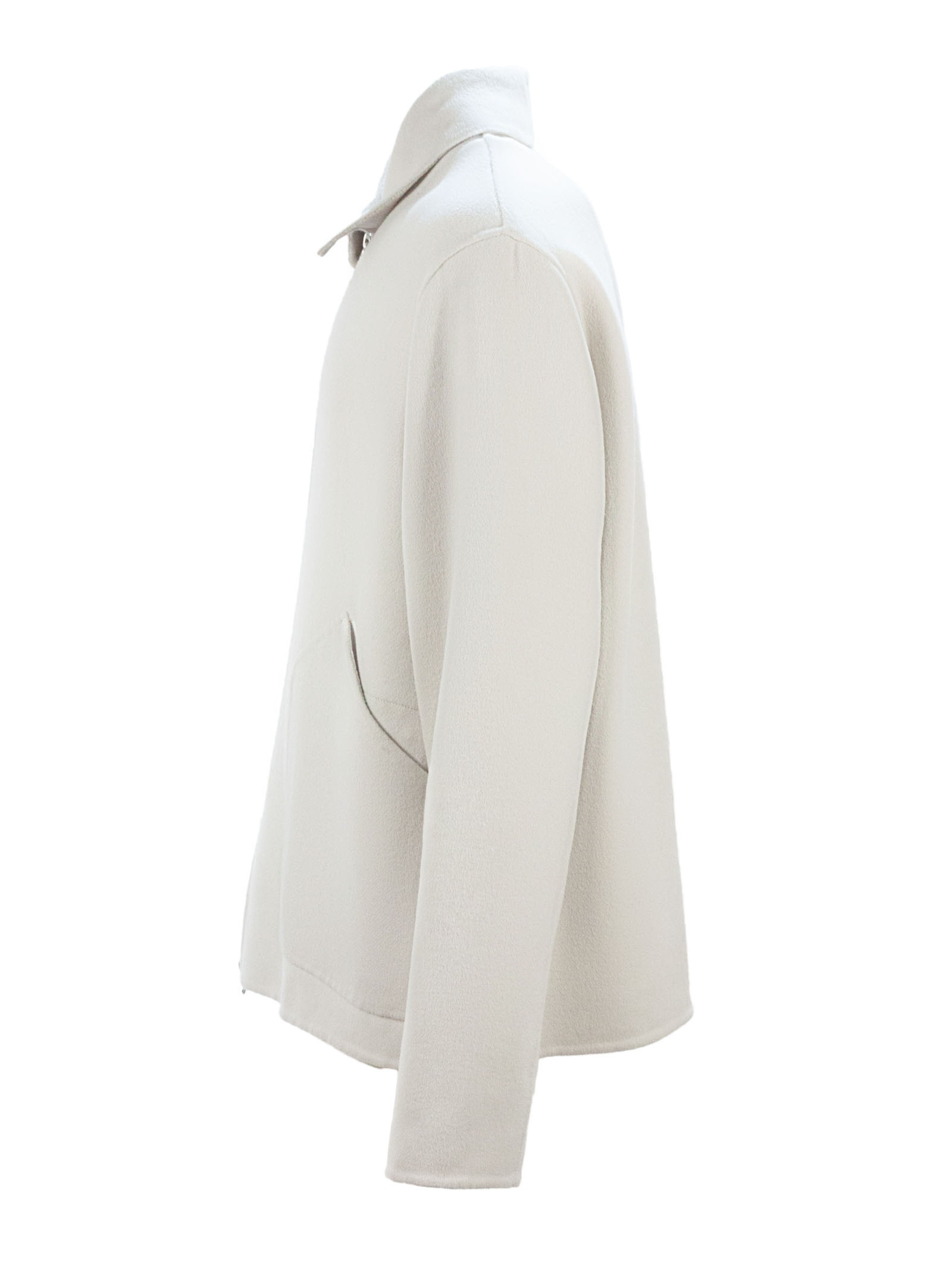 Off-white wool blend jacket with classic collar, large pockets, front zip fastening, cotton blend lining