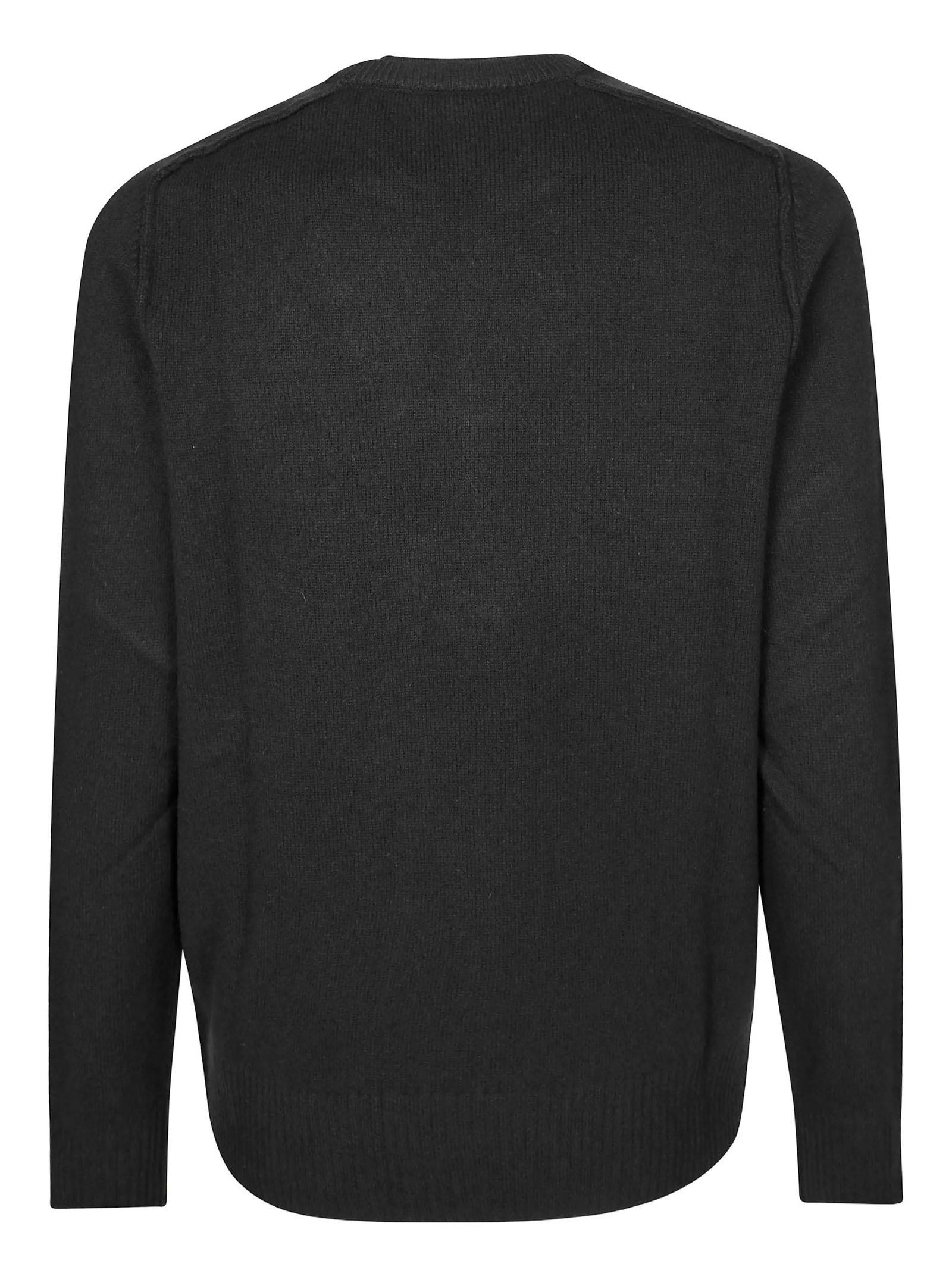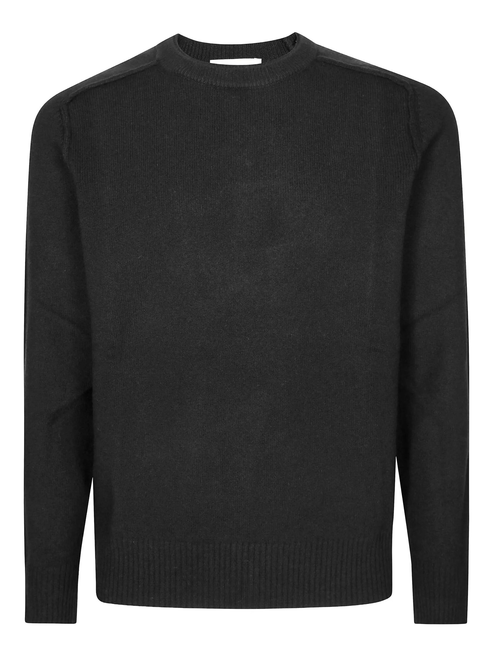 Black virgin wool jumper with round neck, ribbed cuffs, ribbed hem, ribbed collar, long sleeves