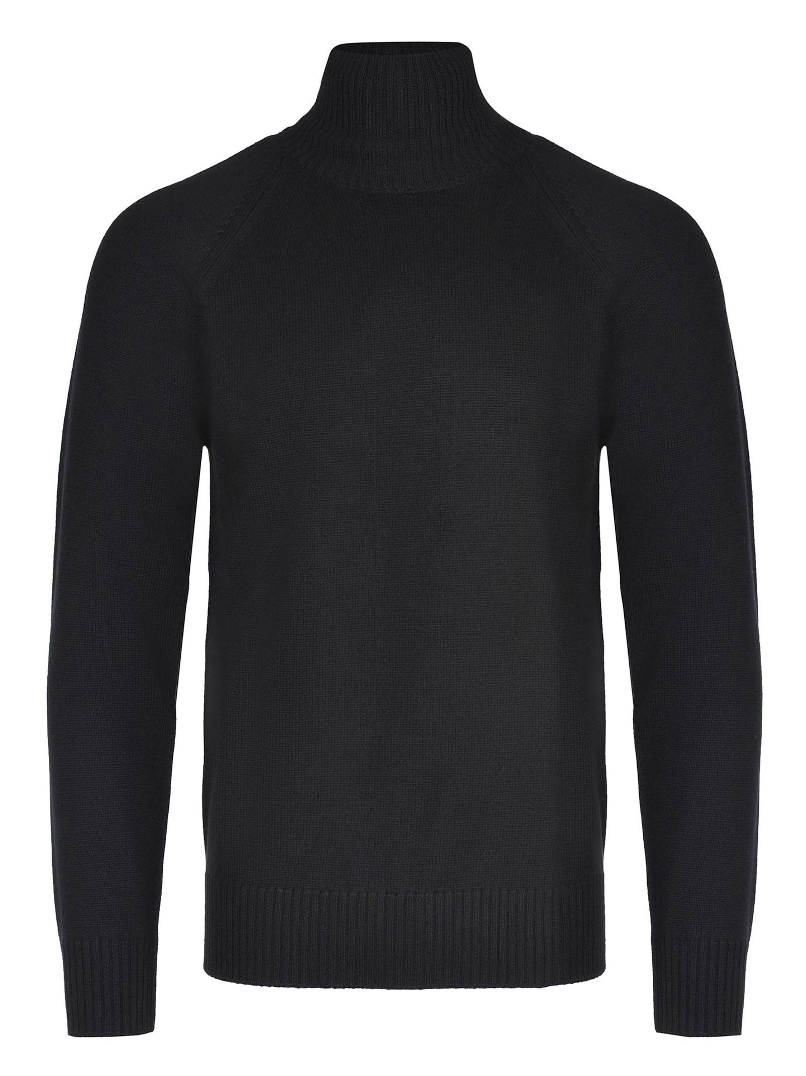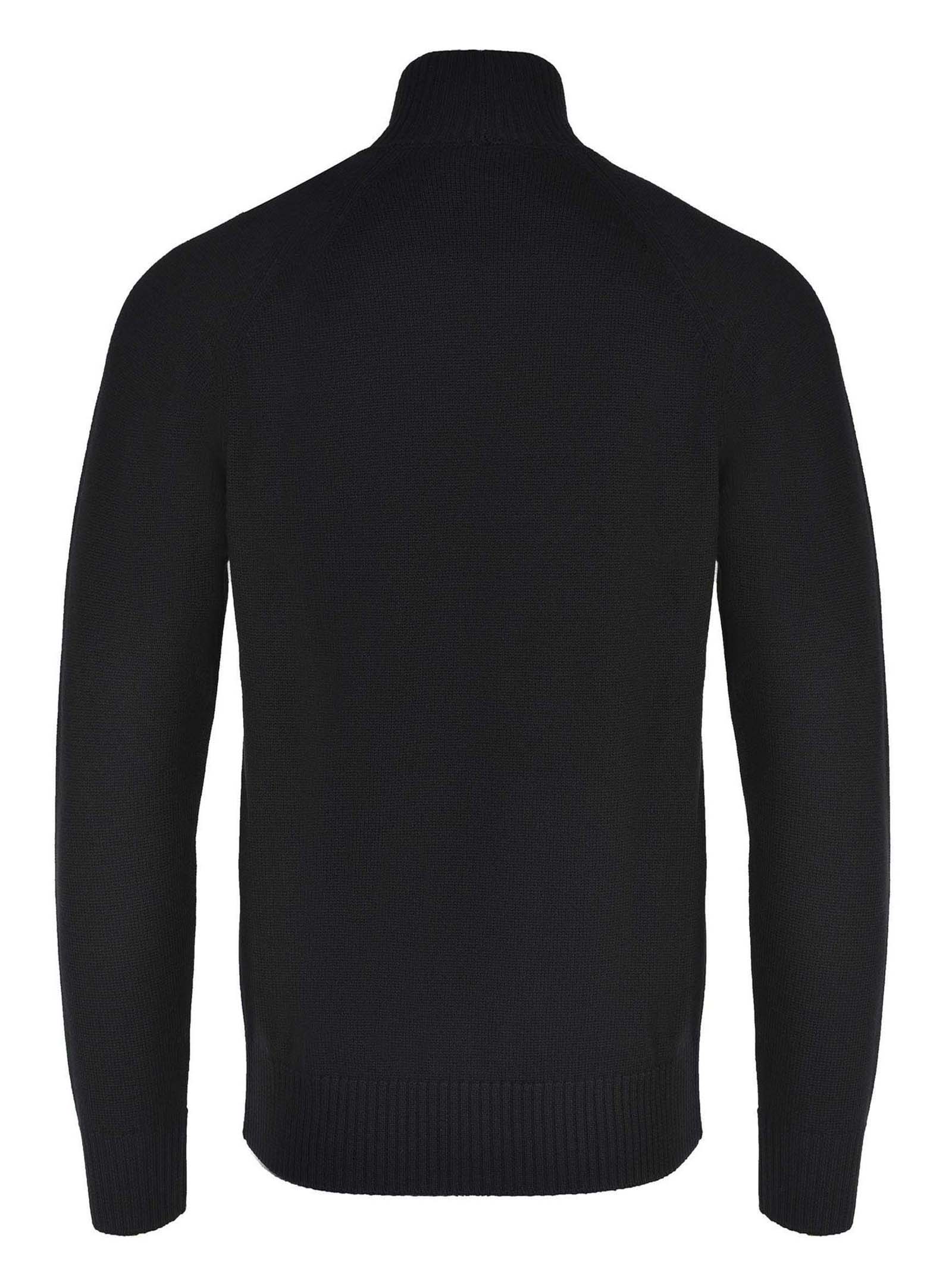 Black virgin wool sweater with ribbed collar, cuffs, and waistband, Regular fit