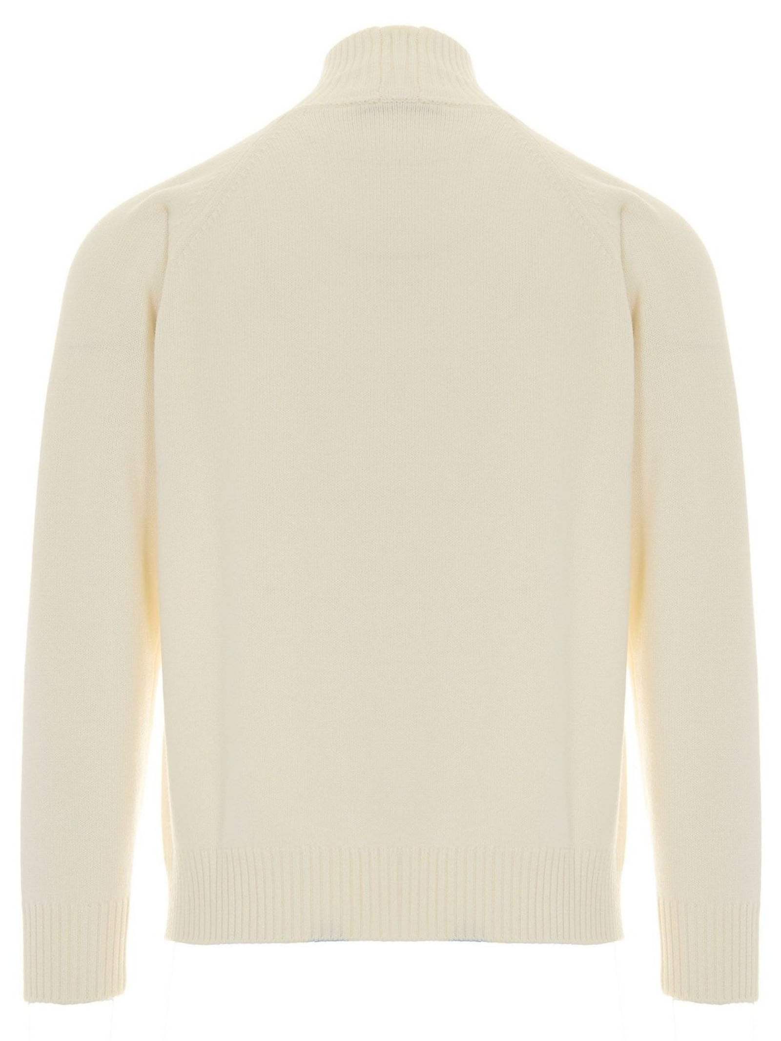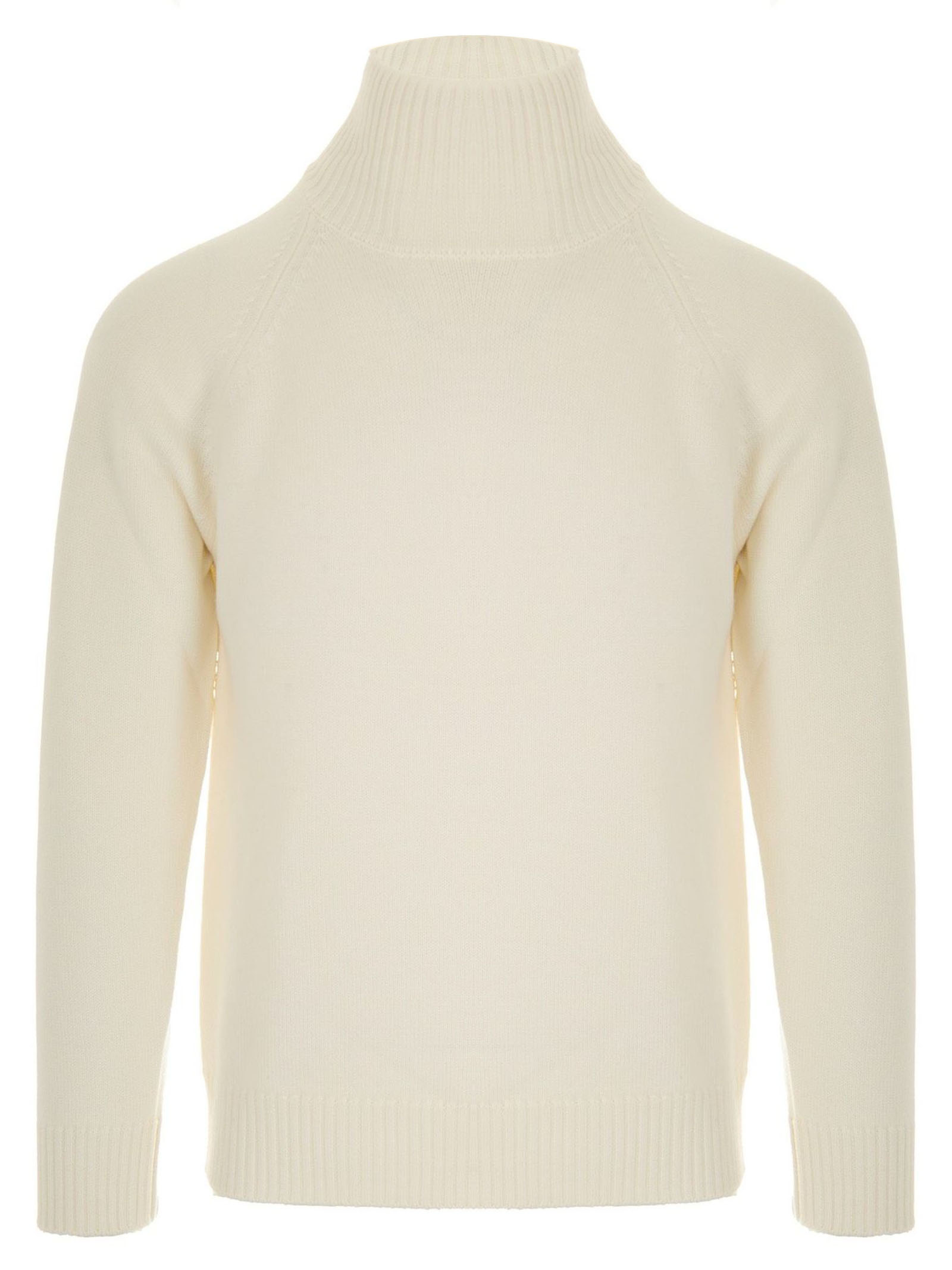 Cream virgin wool jumper with a high neck, long sleeves and ribbed trim