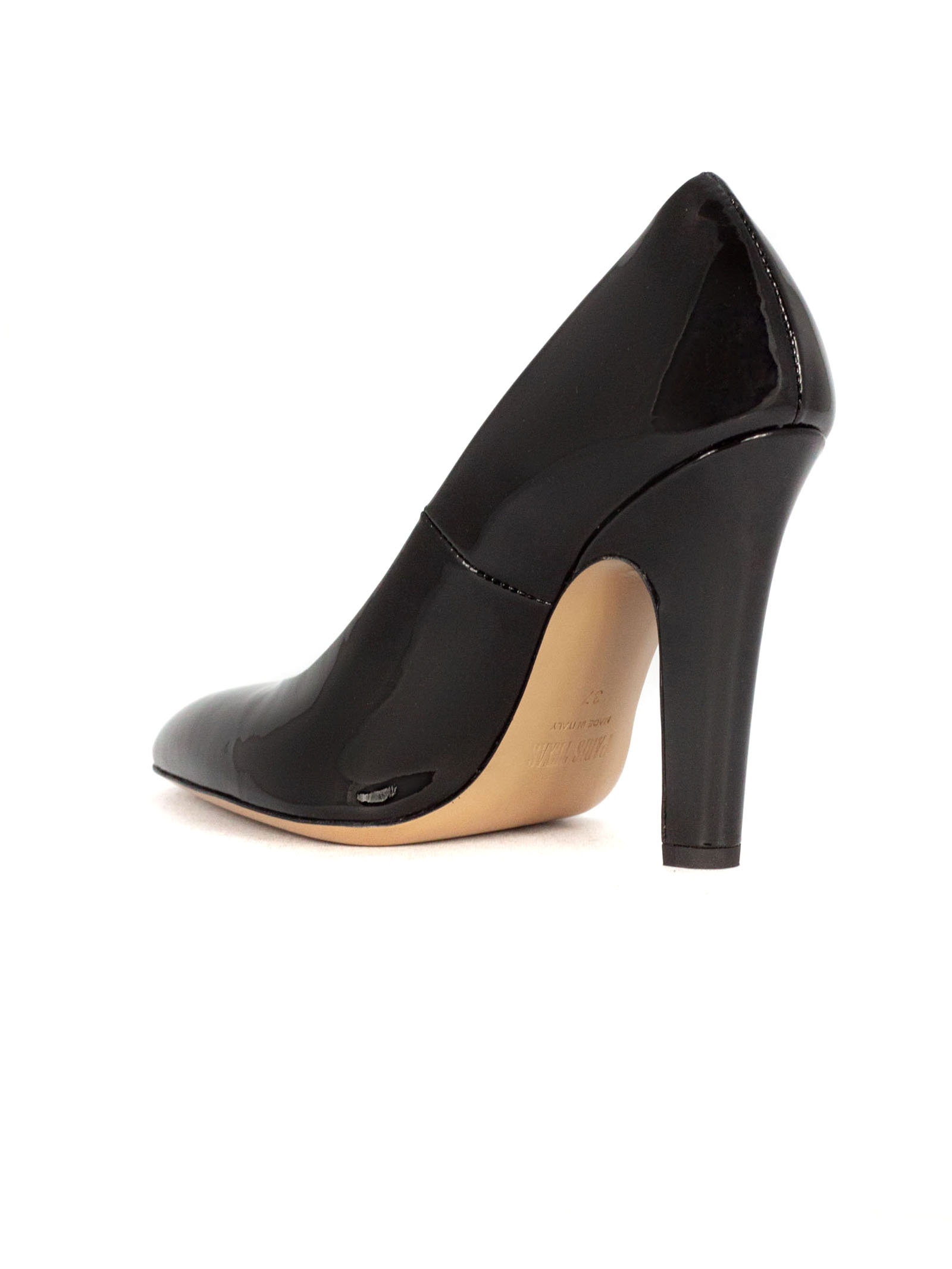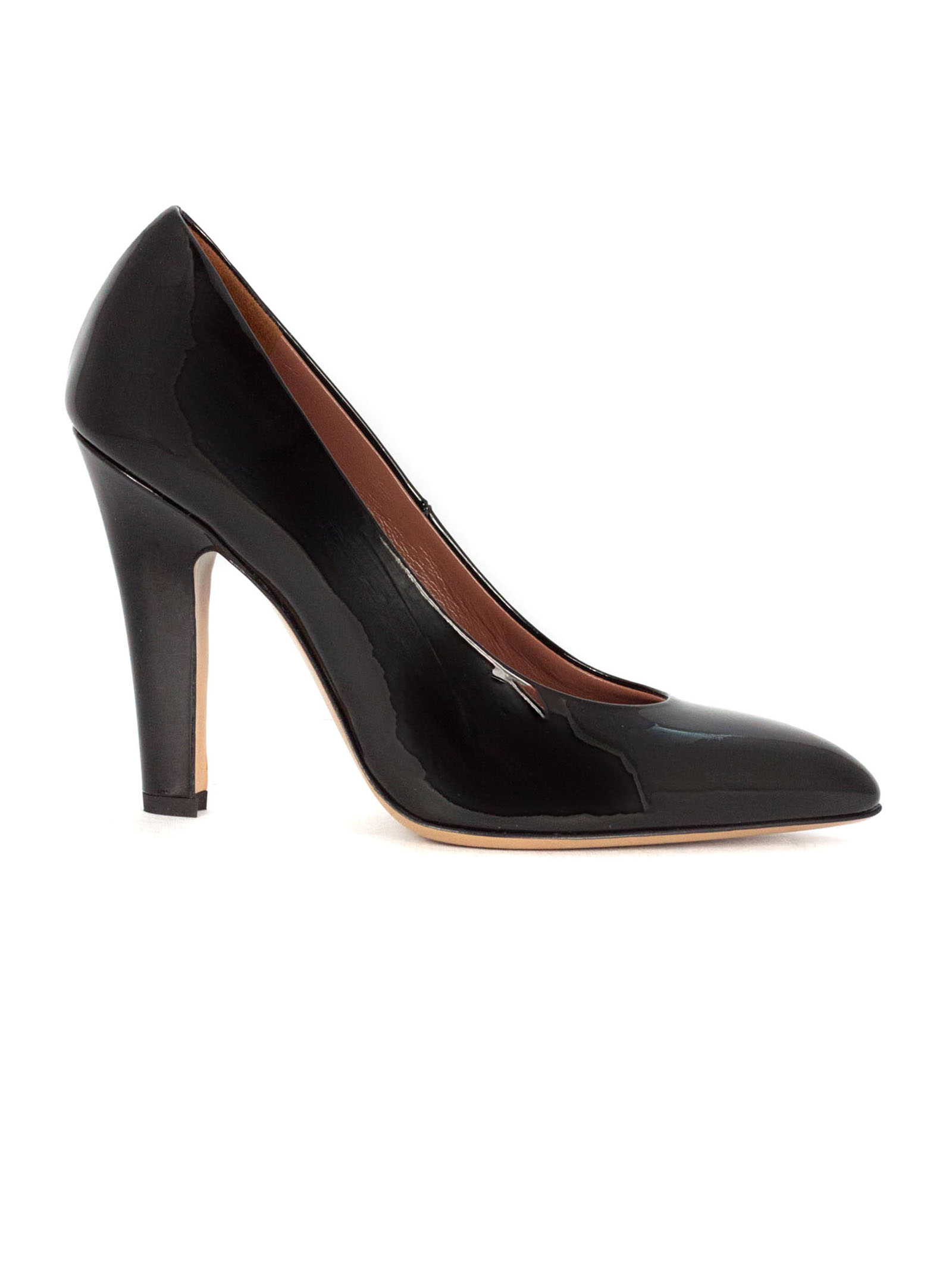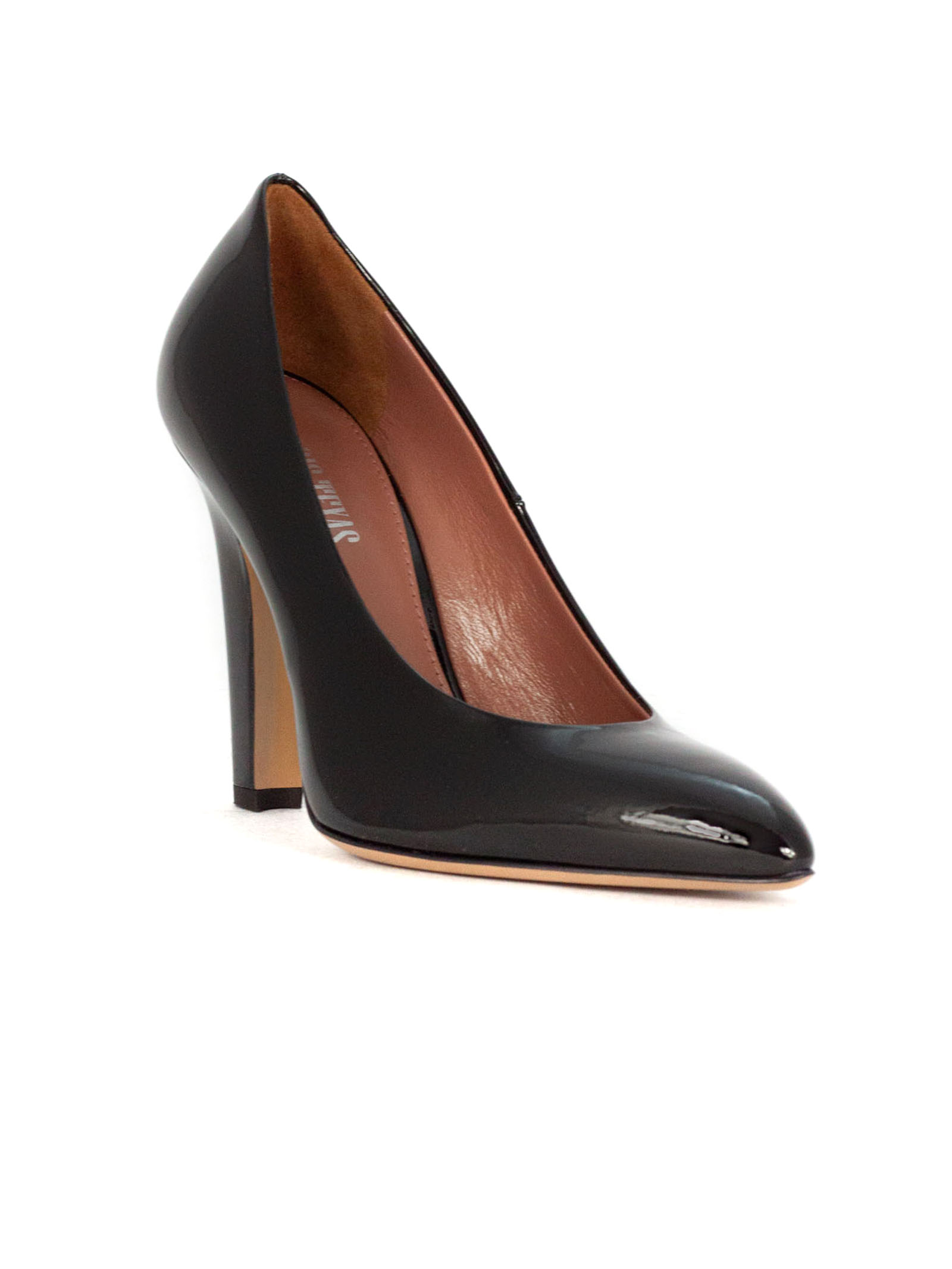 Black patent leather pumps, tapered toe, leather sole with logo, leather lining, heel height approx. 10 cm