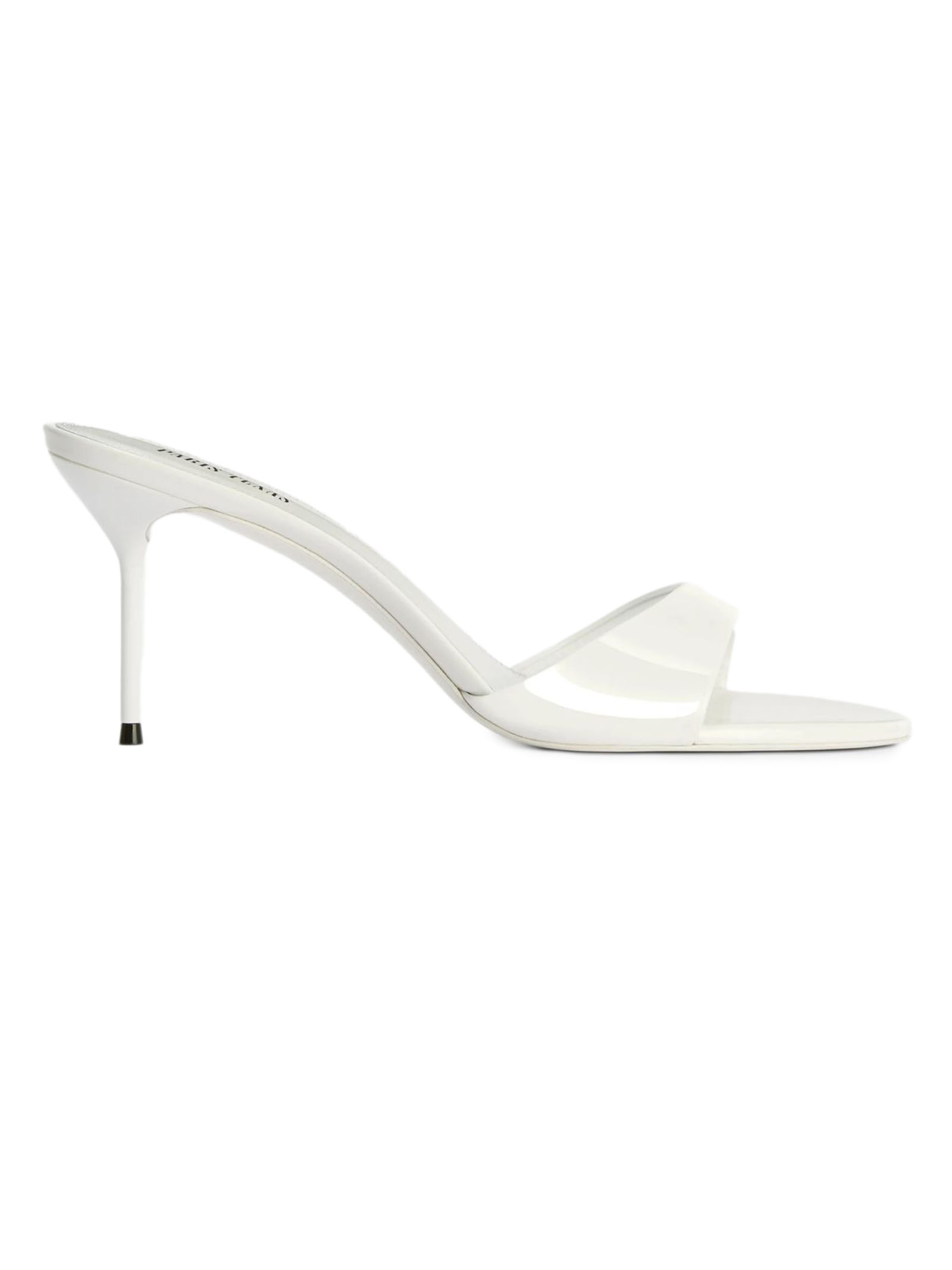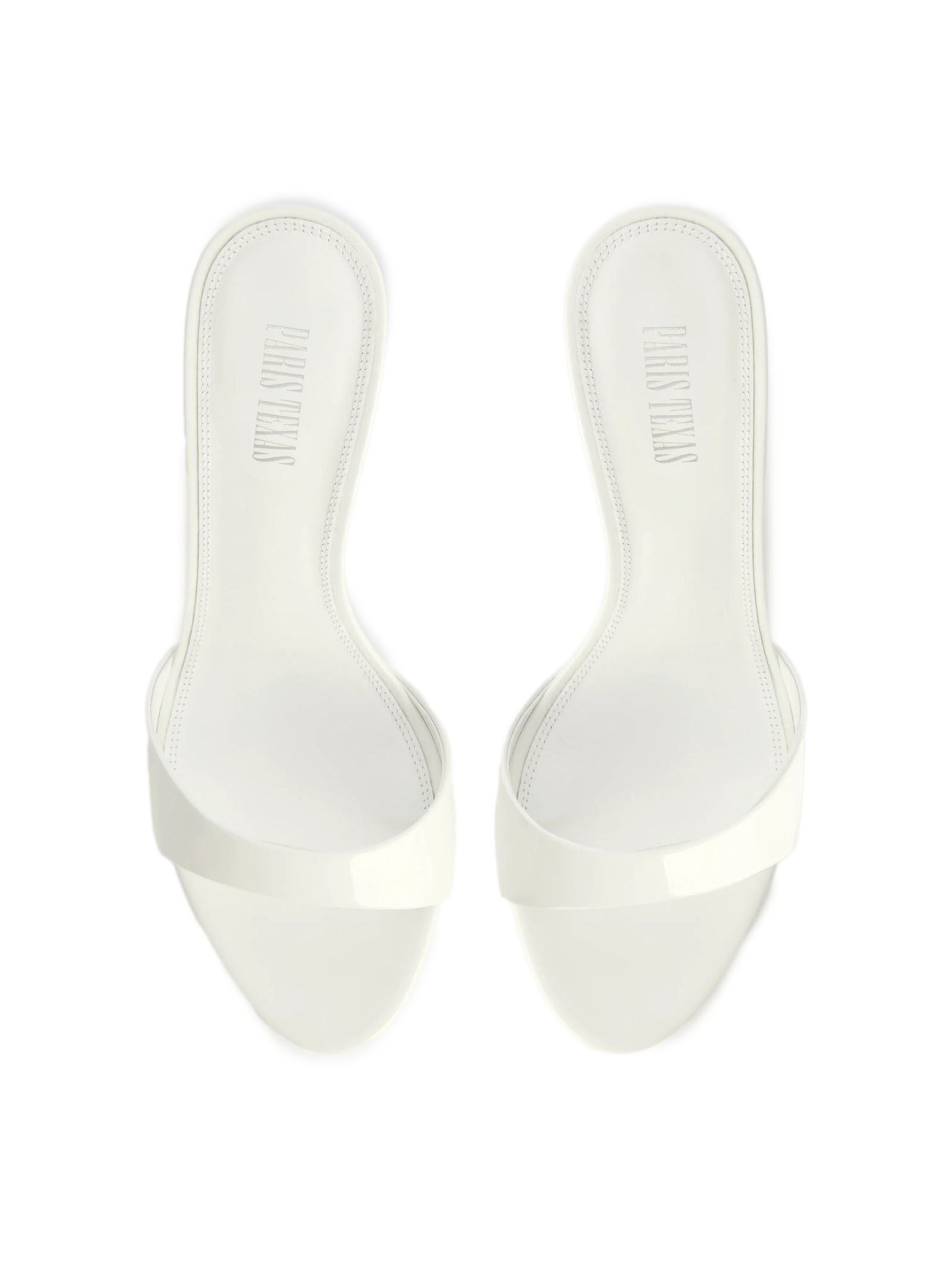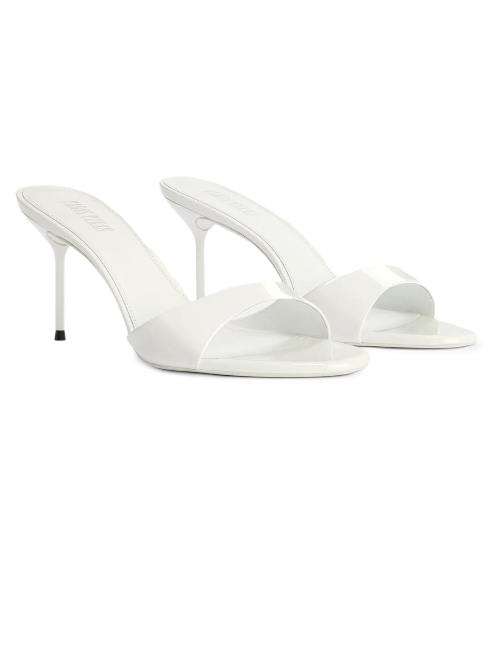 Lidia 70 mules in optic white patent leather, round toe, leather sole with logo, heel height 70mm