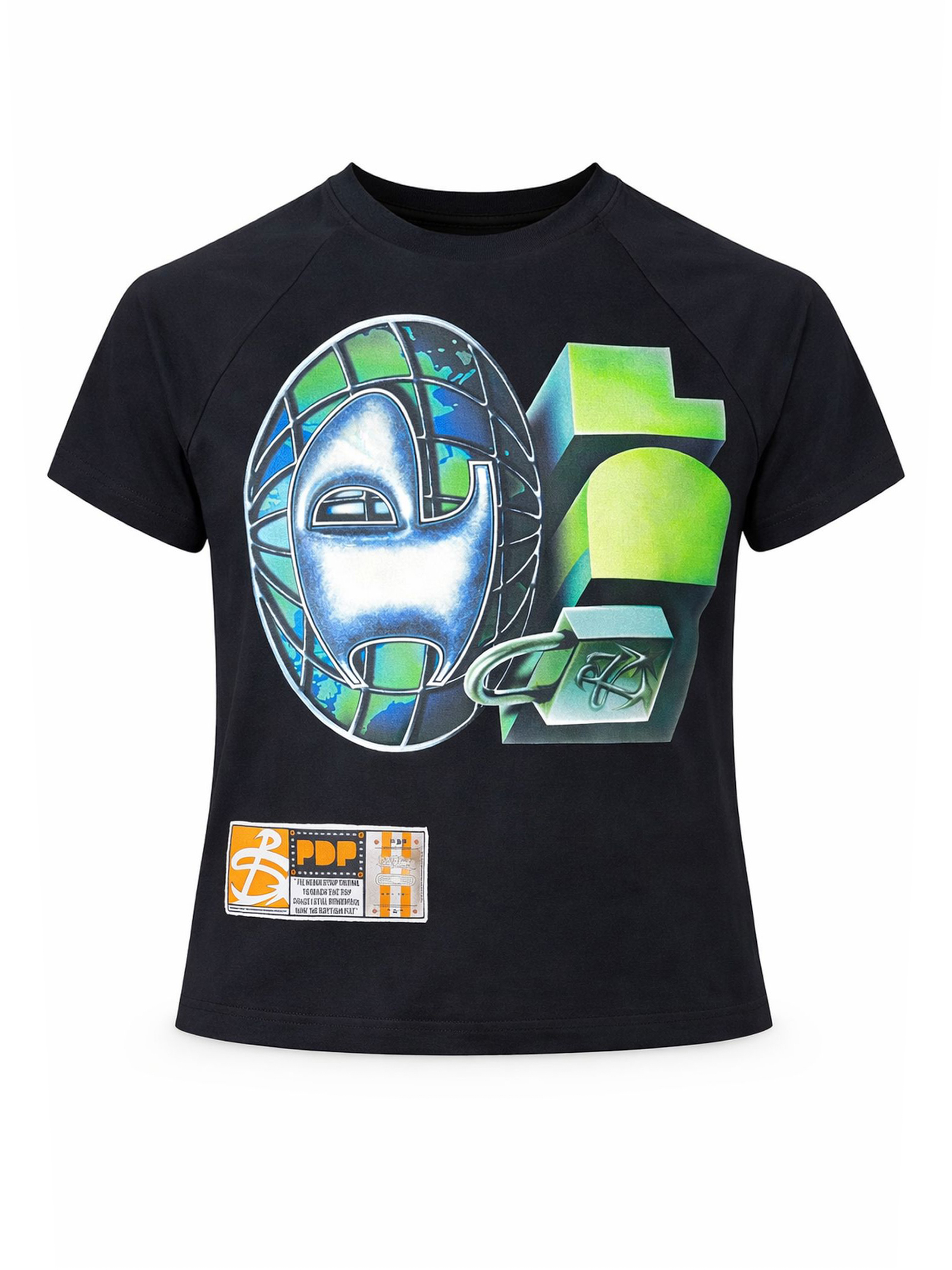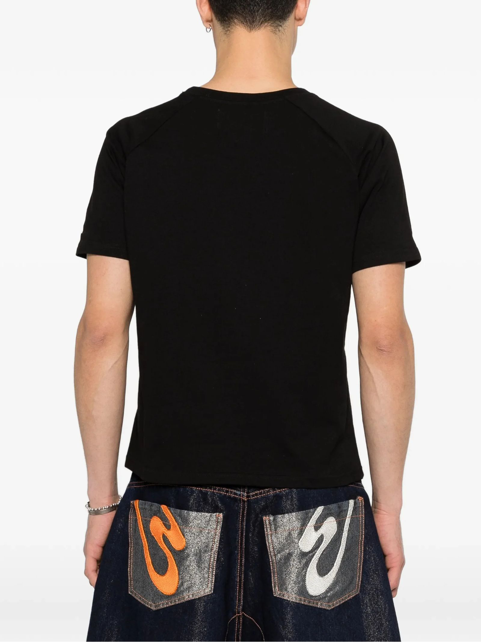 Black cotton T-shirt, graphic print, round neck, short sleeves, skinny fit