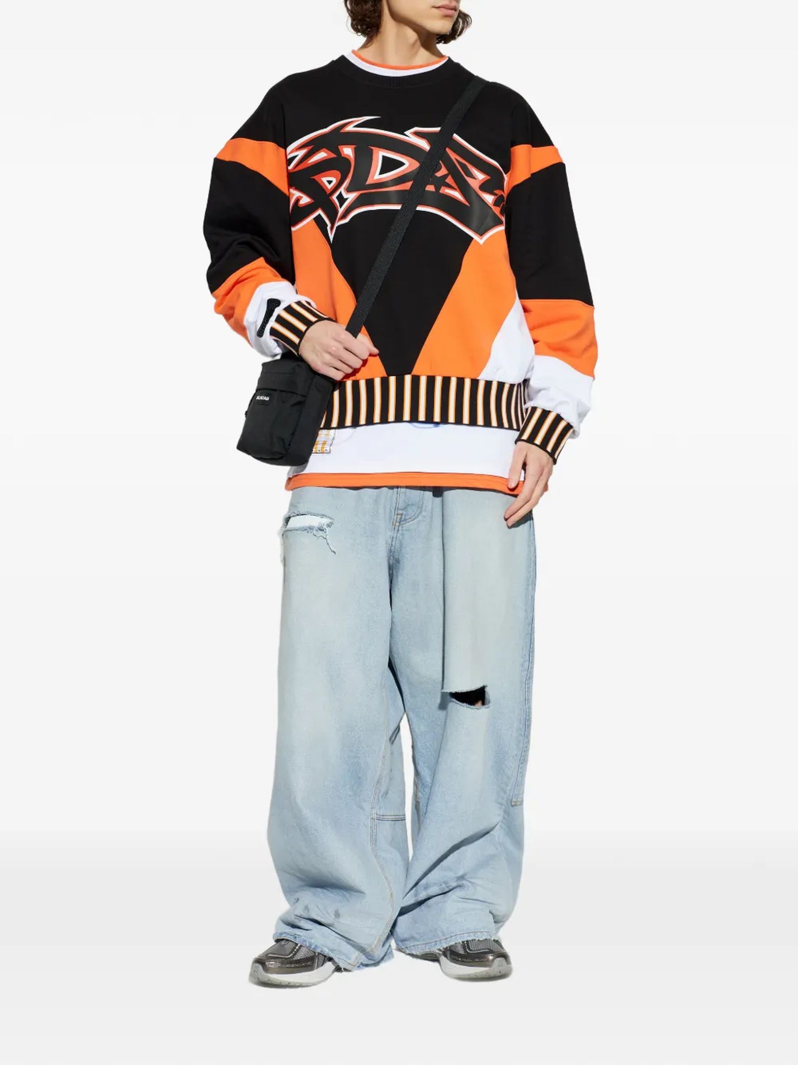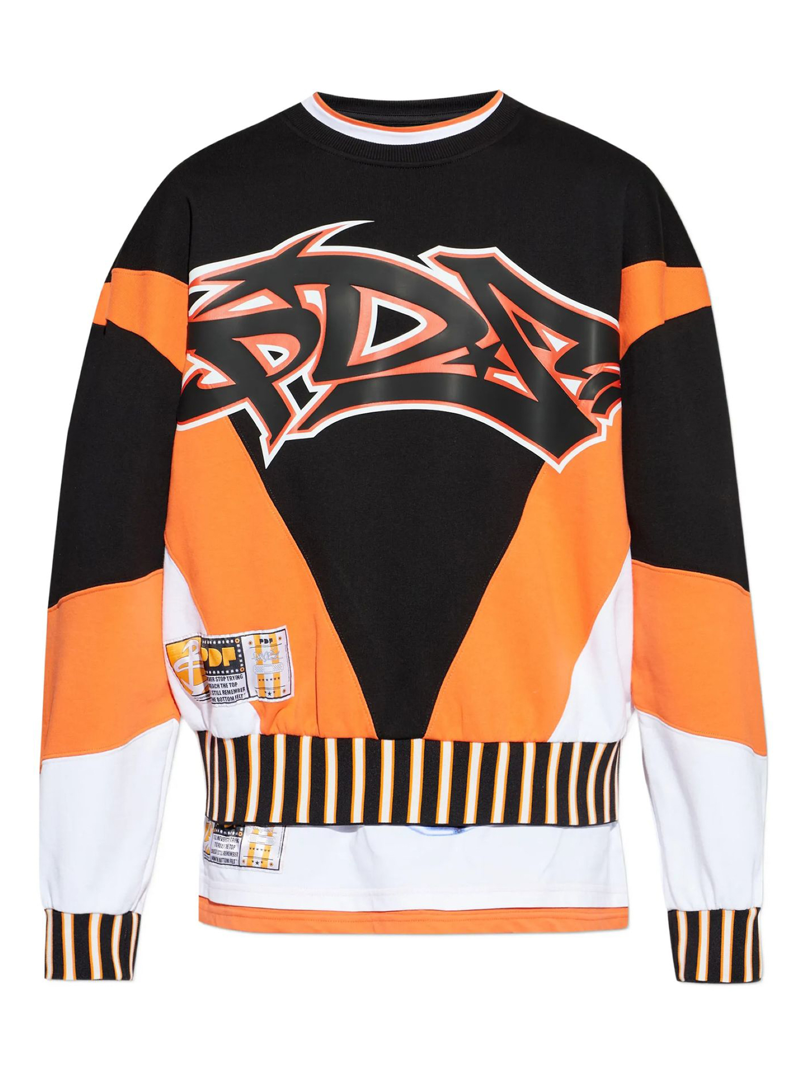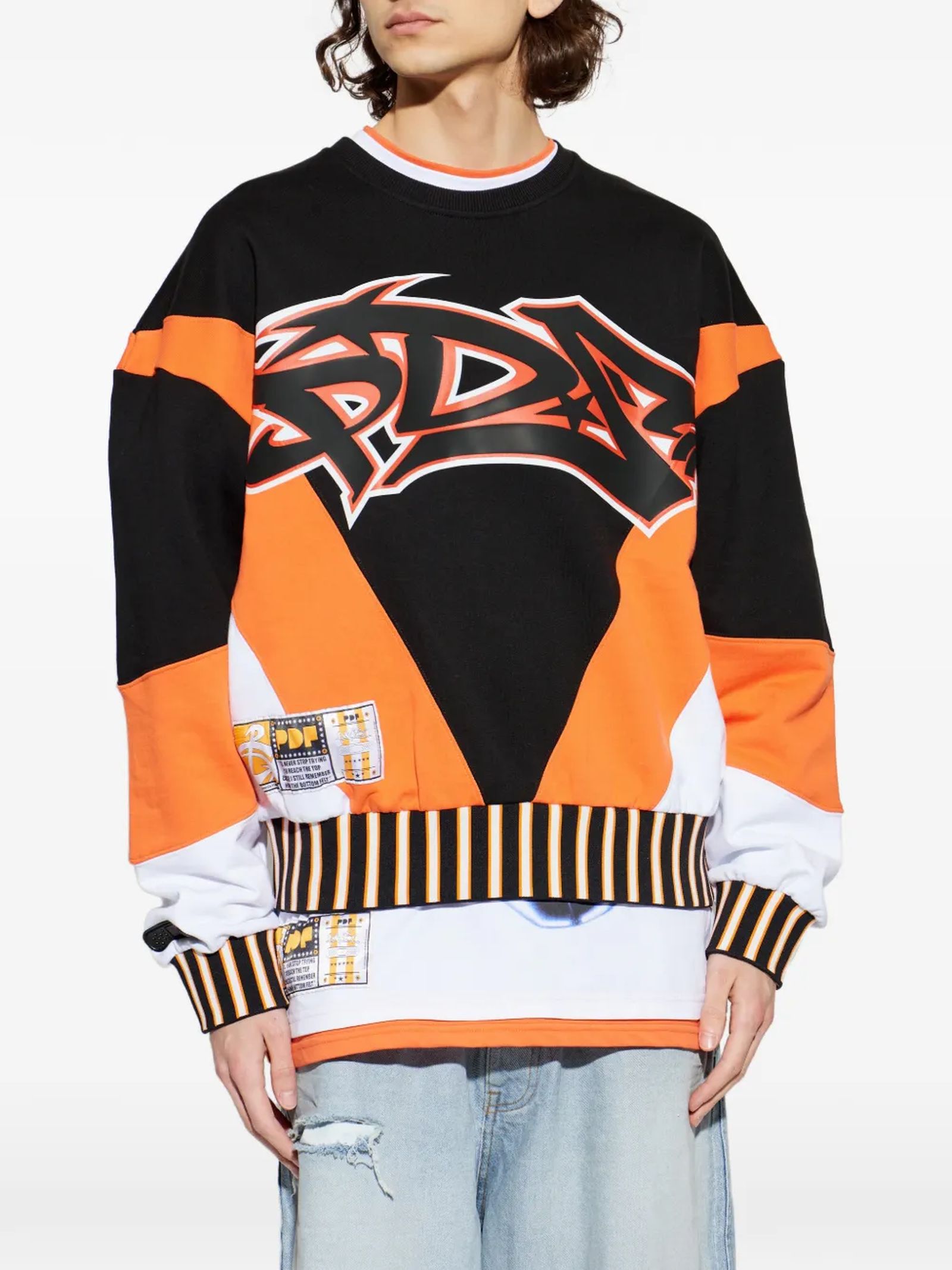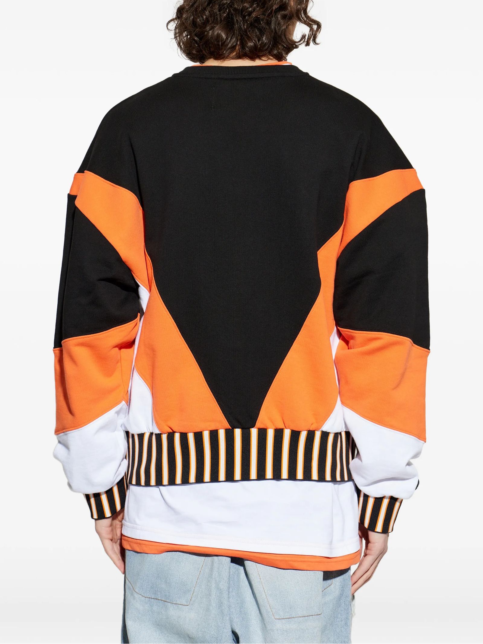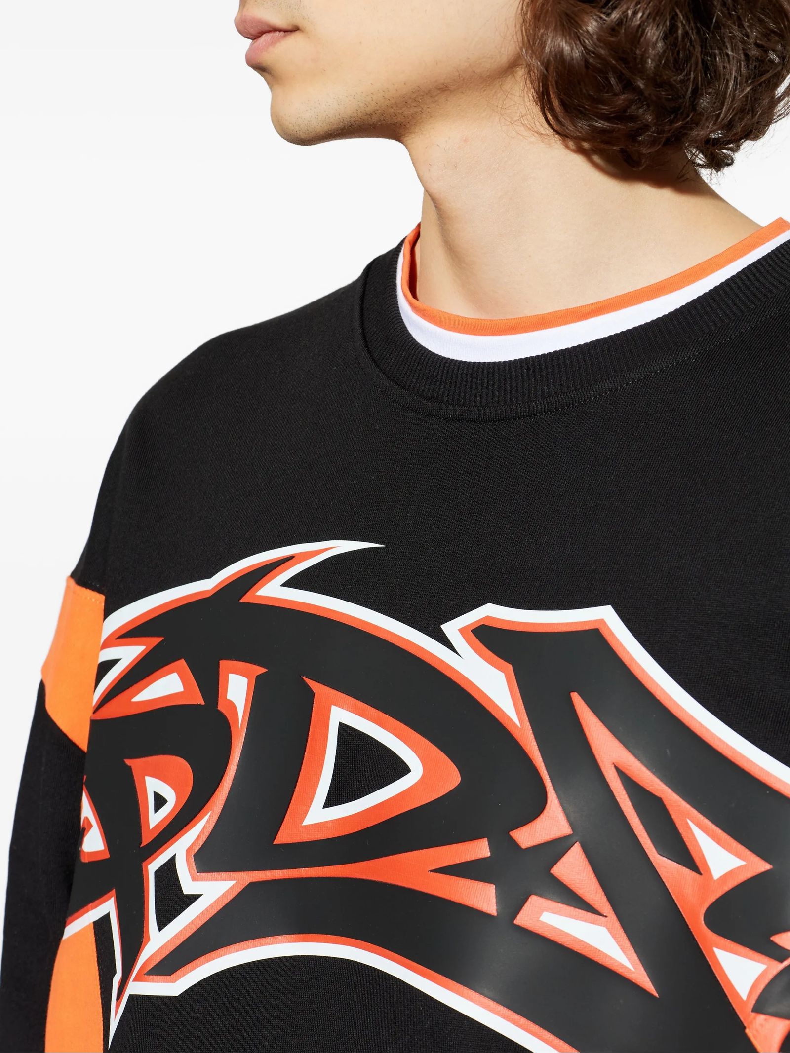 Black, orange and white cotton sweatshirt, Front graphic logo, Personalized front label, Ribbed collar, cuffs and hem, FIT: Oversized / Boxy