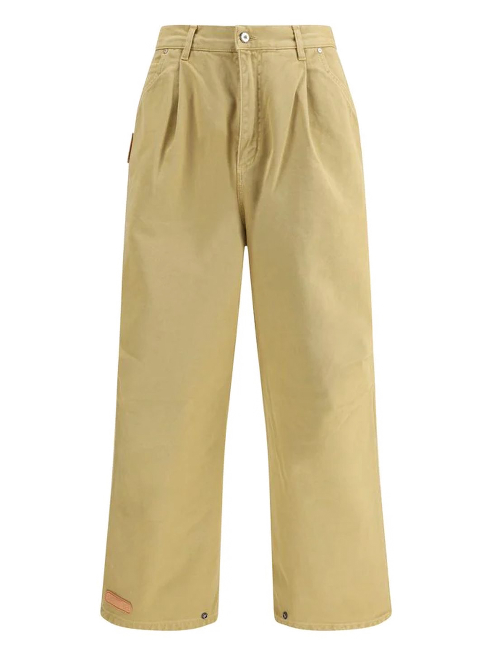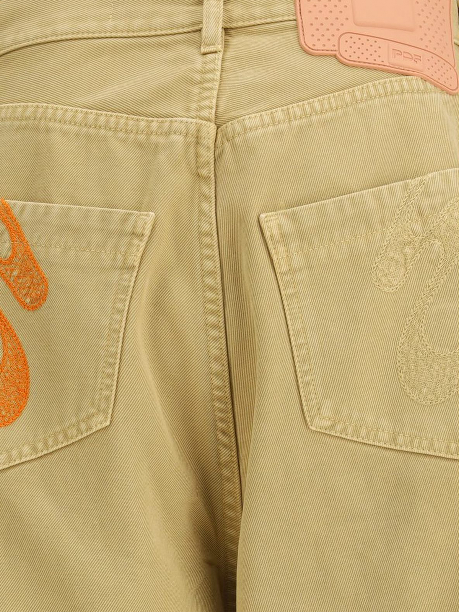 Sand-tone cotton jeans, Over-dyed, 5 Pockets, Personalized hardware, Bandana print inside the hem