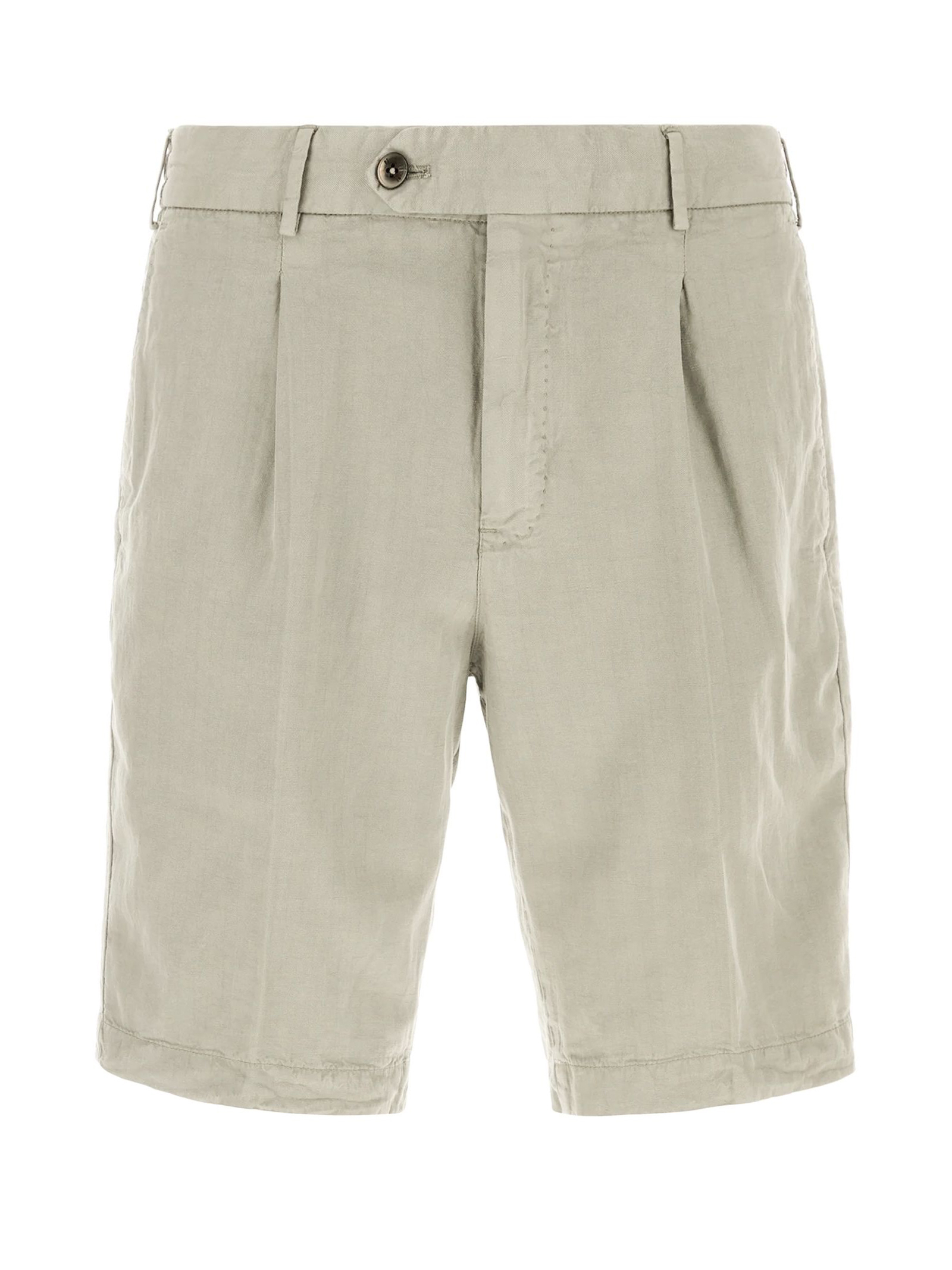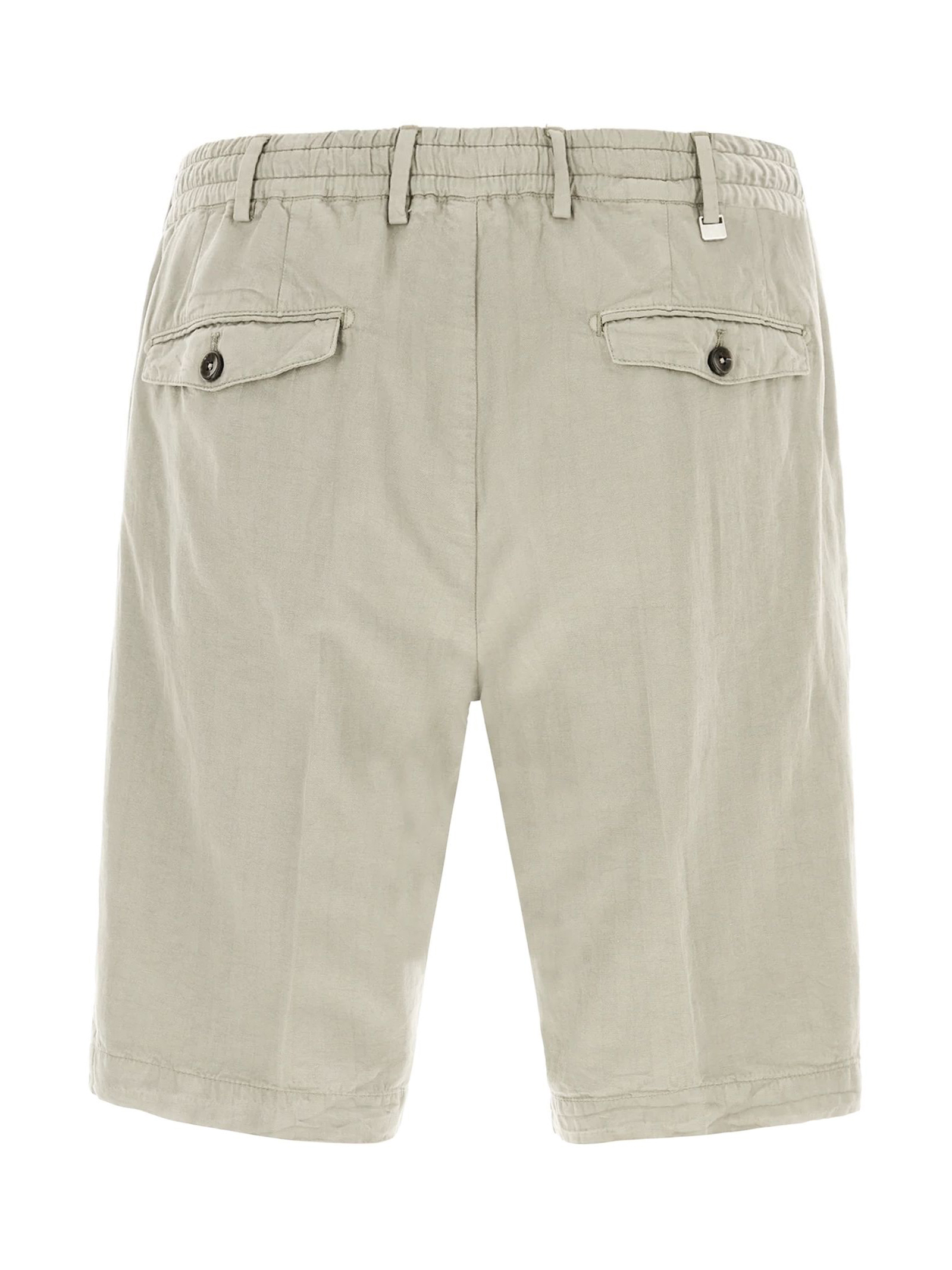 Beige Linen chino shorts, pleated front, button fastening, welt pockets, elasticated waistband, straight hem