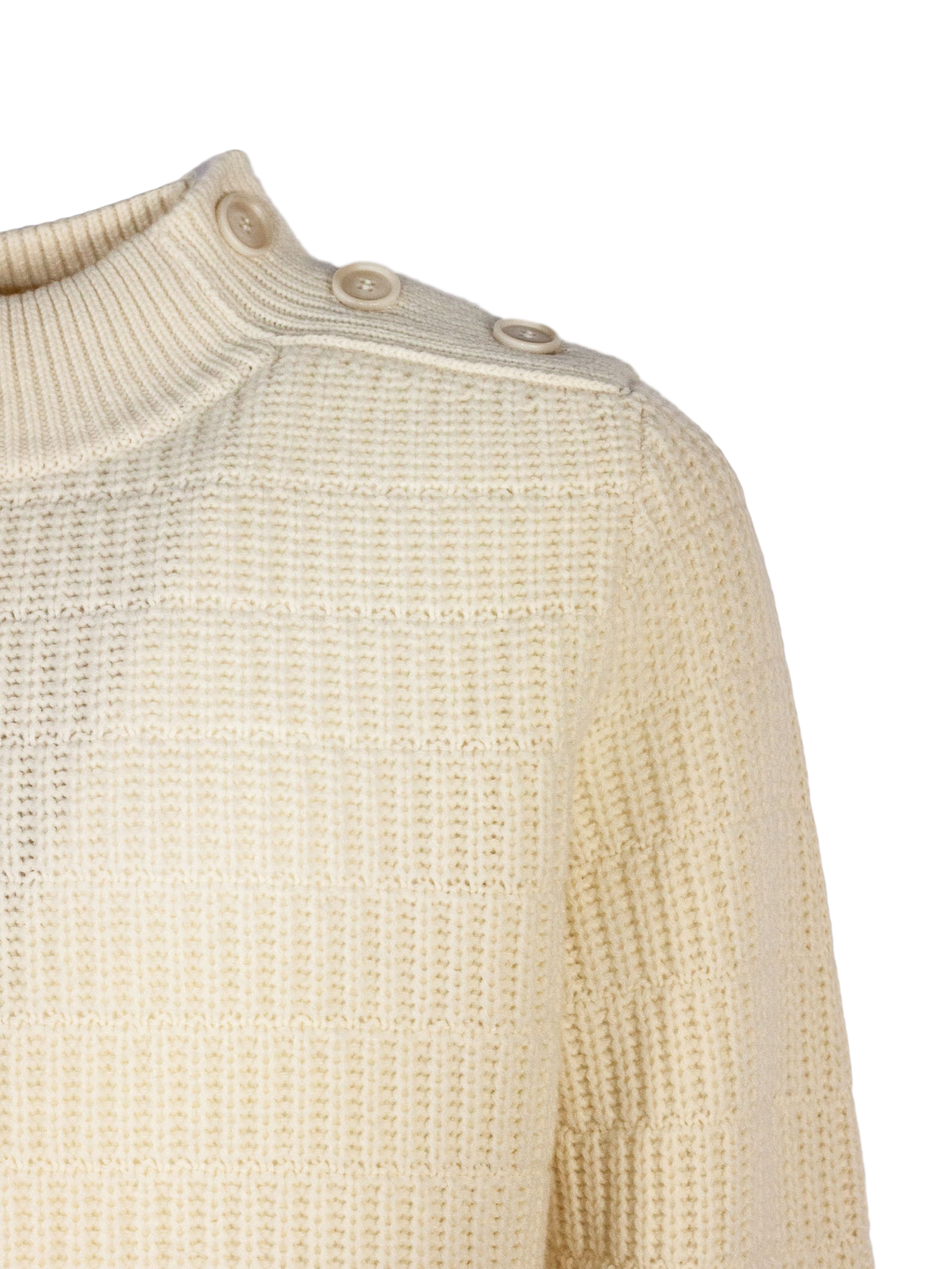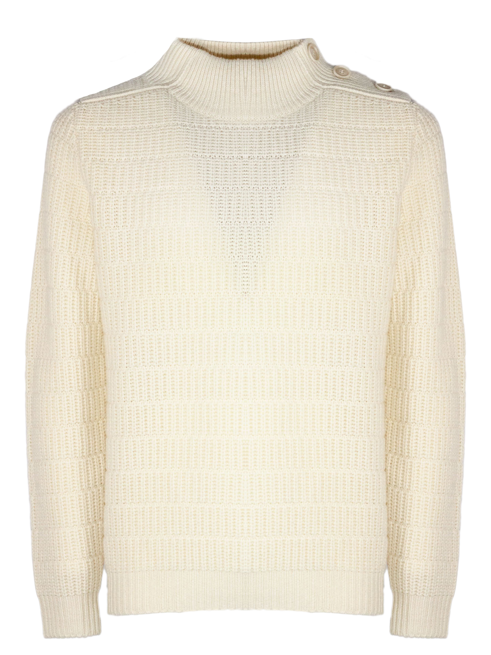 Cream virgin wool sweater with button detail on the shoulder, high neck, long sleeves, ribbed trim, regular fit, Virgin wool 100%
