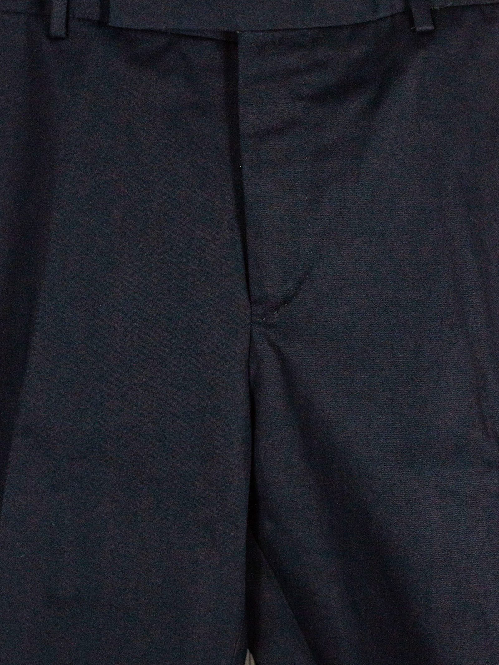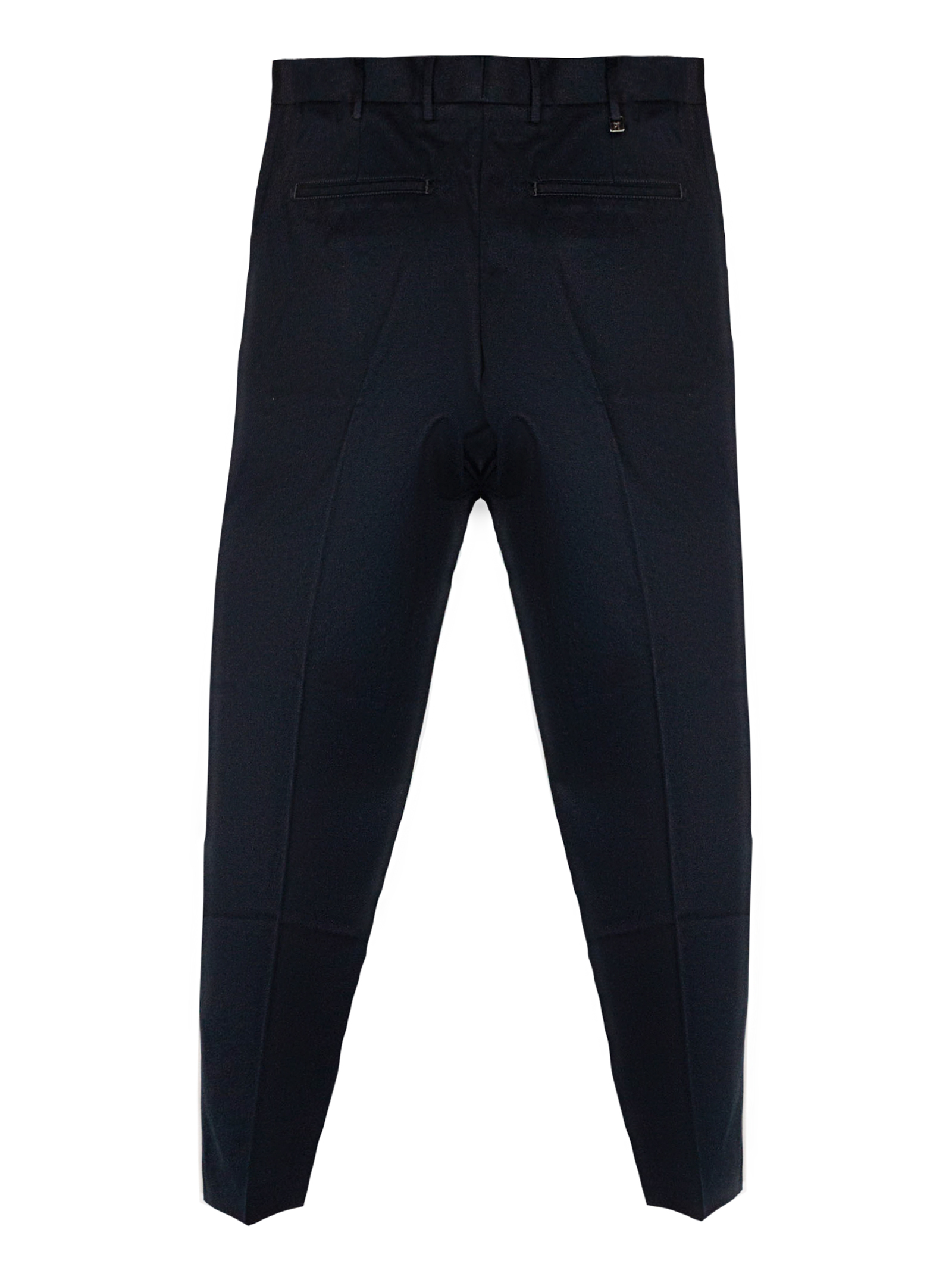 Dark blue cotton pants with belt loops, front zip closure with hidden hook, pleats, side pockets, back pockets, Cotton 100%