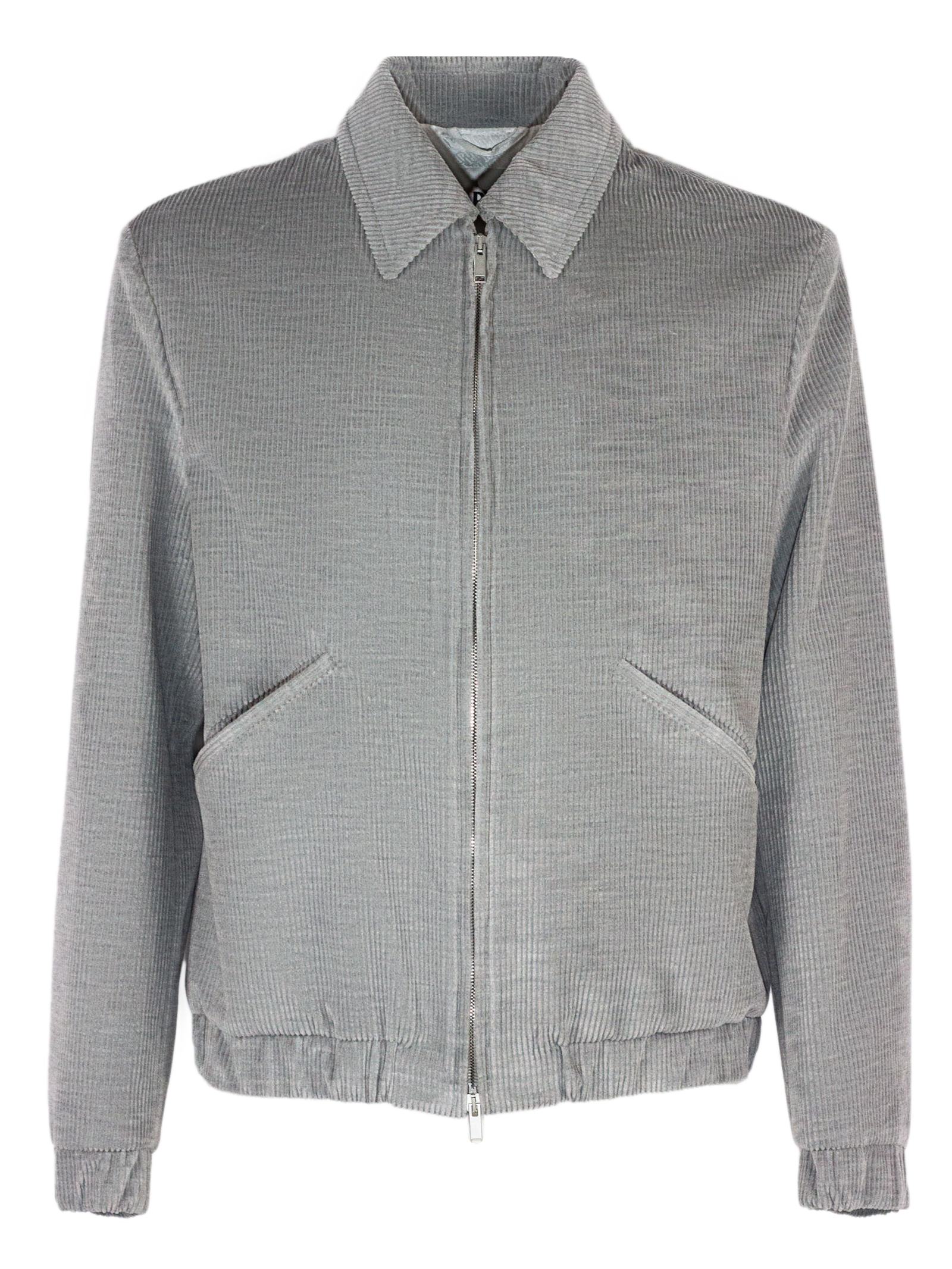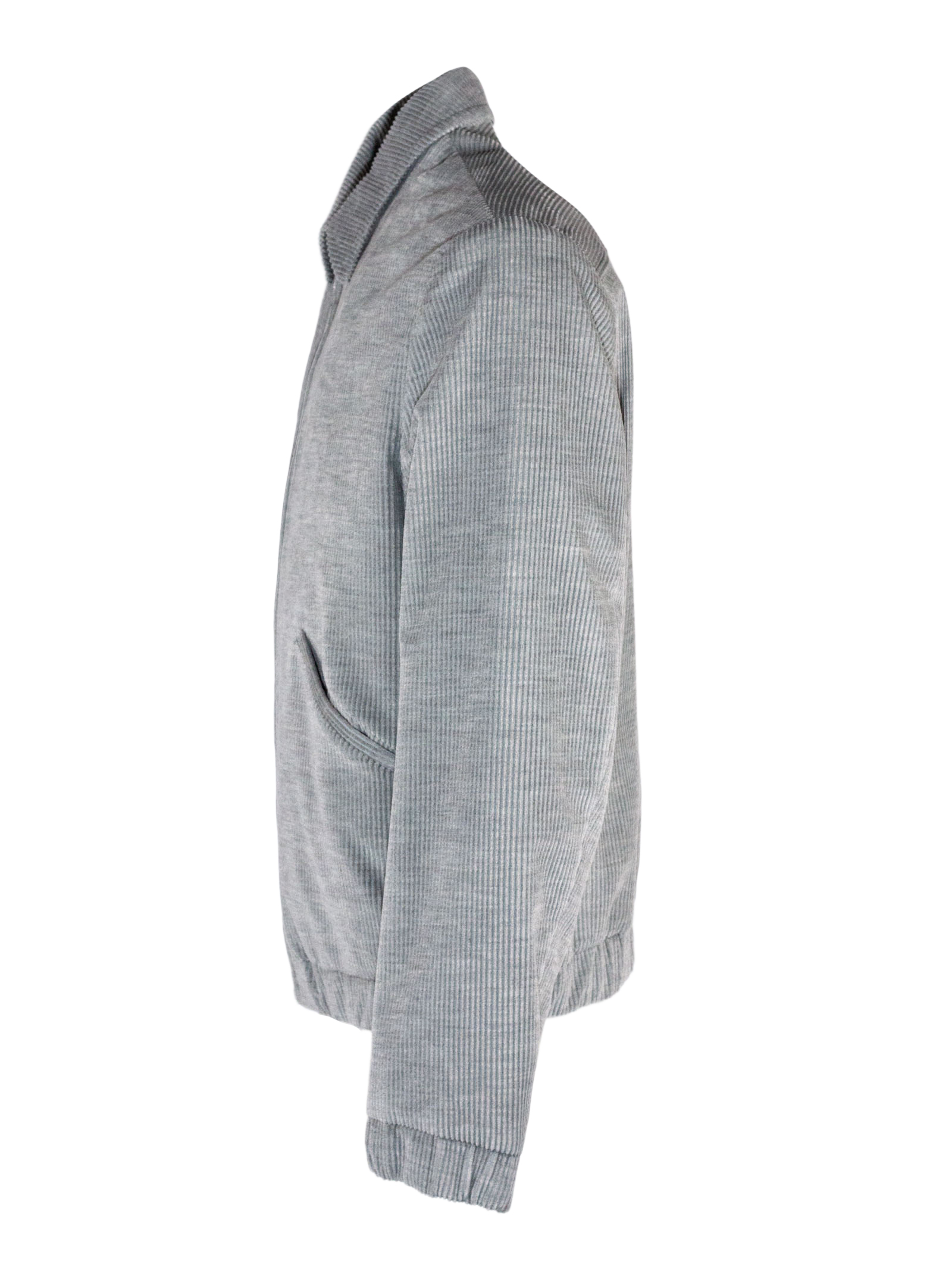Gray ribbed cotton velvet jacket with classic collar, side welt pockets, front zip closure, elasticated hem and cuffs, Cotton 100%, Lining: 100%Viscose