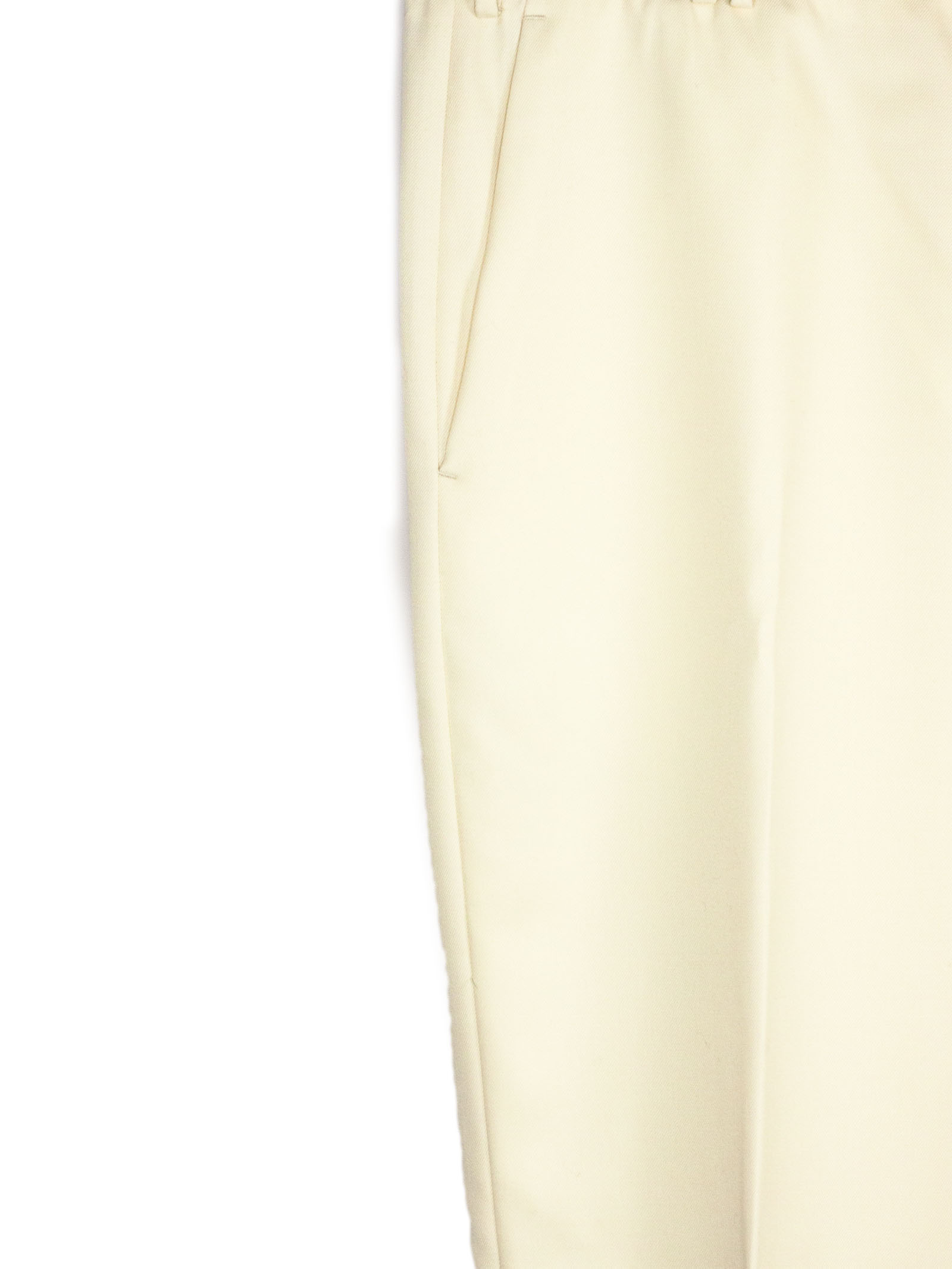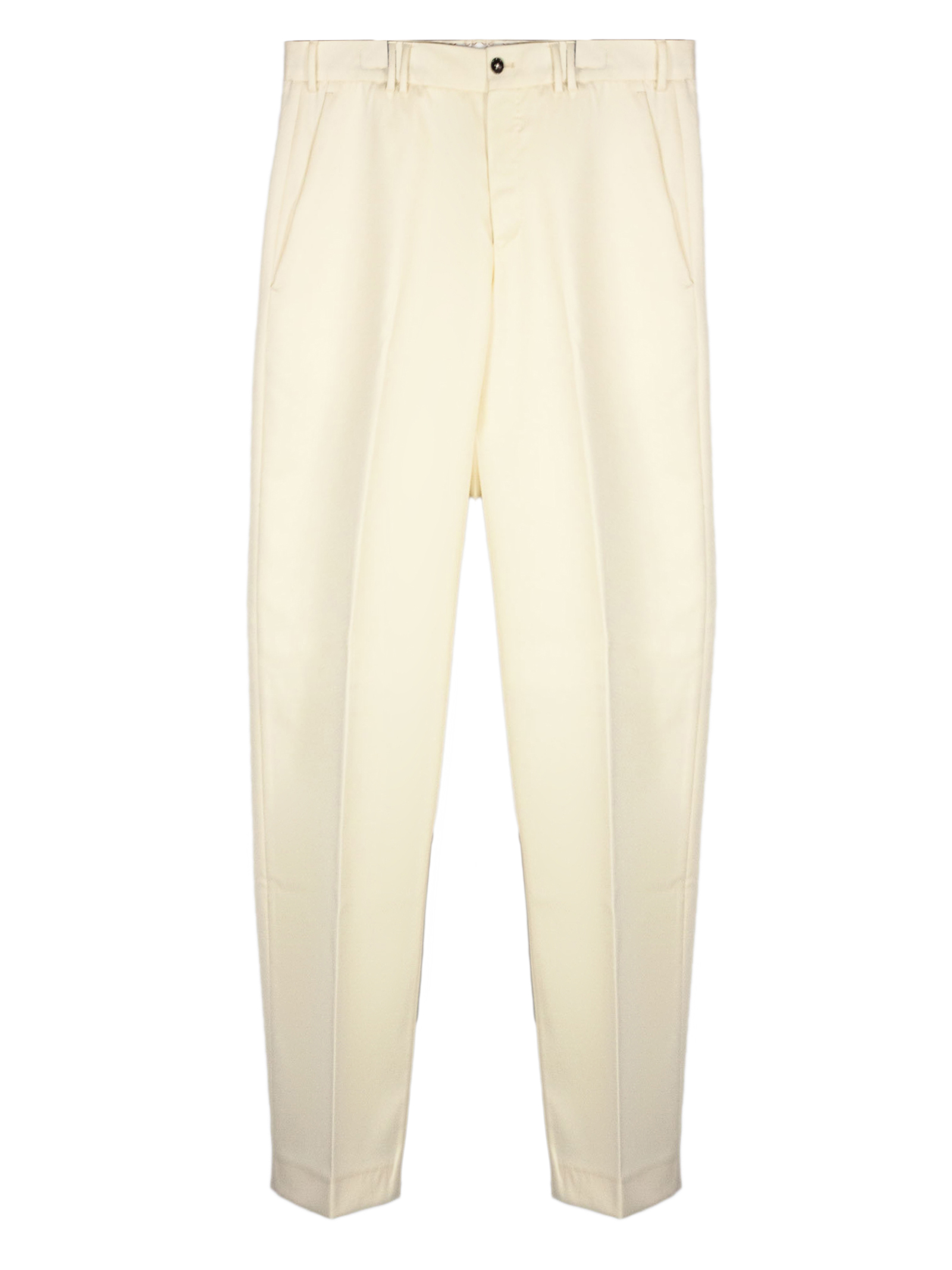 White cream virgin wool trousers with front zip and button closure, belt loops, side pockets, back pockets, Virgin wool 100%