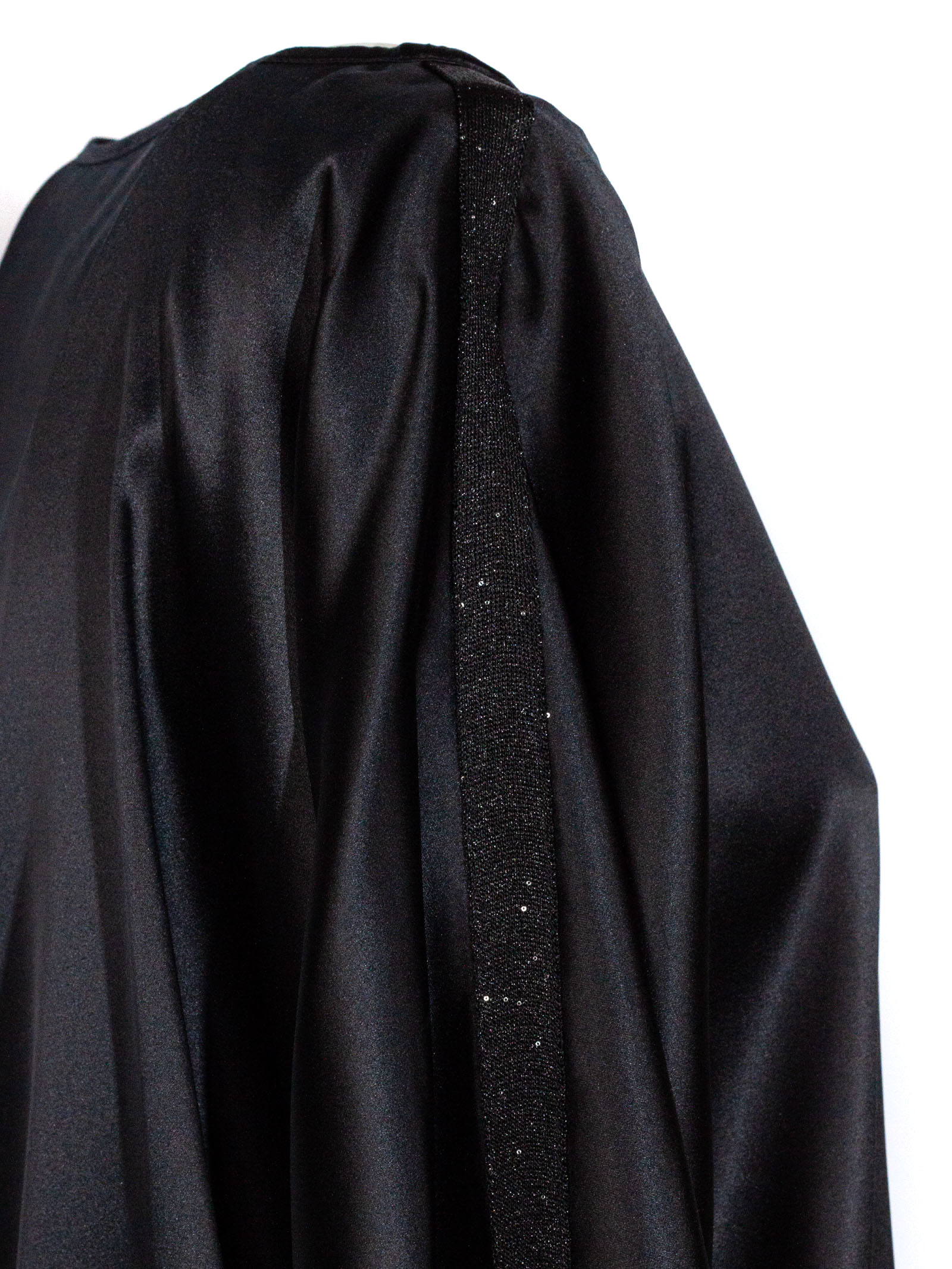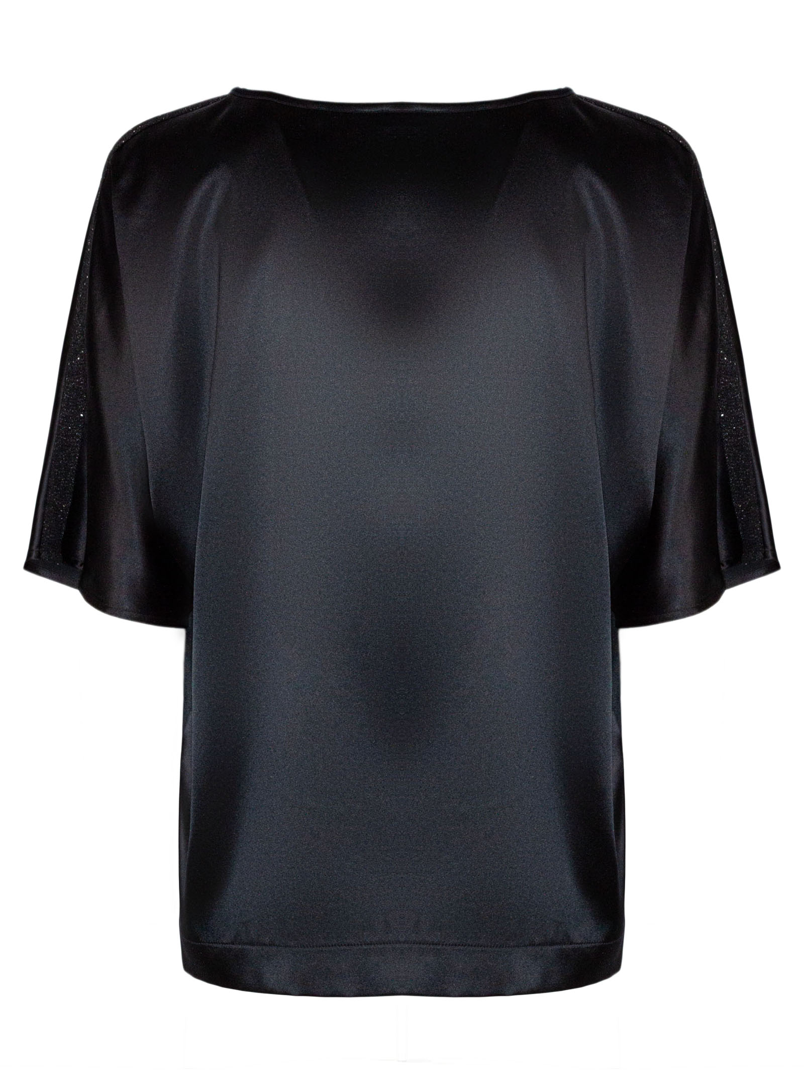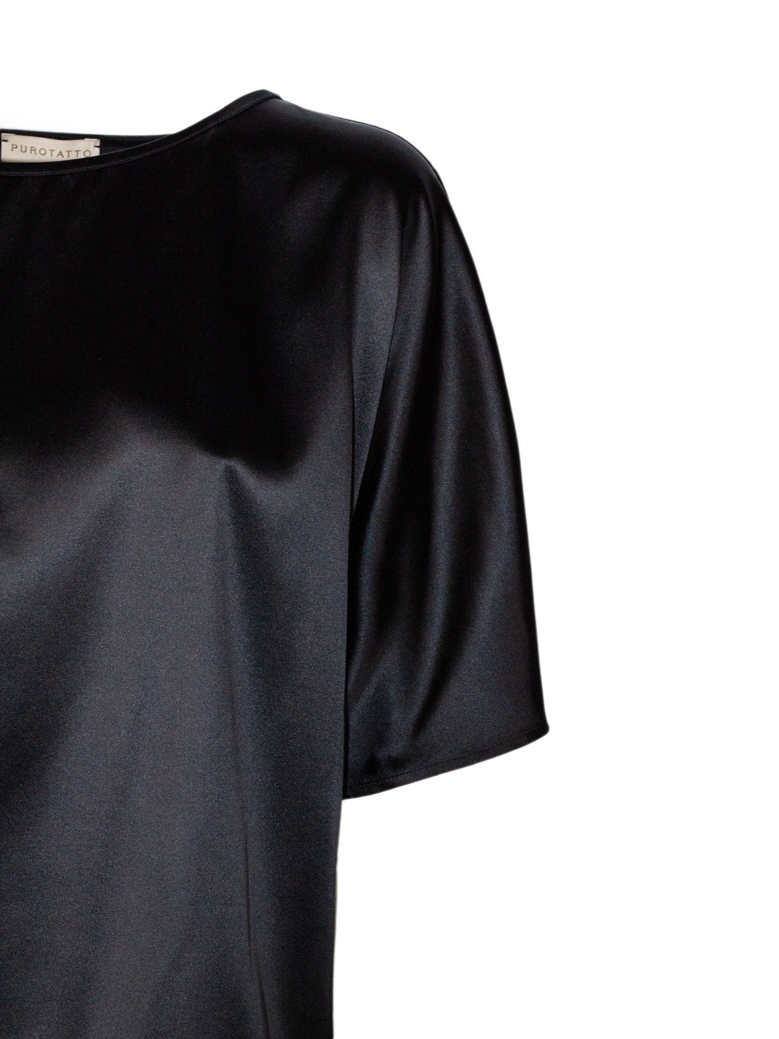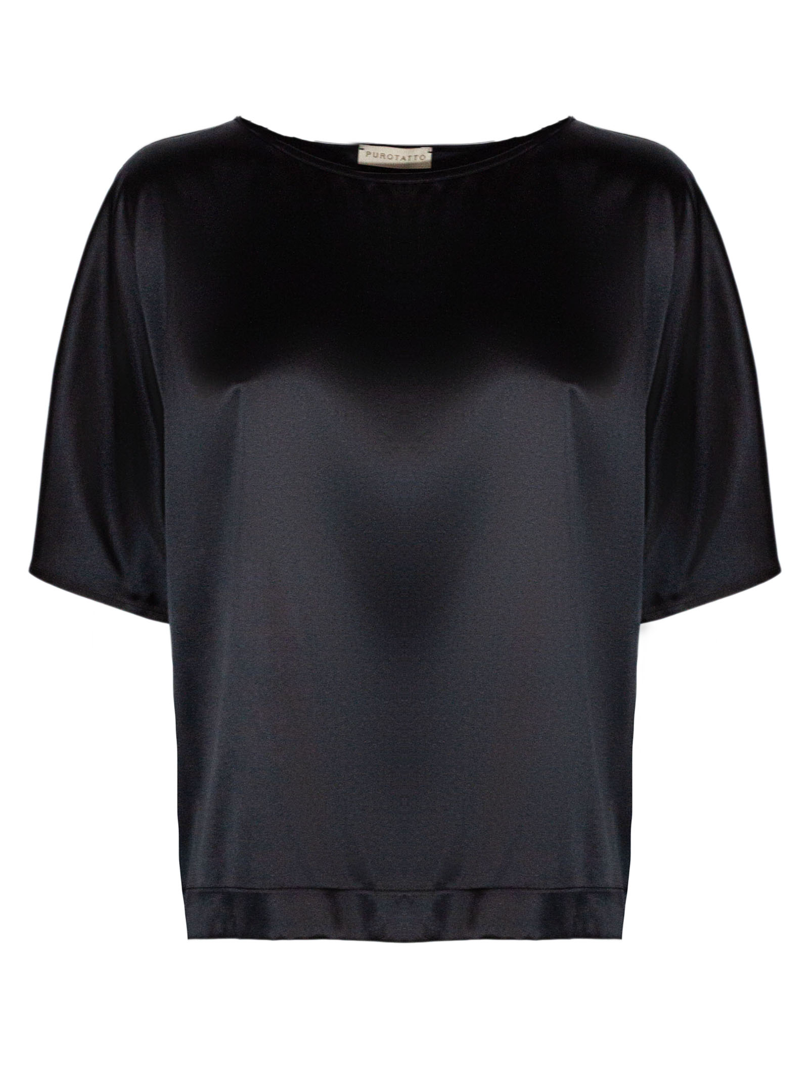 Black silk blouse, short sleeves, round neckline, loose fit