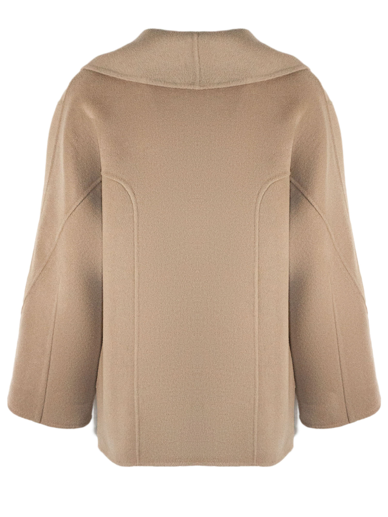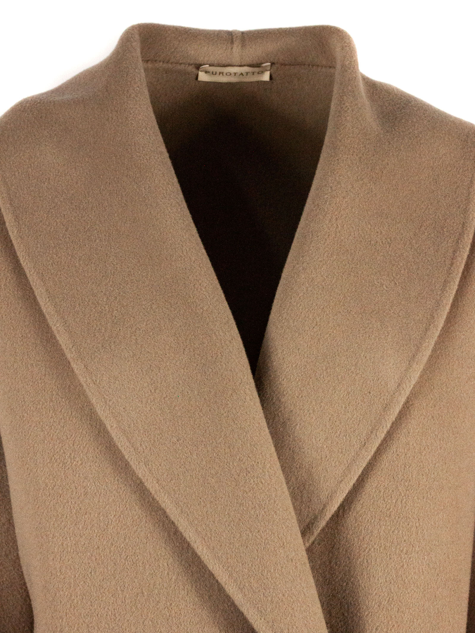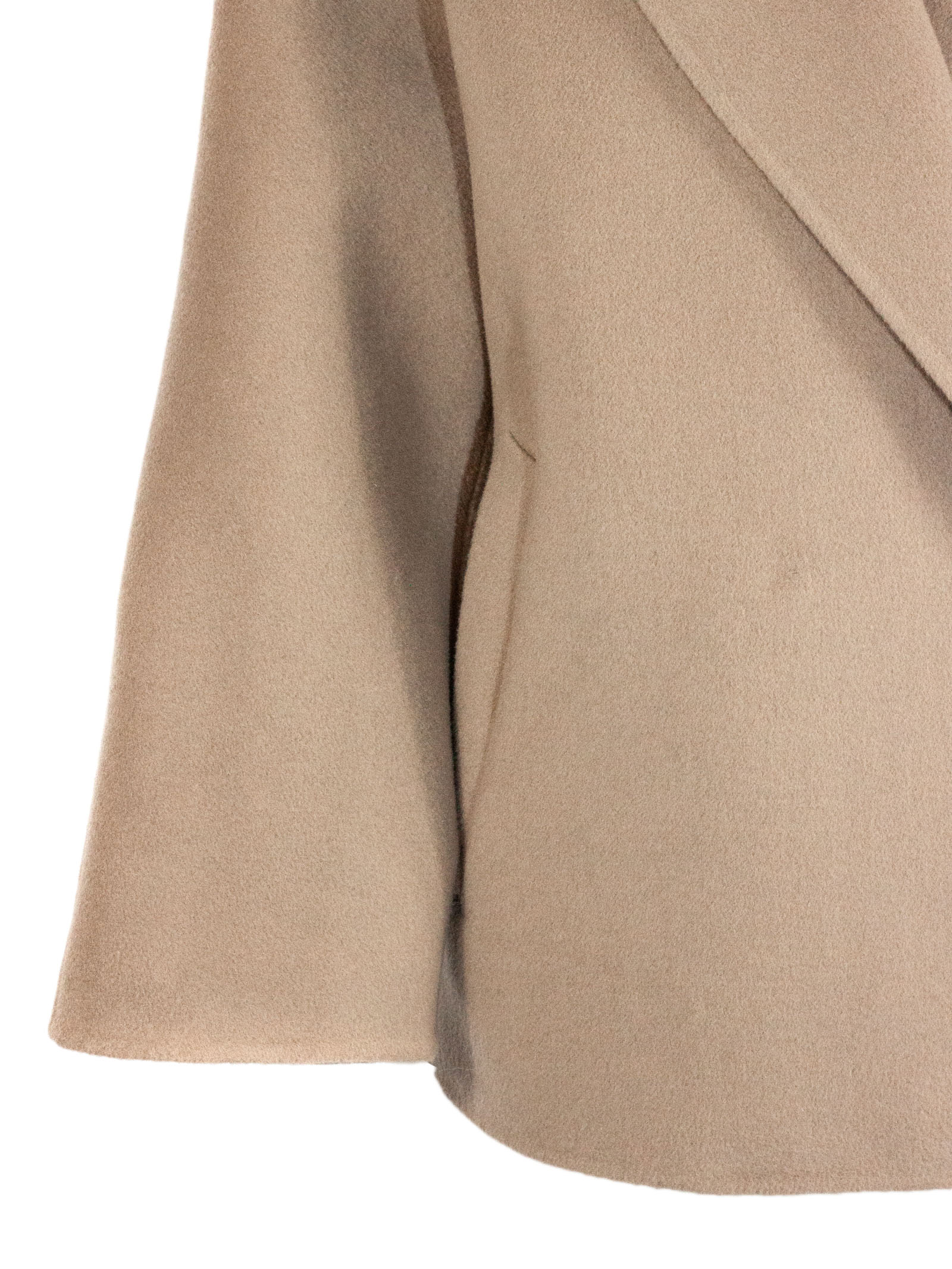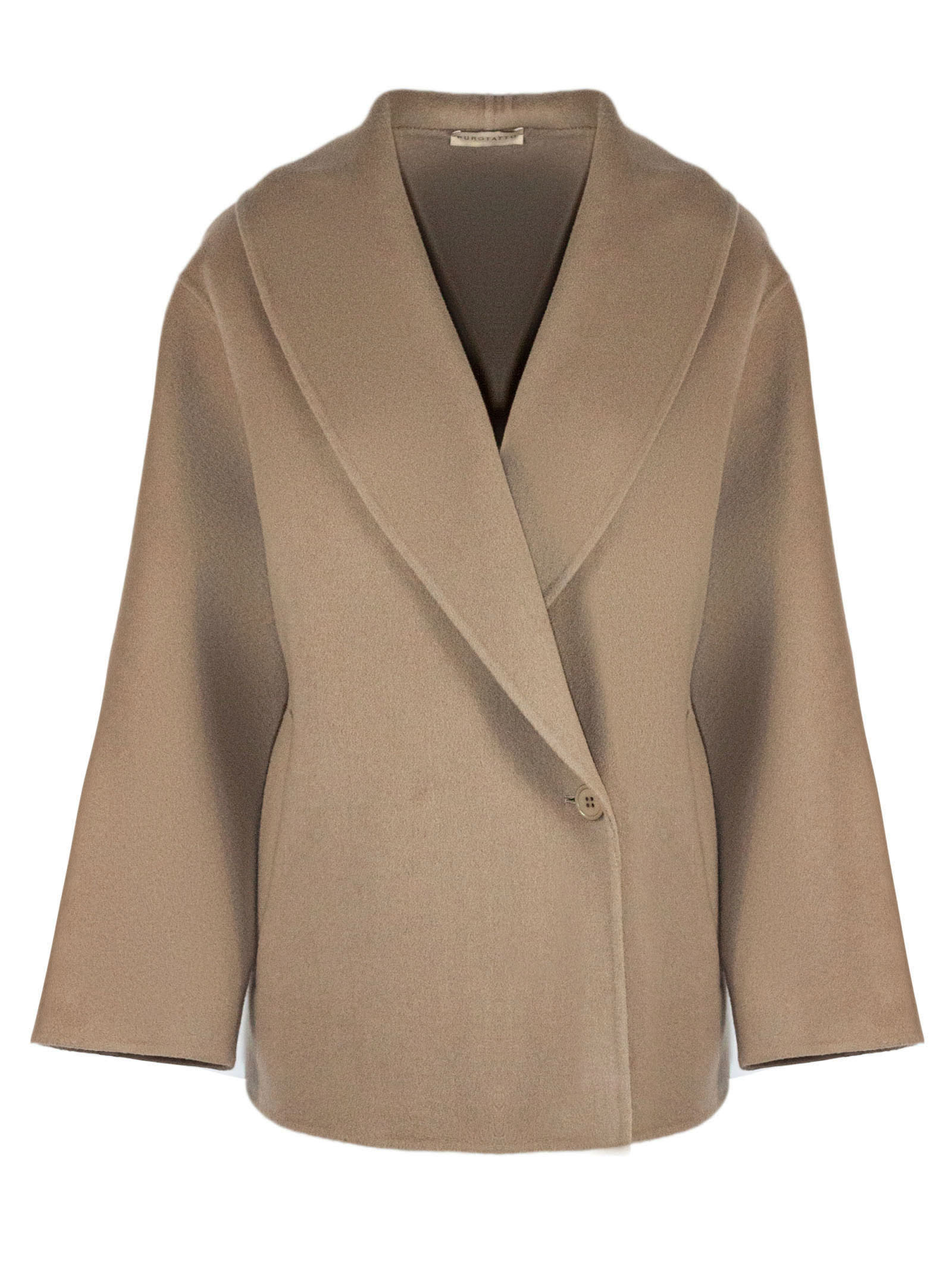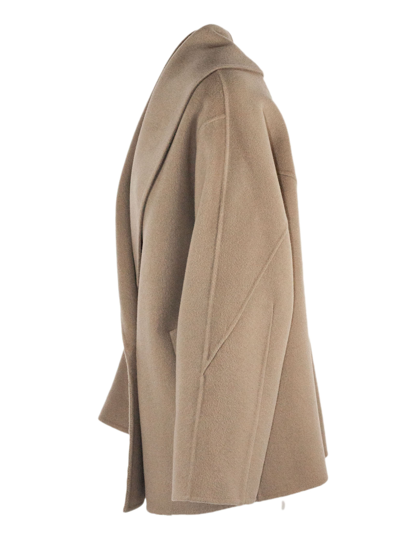 Brown beige wool and cashmere blend coat, wide shawl collar, single button front closure, cuffed sleeves, unlined