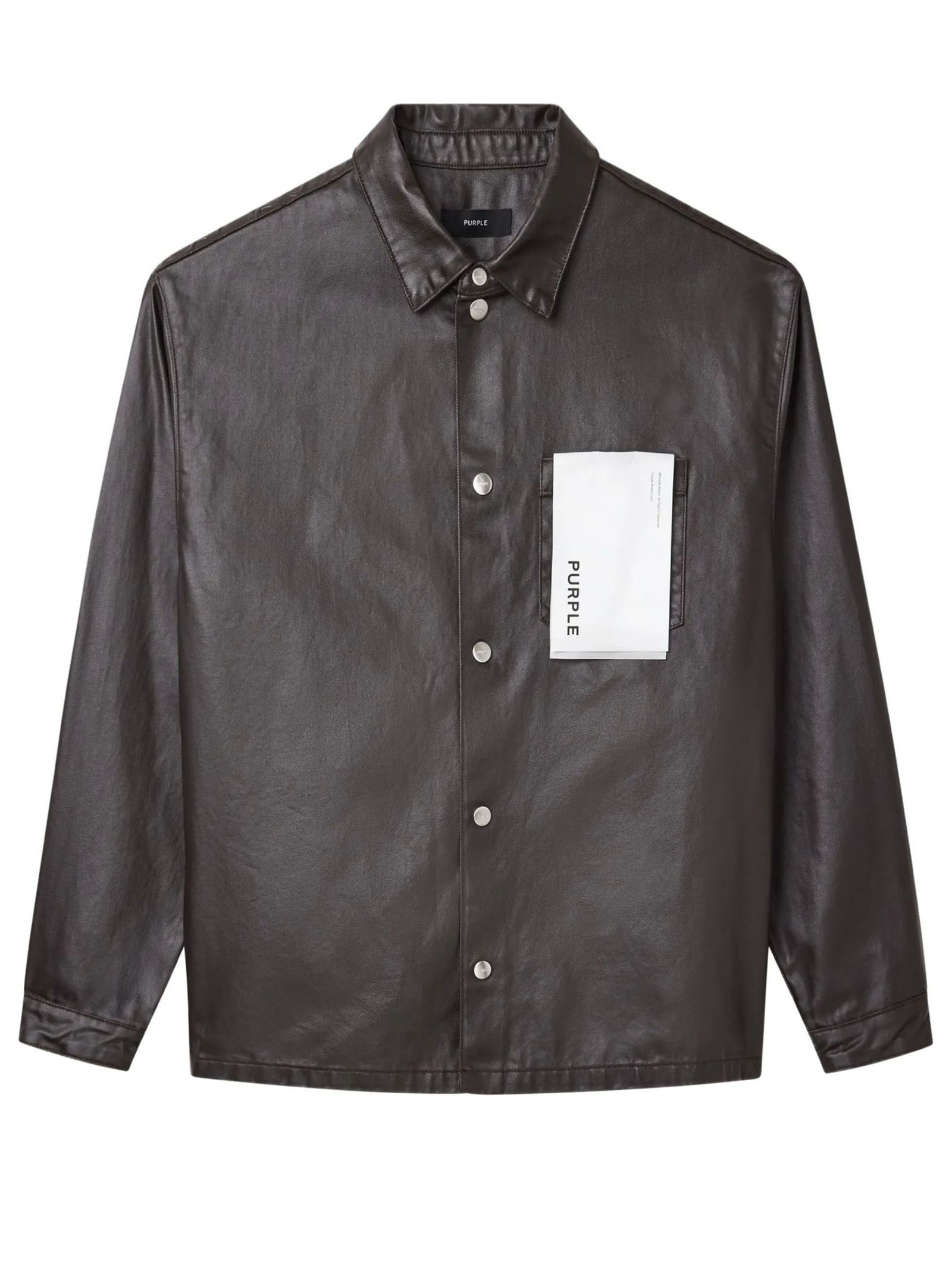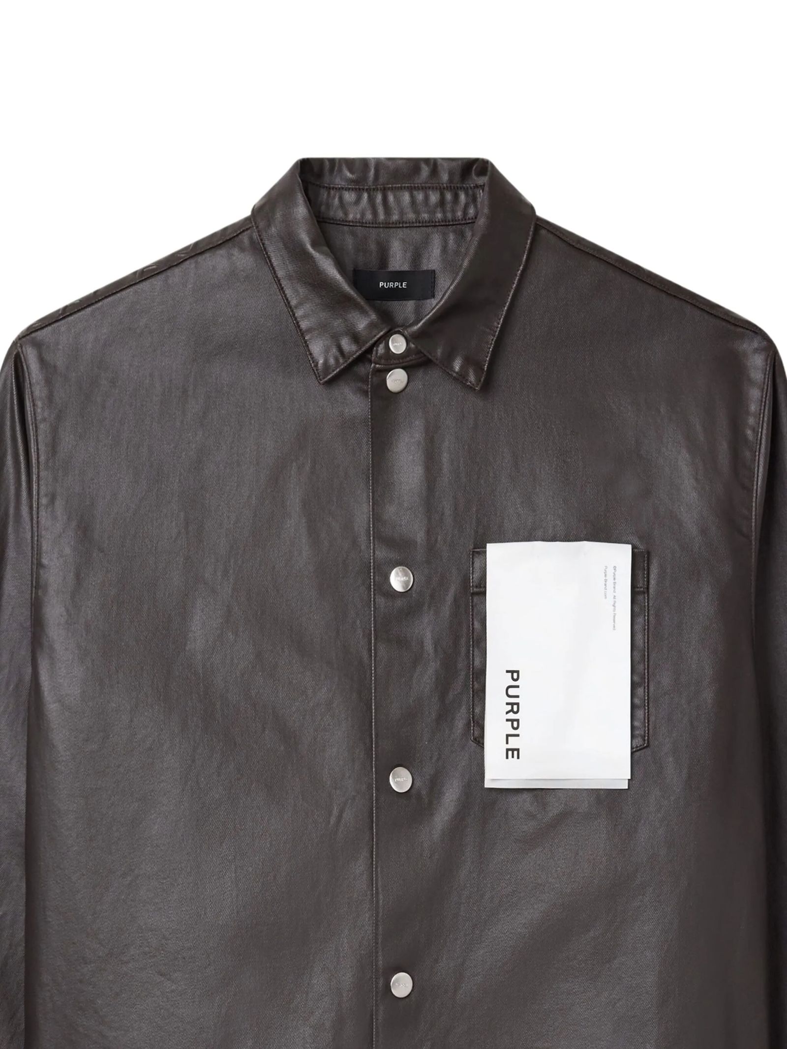 Brown cotton shirt, button fastening, long sleeves, patch pocket, straight hem