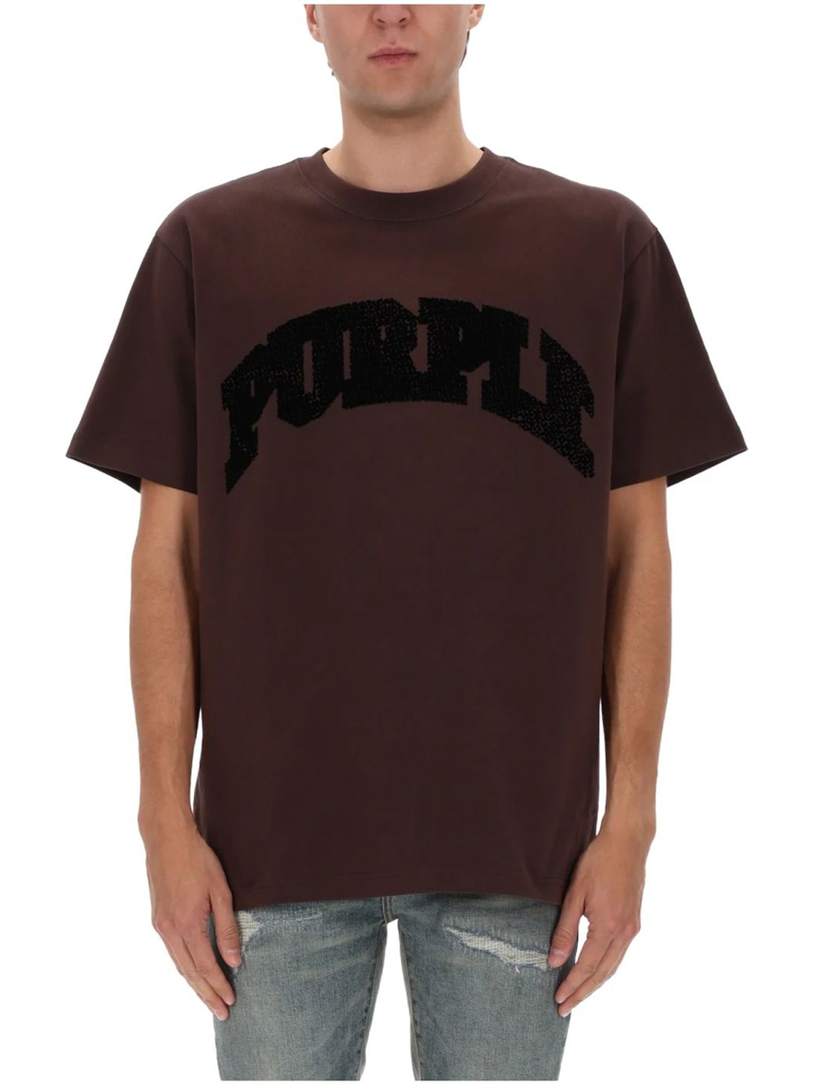 Brown cotton T-shirt with a print, round neck and short sleeves, regular fit