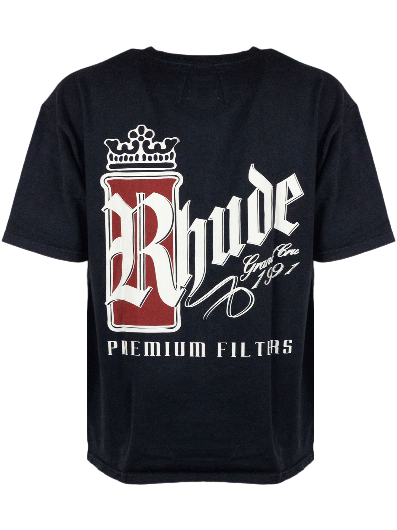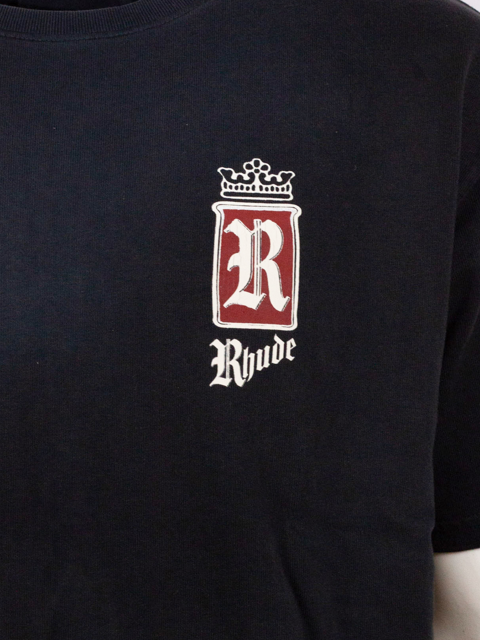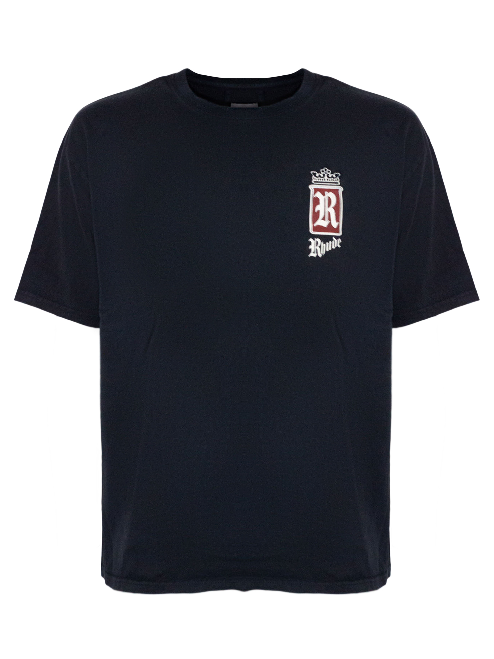 Black cotton T-shirt with front print, short sleeves, and a crew neck