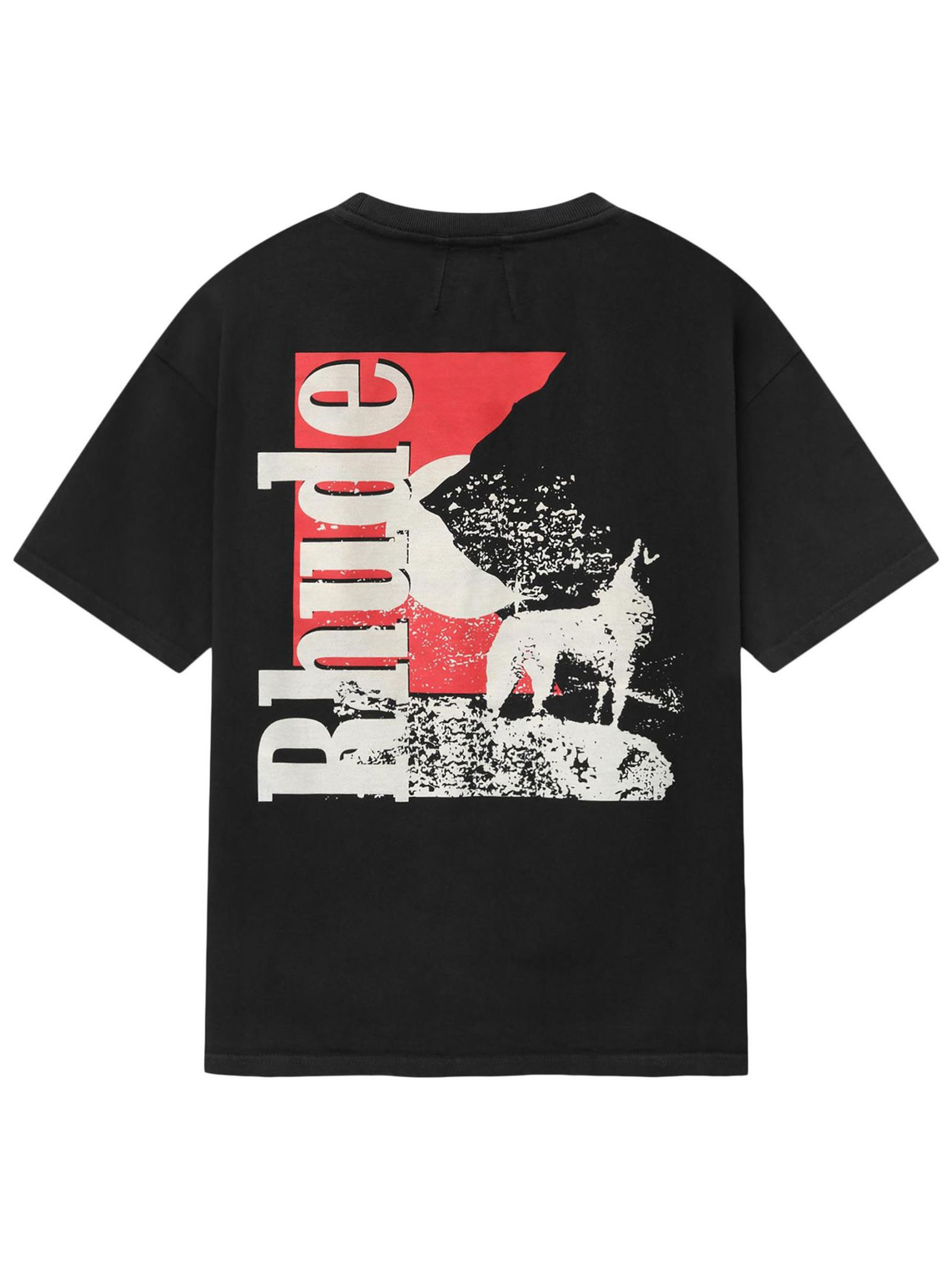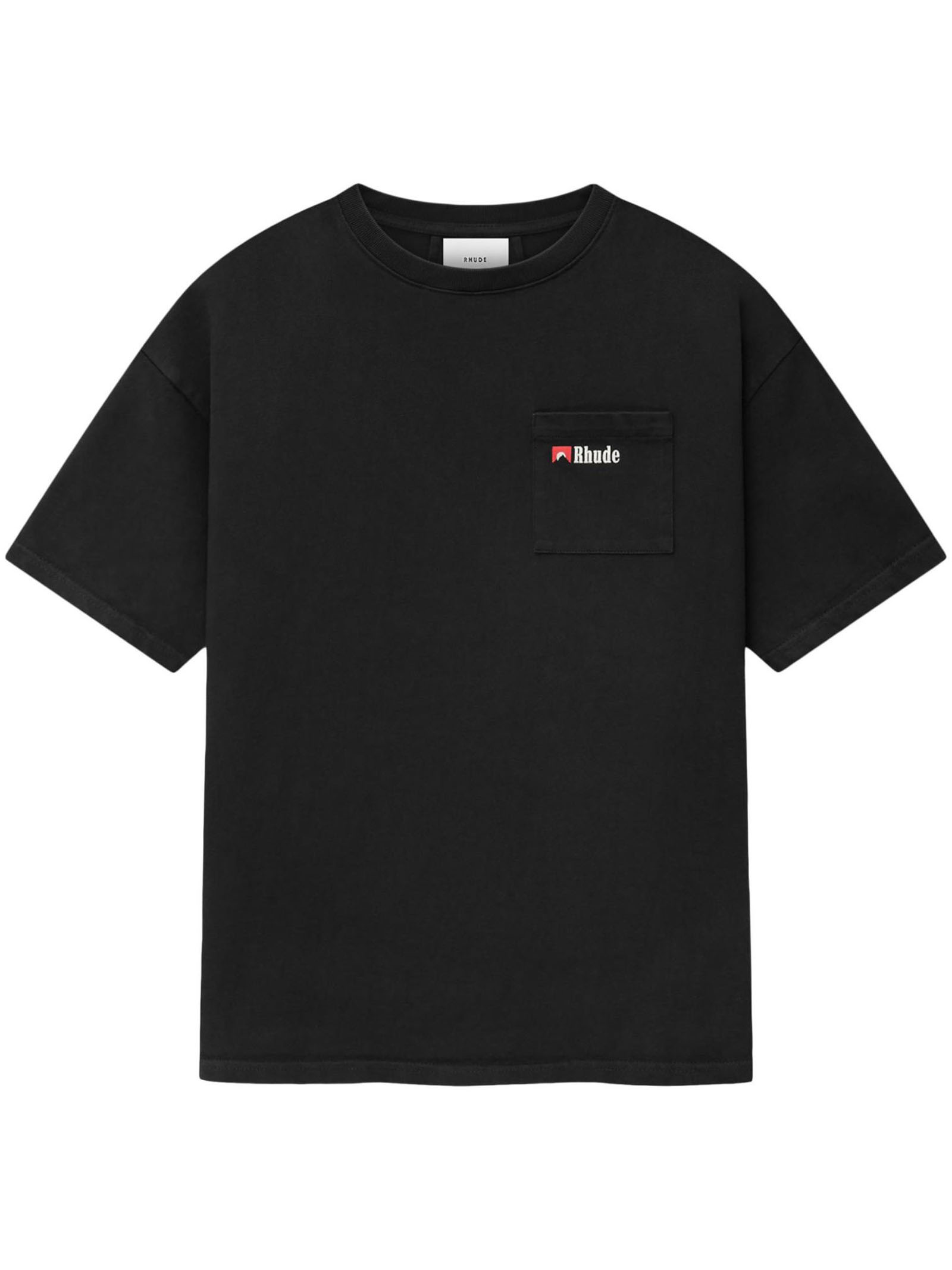 Black Moonlight Wolf Pocket T-Shirt, features a R H U D E logo-accented moonlight wolf on the chest pocket, Crewneck, Short sleeves