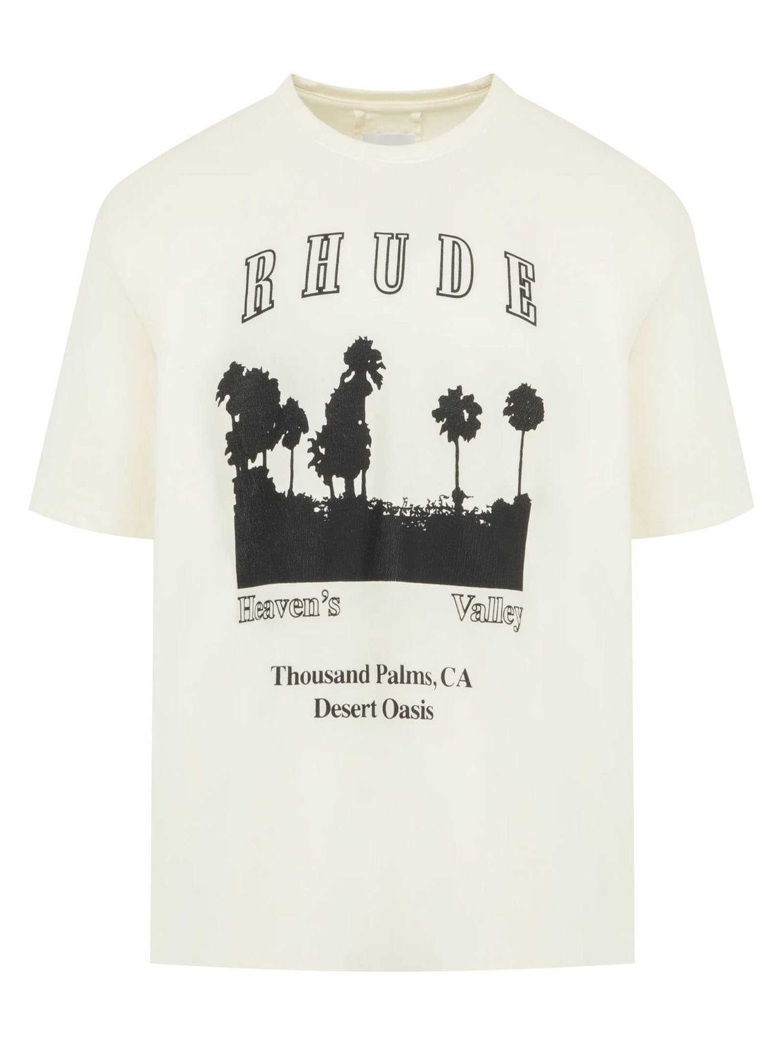Thousand Palms white cotton T-shirt with front print, short sleeves, round neck