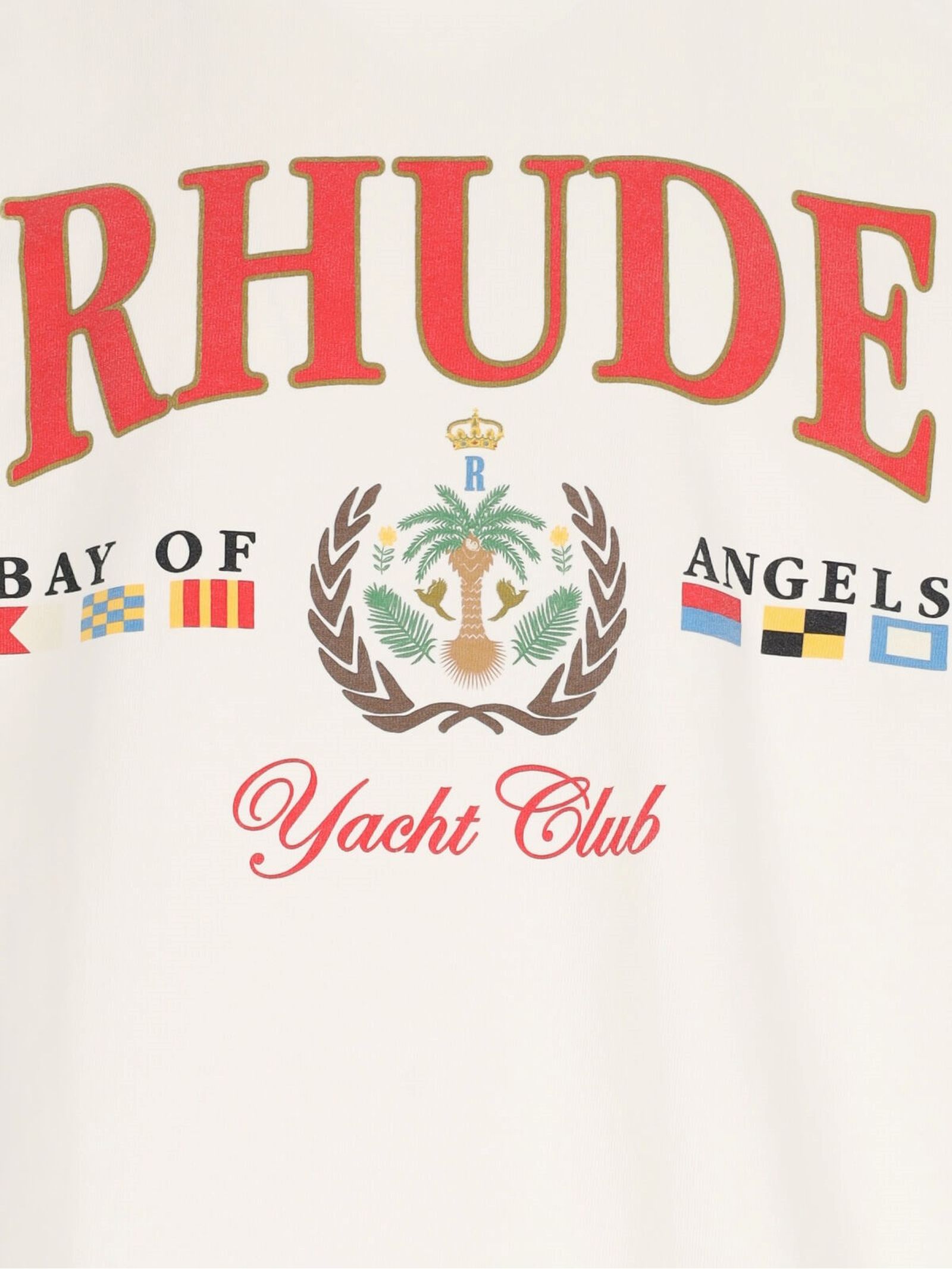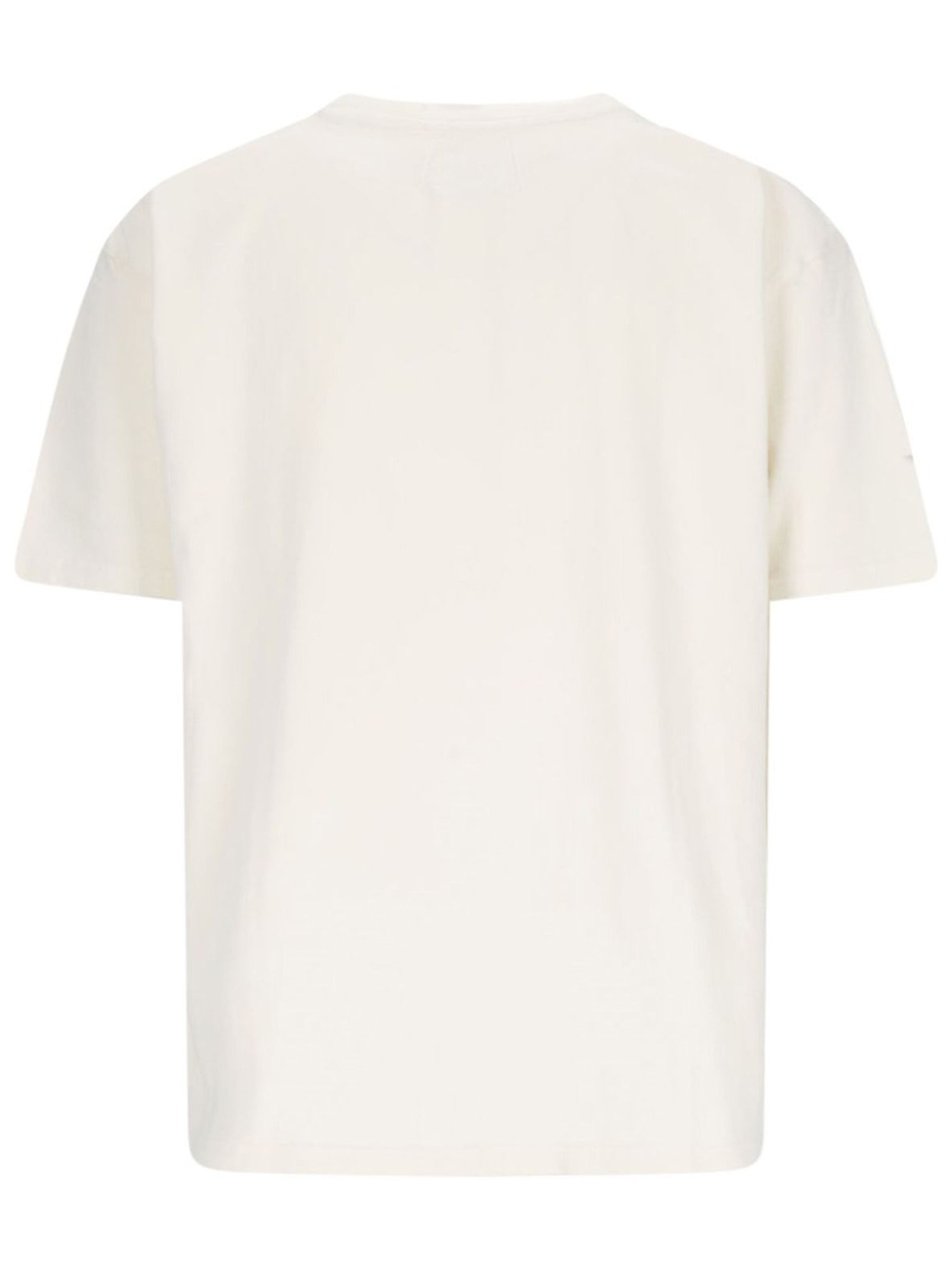 White cotton T-shirt featuring crew neck, drop shoulder, short sleeves, straight hem