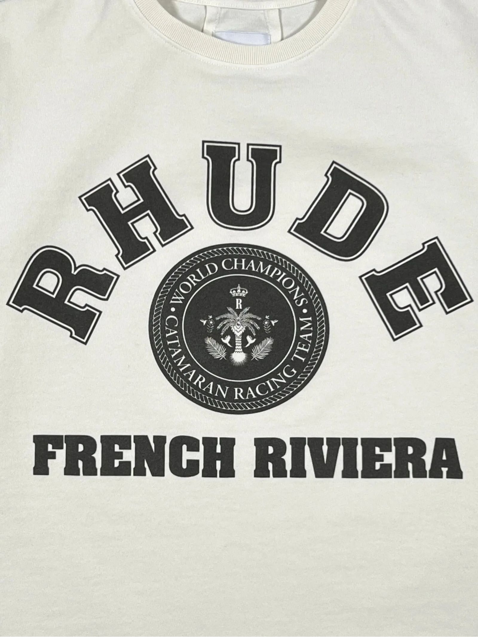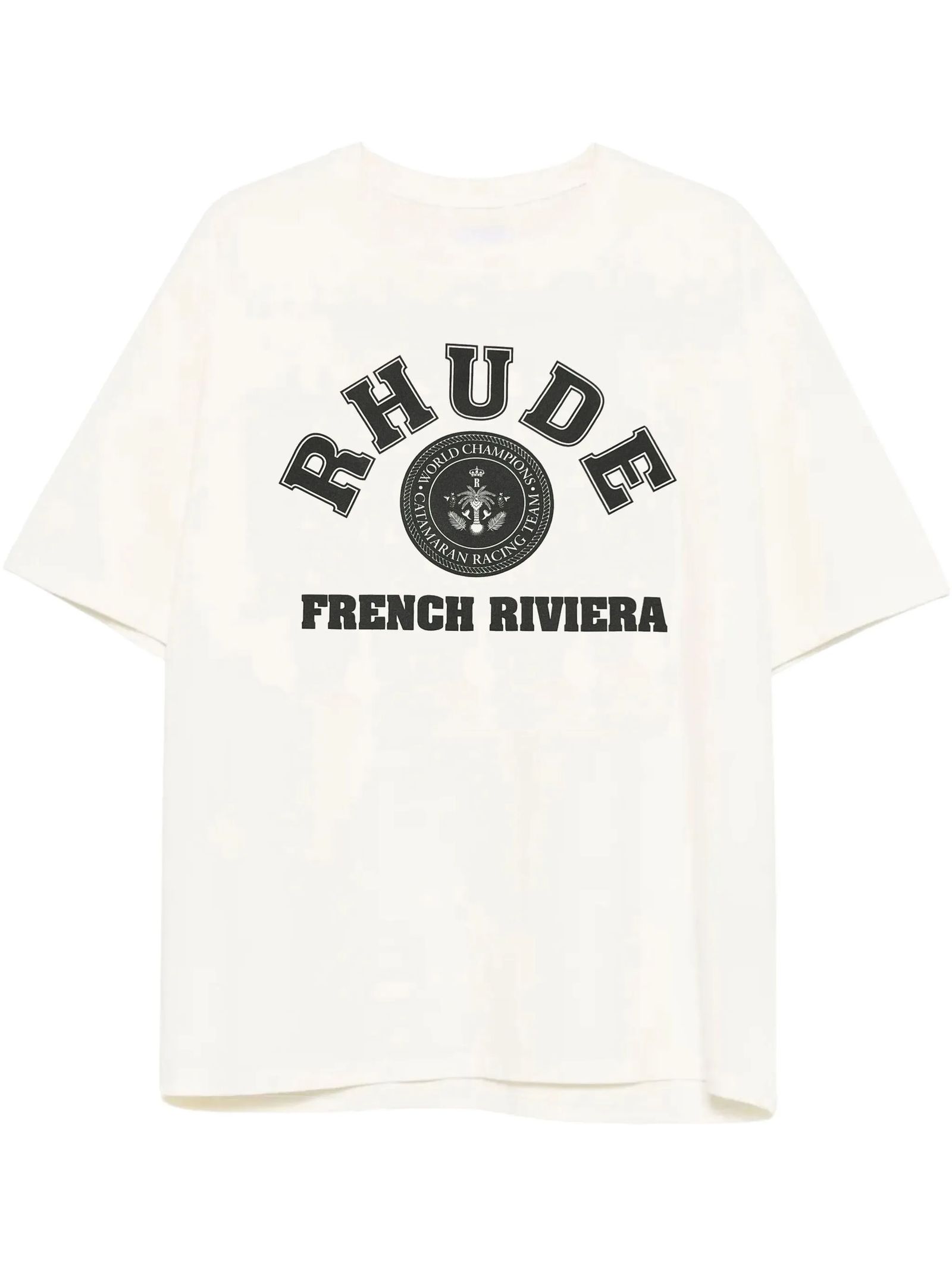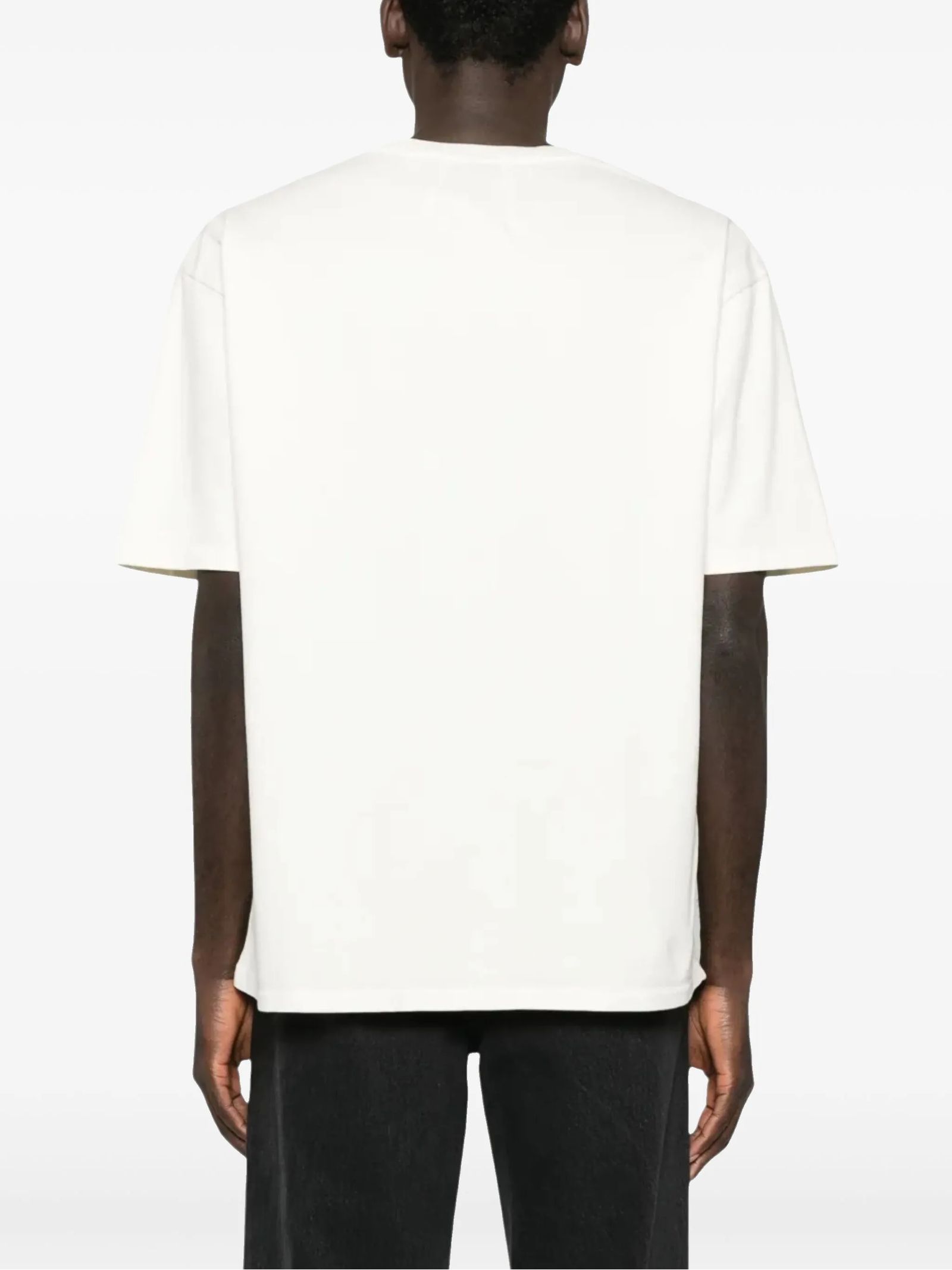 White cotton T-shirt featuring crew neck, drop shoulder, short sleeves, straight hem