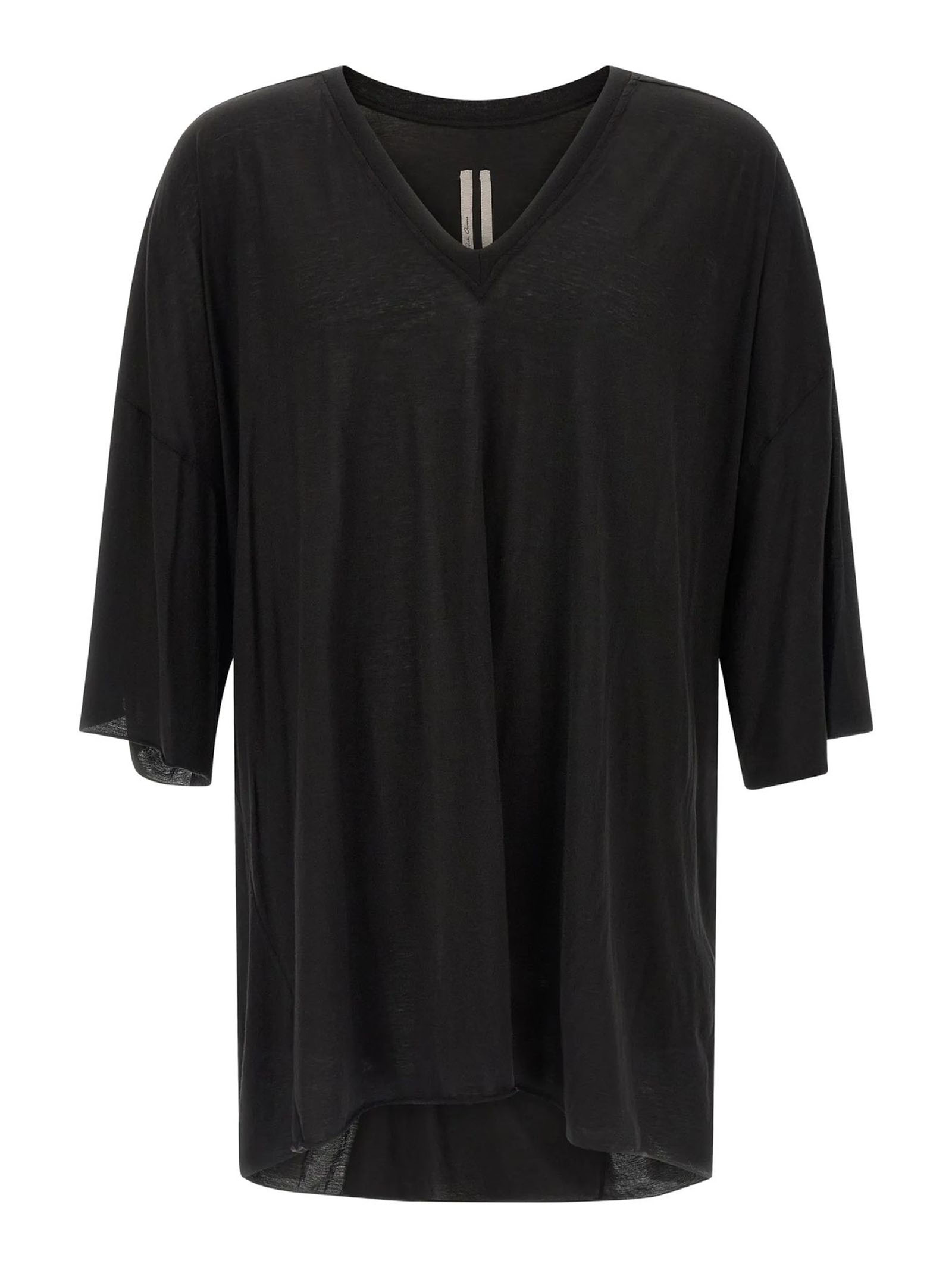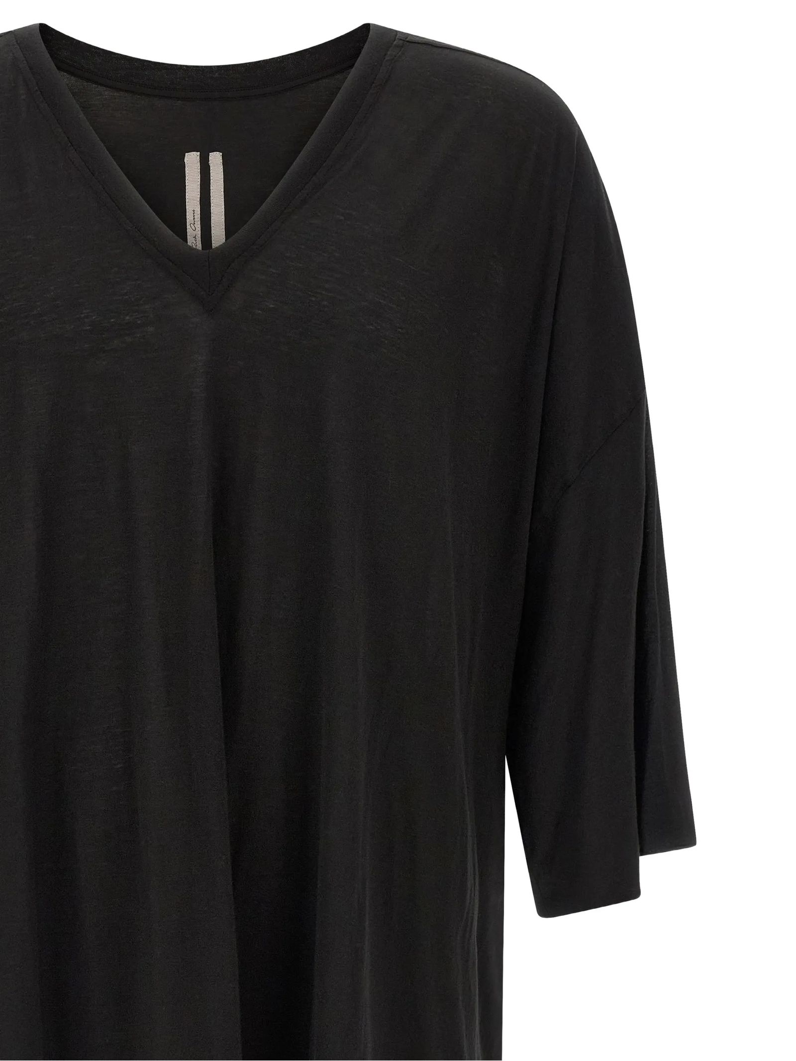 Black cotton T-shirt, V-neck, Oversized fit, dropped shoulders, raw cut hem