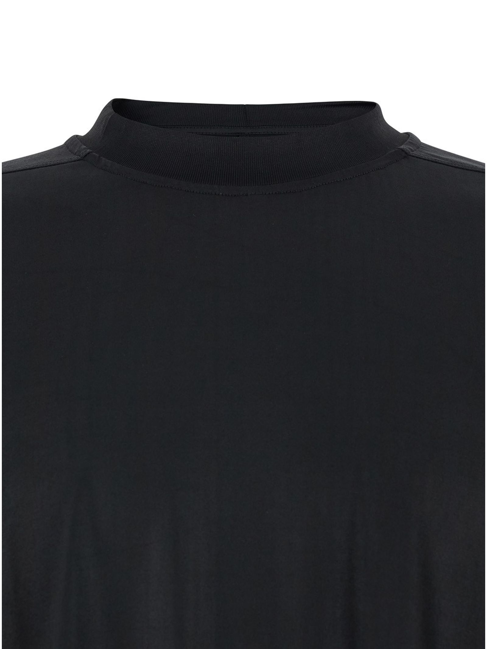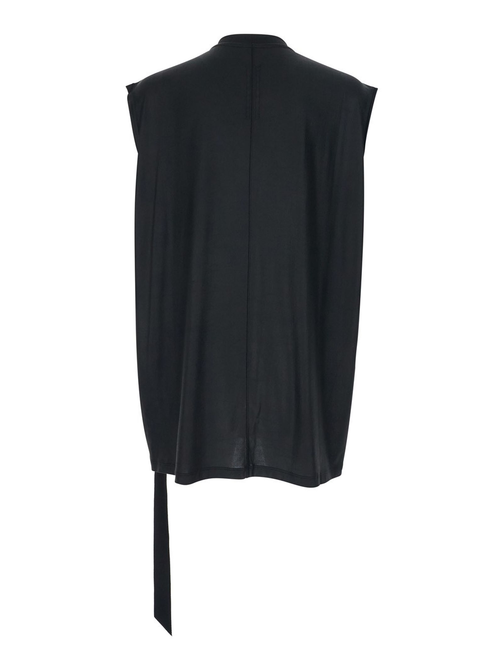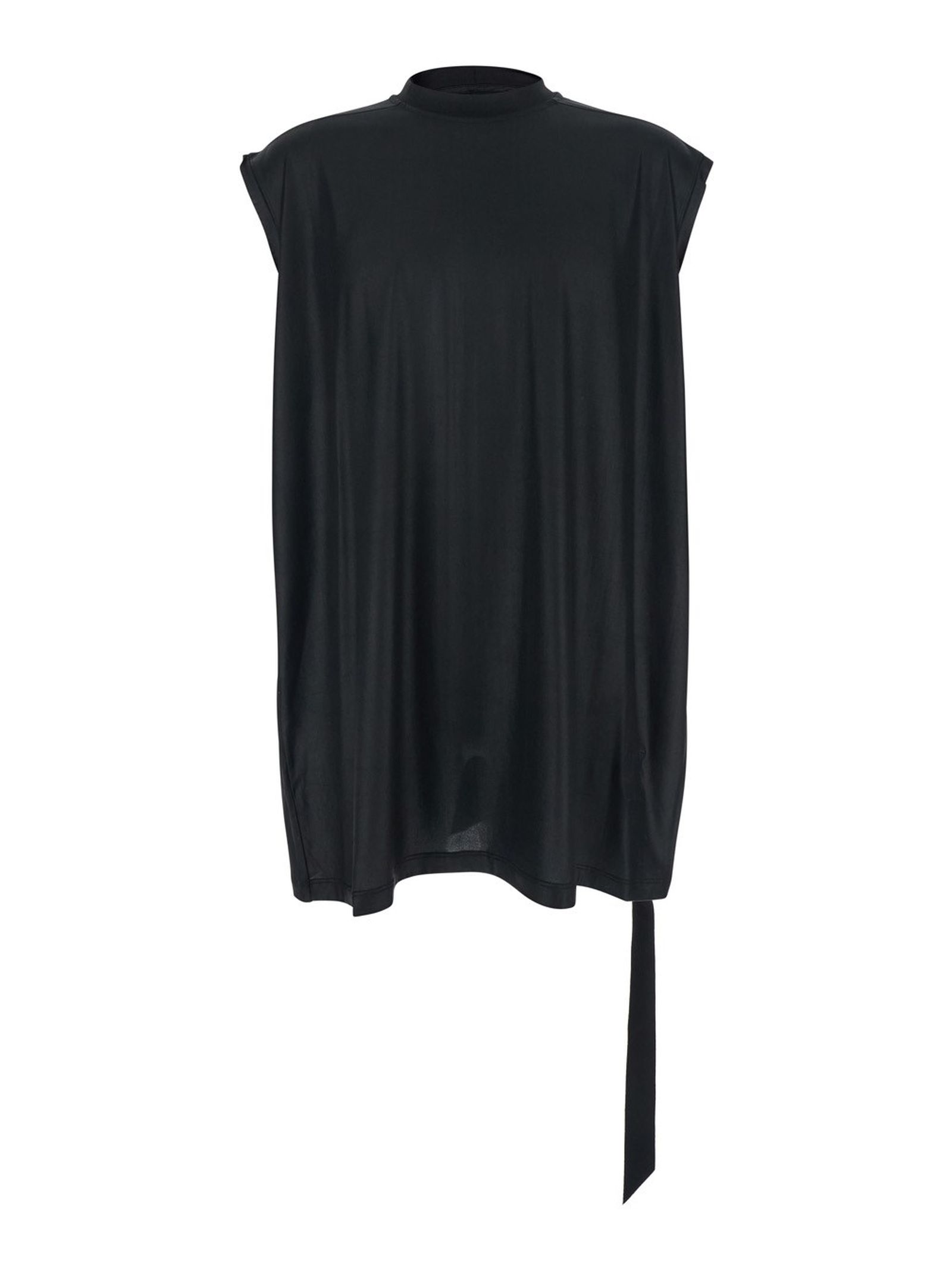 Black crew-neck T-shirt with a high neckline, technical fabric, sleeveless, fabric panel on the side, oversized fit