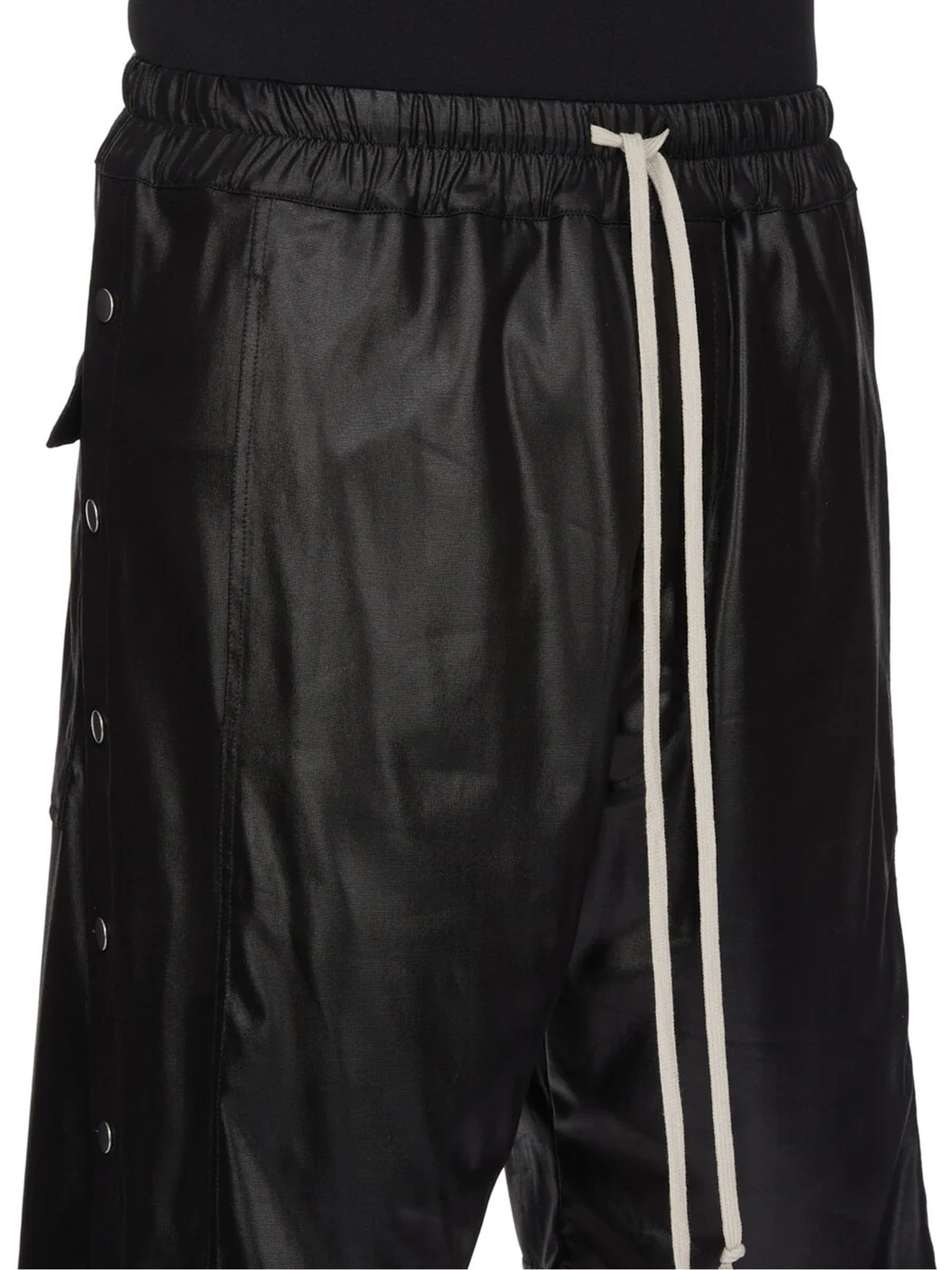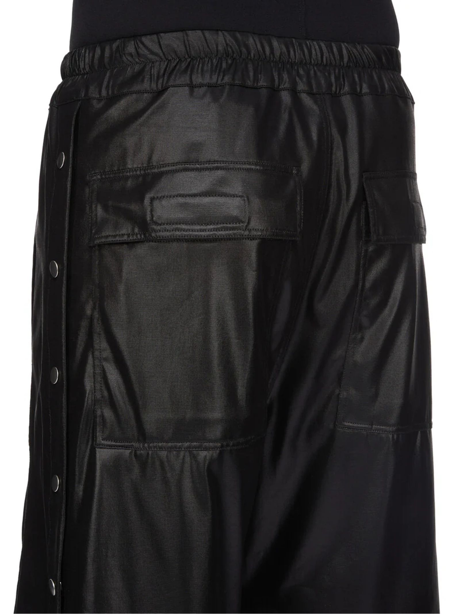 Wide Pusher Shorts, knee-length, wide leg, slightly low rise, elasticated waist with drawstring, welt side pockets and square back pockets with topstitching