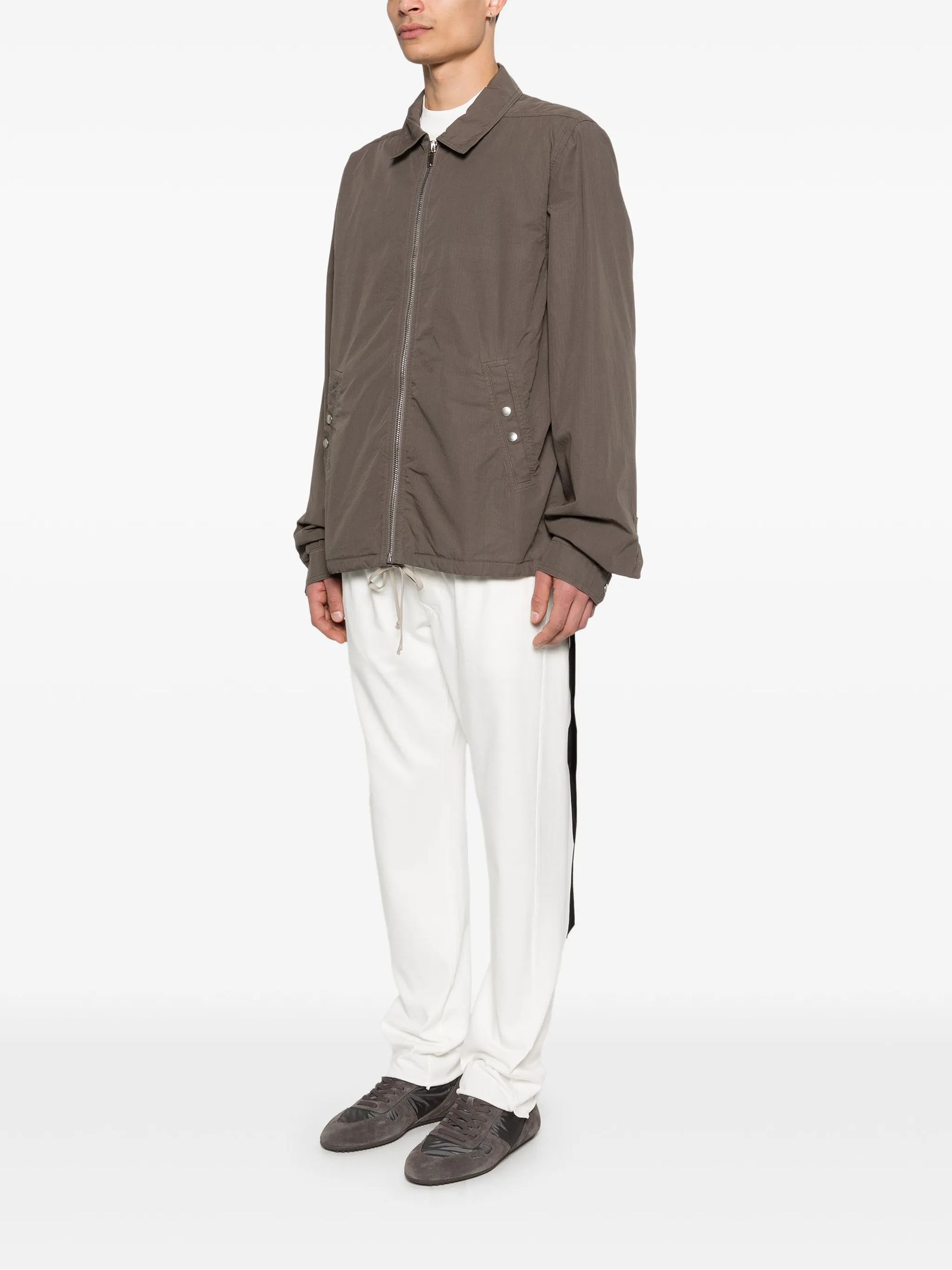 Light brown cotton zip-up jacket with a zip fastening, side pockets, a buttoned pocket, long sleeves and a tie at the back