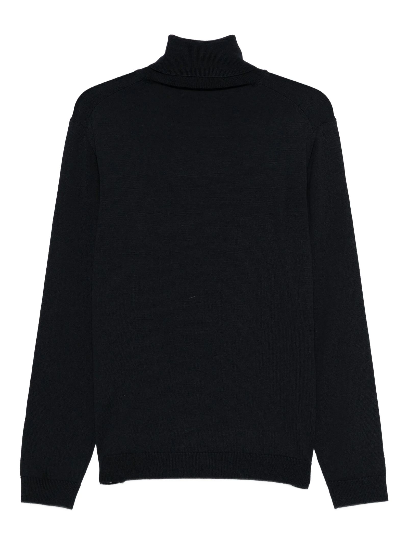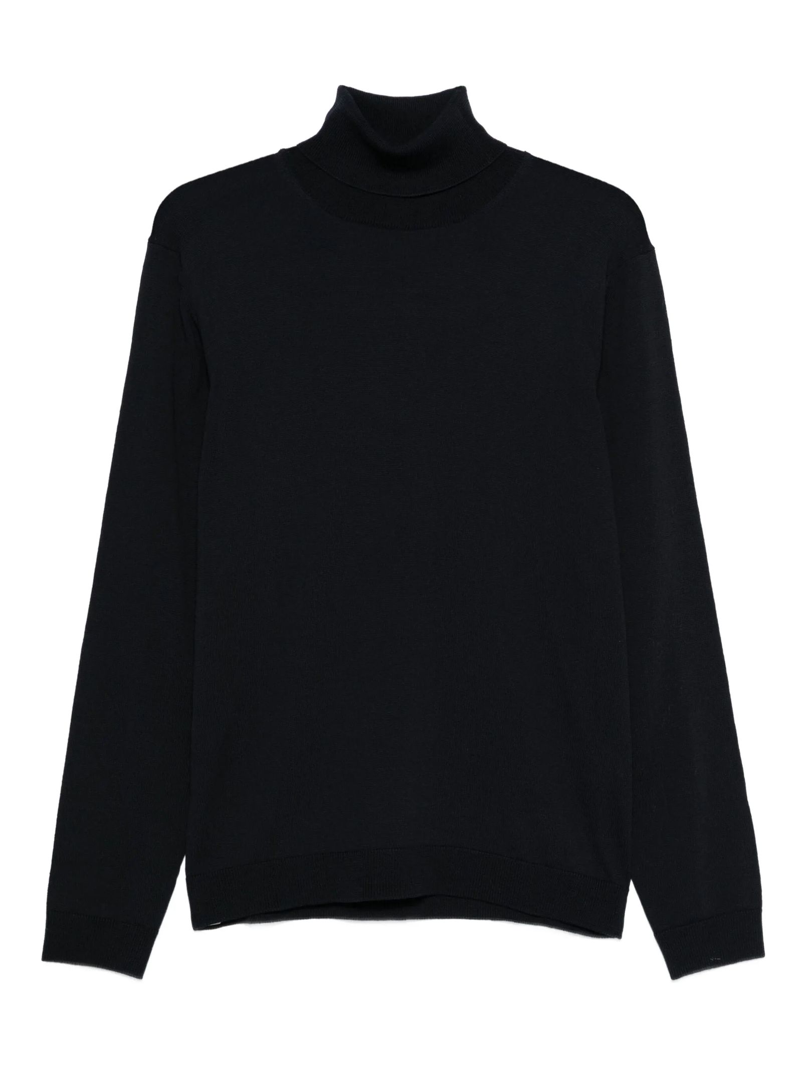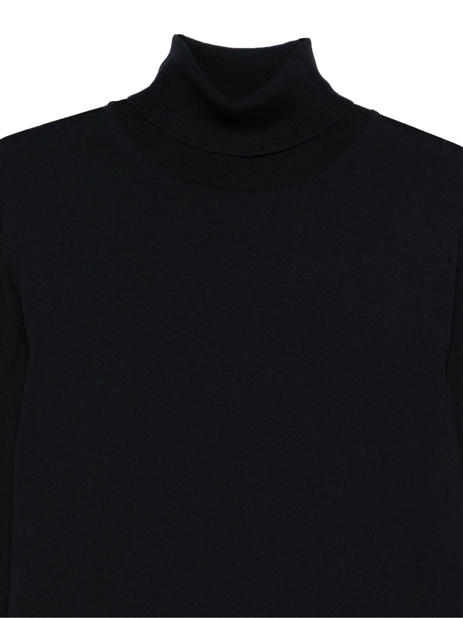 Blue merino wool sweater, high neck, long sleeves, regular fit, ribbed trim, Merino wool 100%