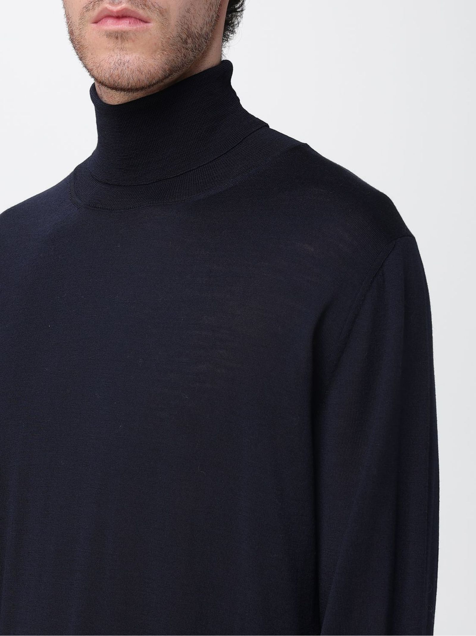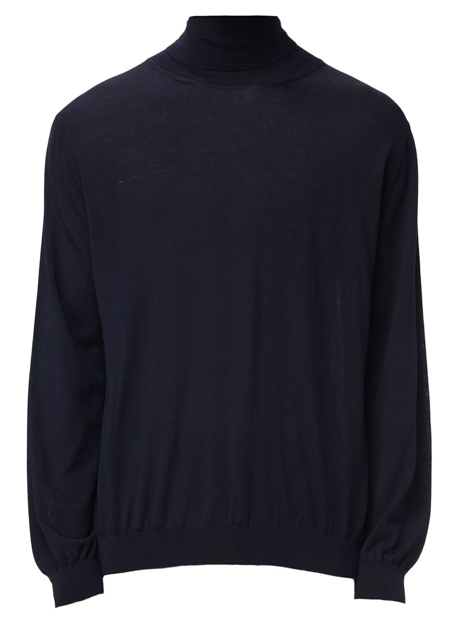 Blue merino wool turtleneck jumper with long sleeves and ribbed trim