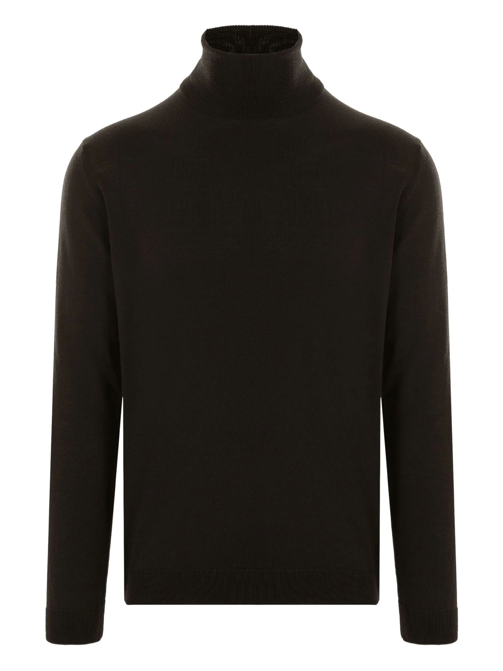 Brown merino wool sweater, high neck, long sleeves, regular fit, ribbed trim, Merino wool 100%