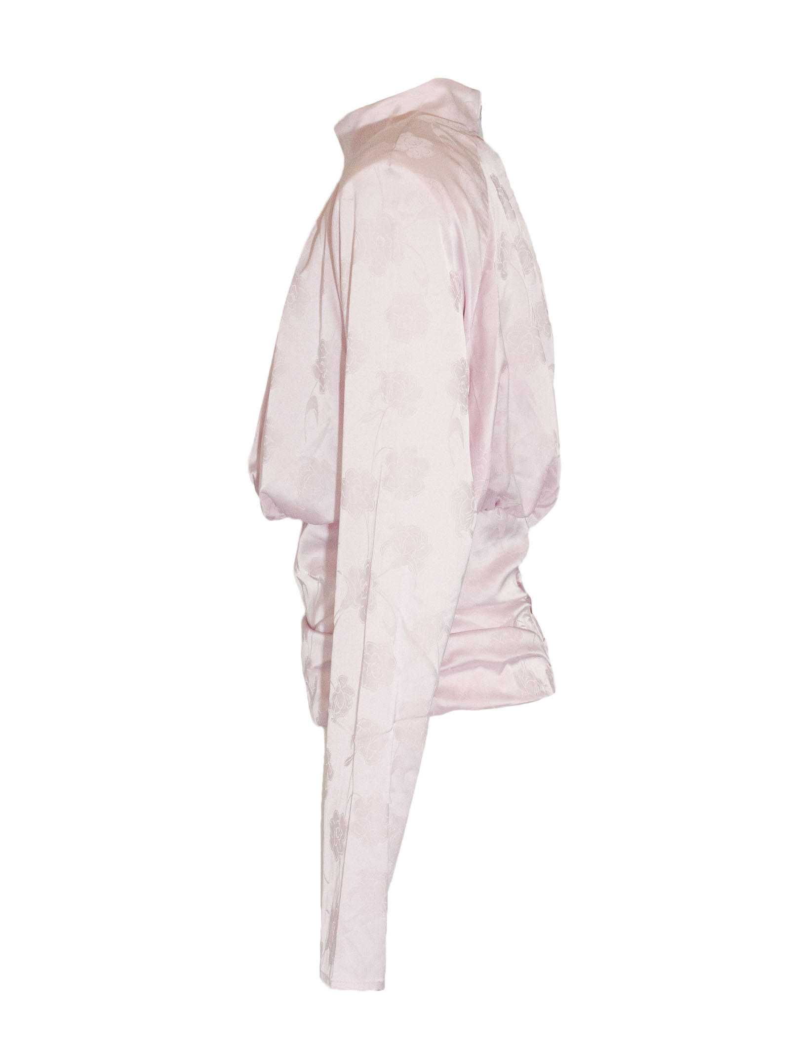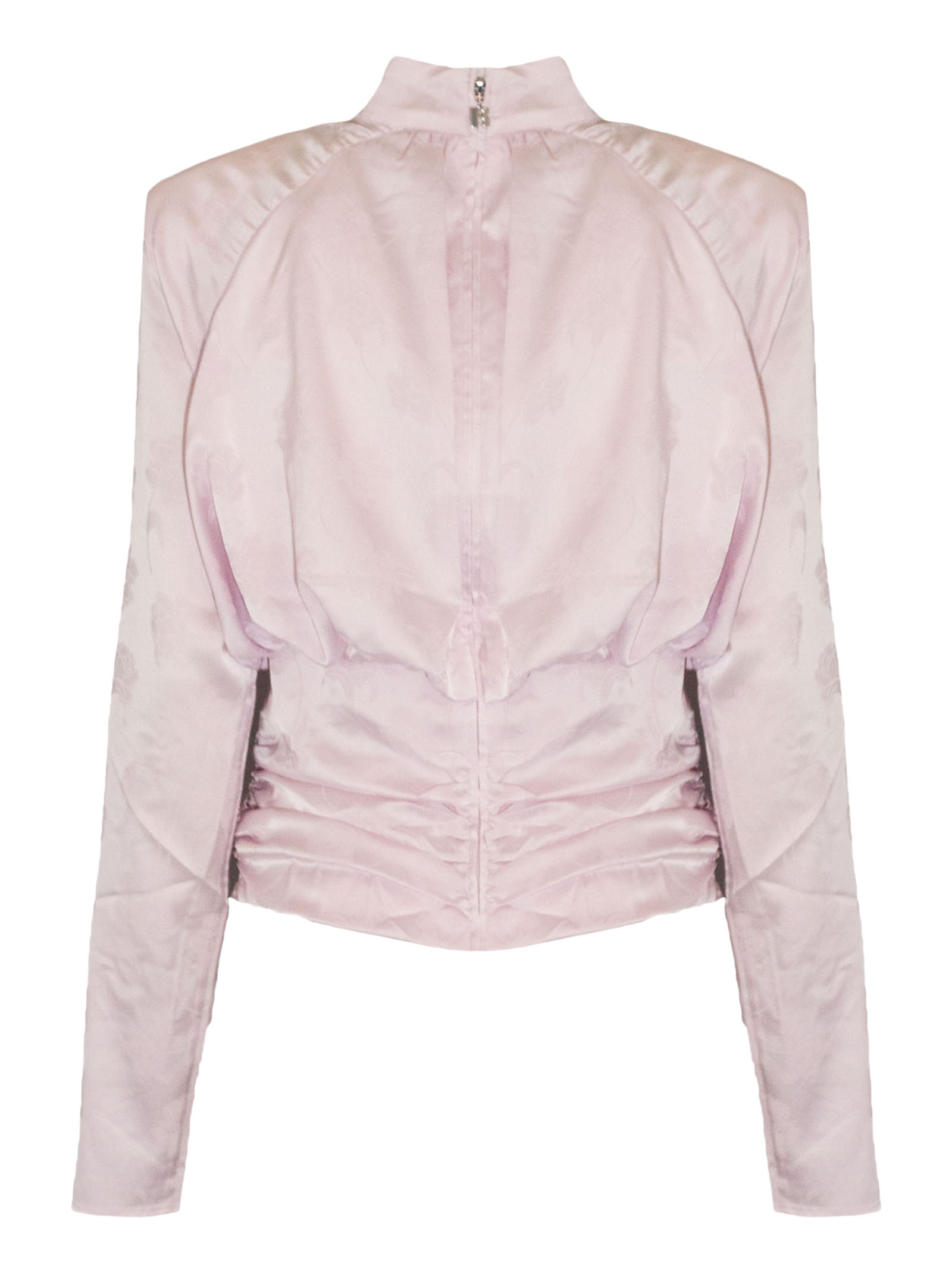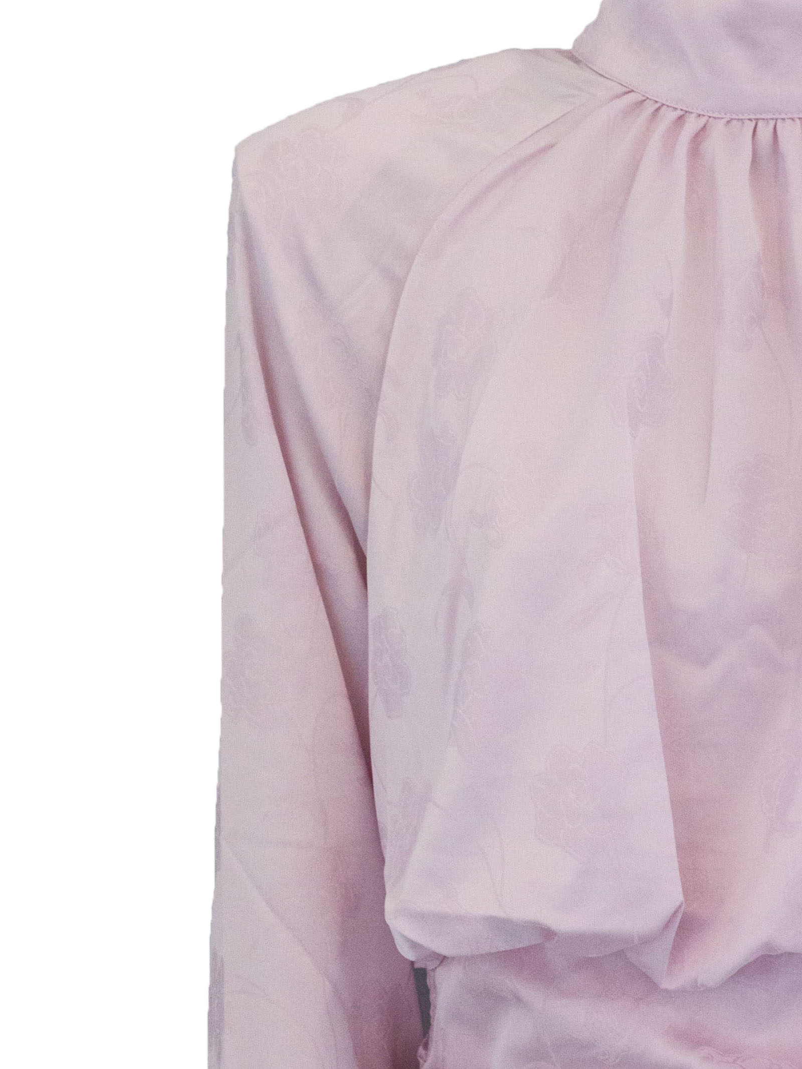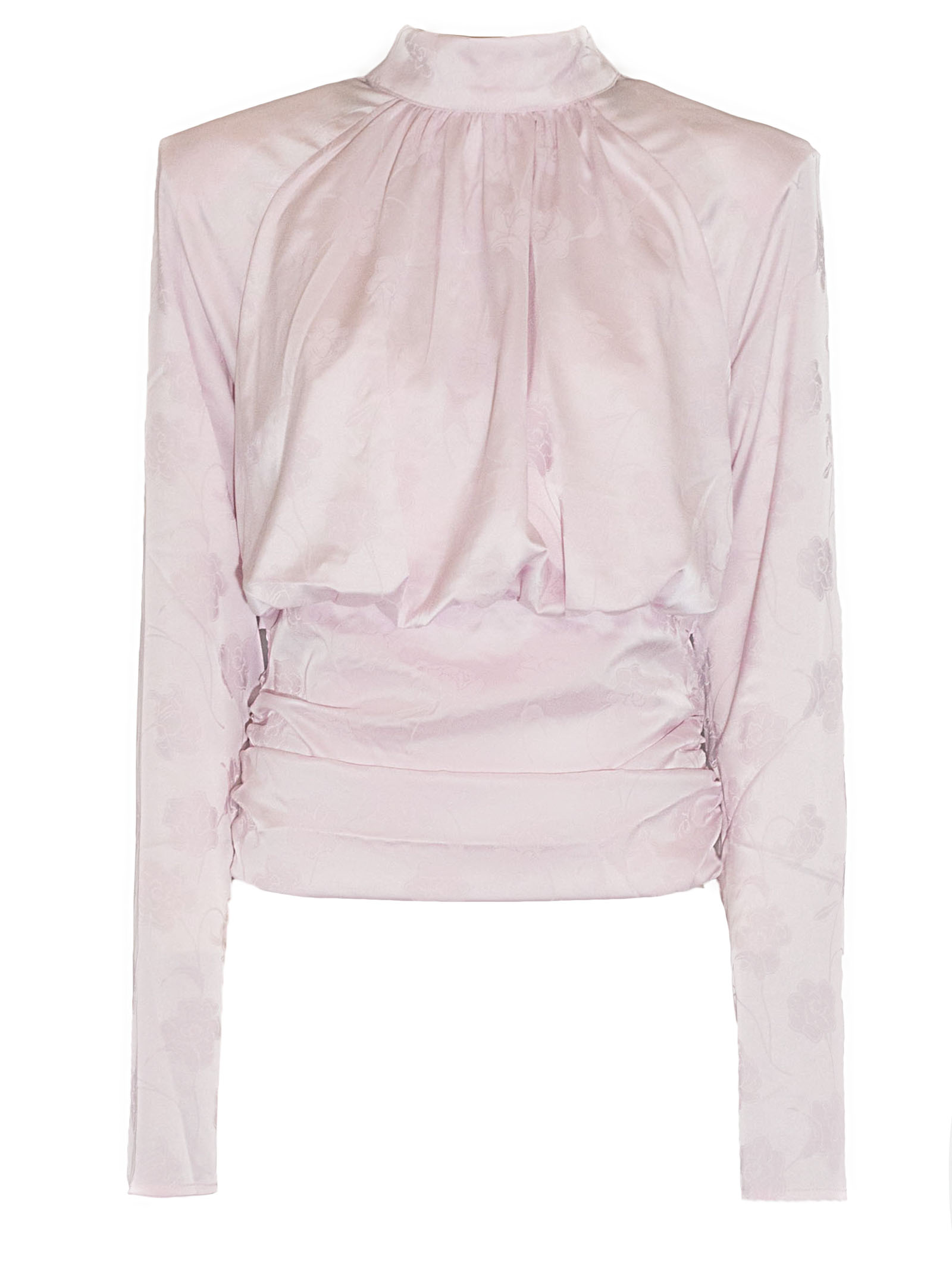 Light Pink Polyester Blouse With A Satin Finish, Soft High Neck, Long Sleeves And Draped Detailing On The Front, Gathered Bodice At The Sides For A Slightly Fitted Effect, Decorated With A Delicate Tone-On-Tone Jacquard Pattern.