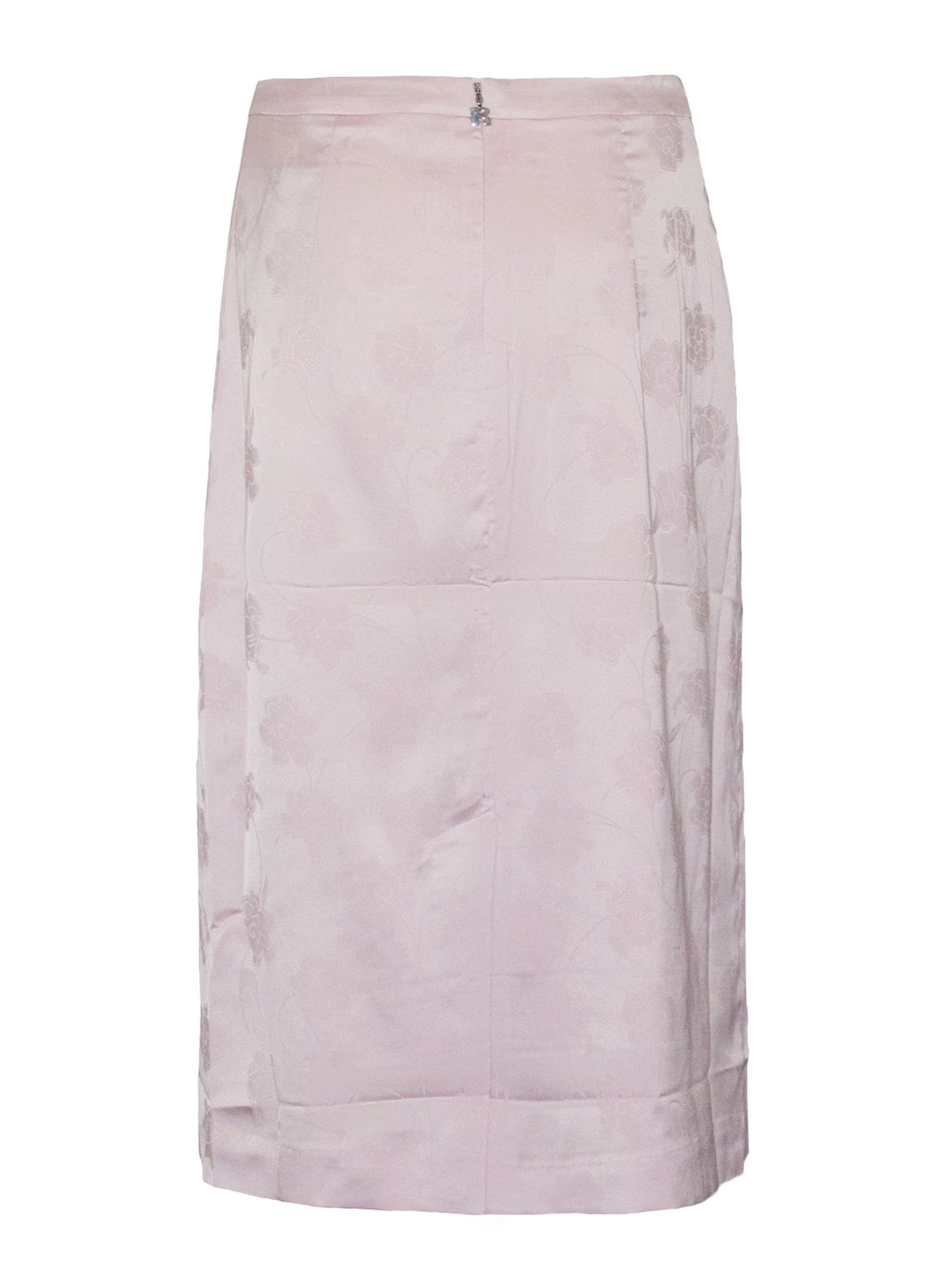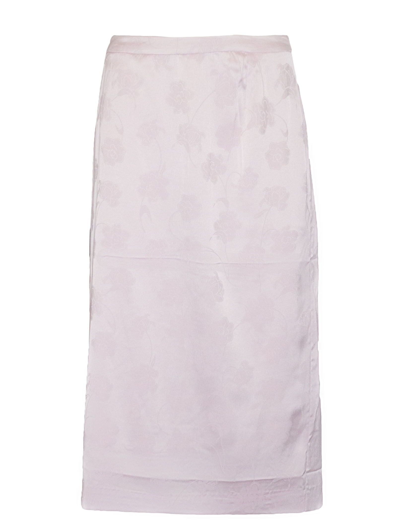 Straight Jacquard Skirt With High Waist, Straight Cut, Midi Length, Concealed Zip Fastening At The Side, Floral Jacquard