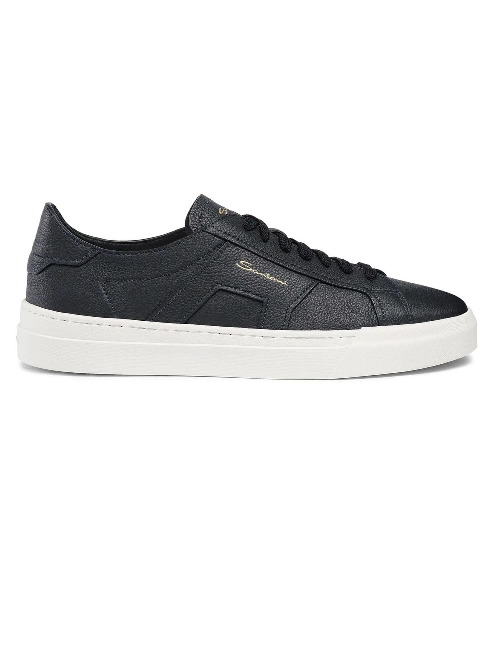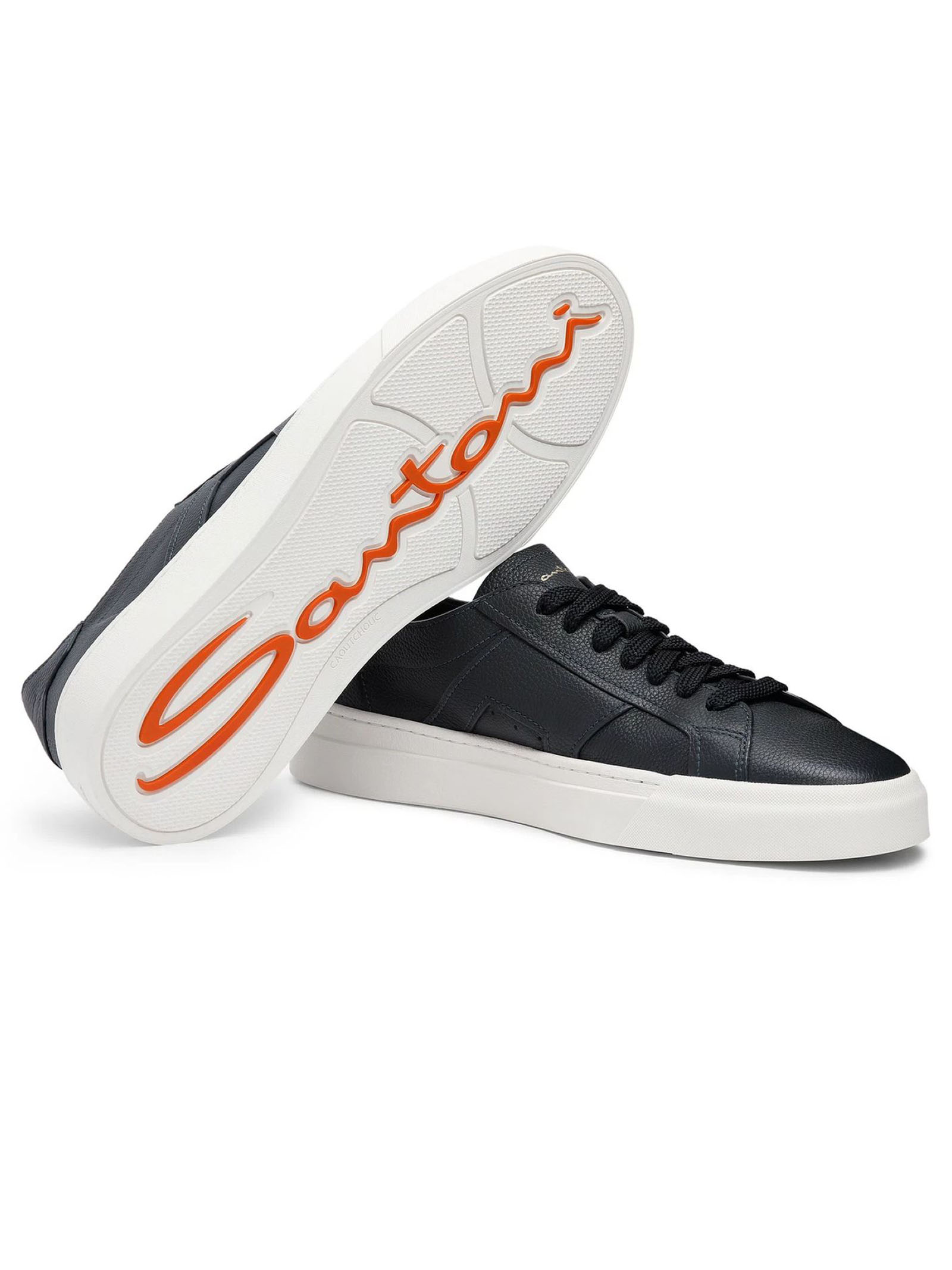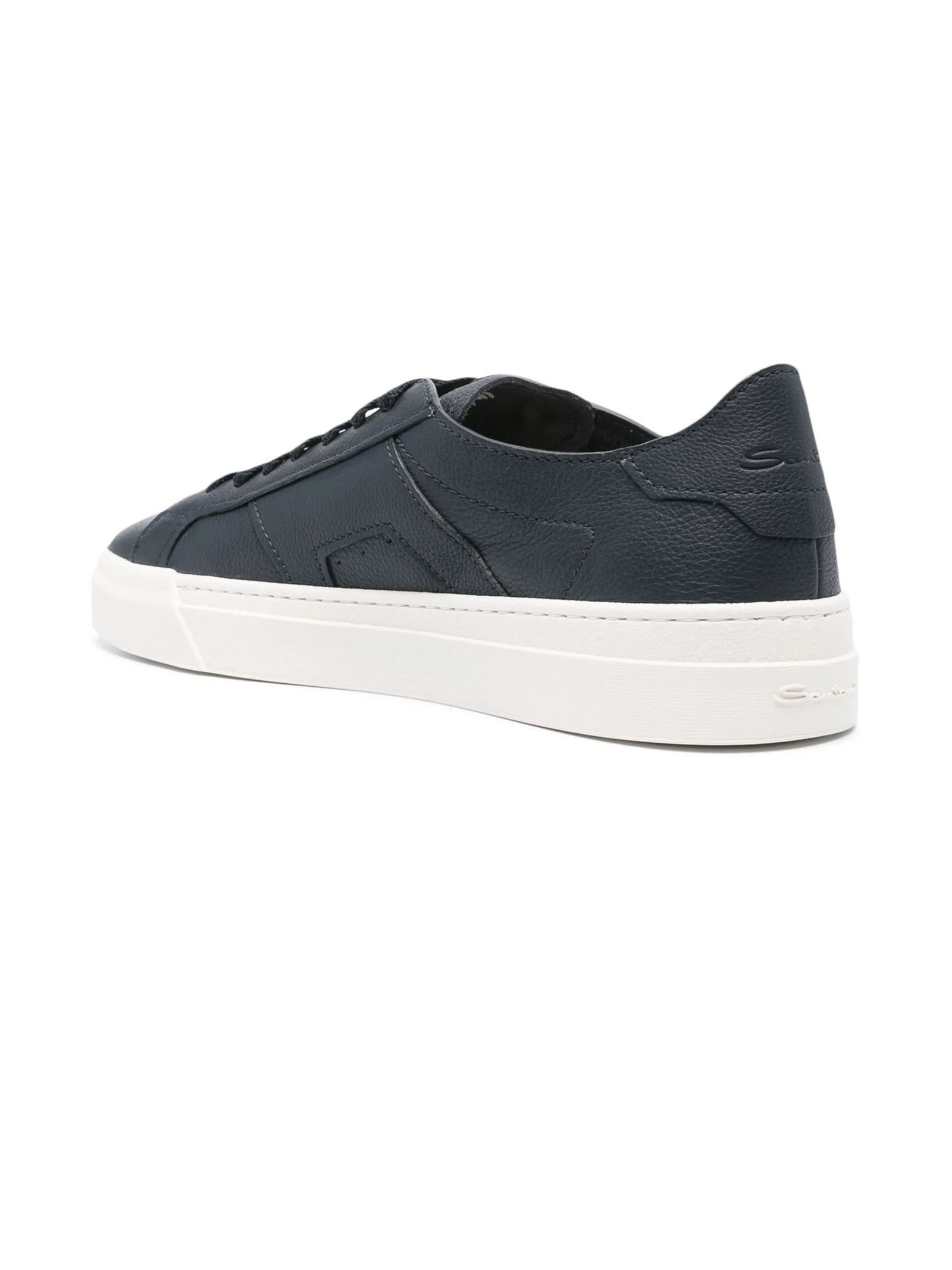 Navy blue calf leather sneakers, grained texture, panelled design, logo print to the side, logo-print tongue, debossed logo to the rear, embossed logo to the rear, logo at the sole, round toe, front lace-up fastening, branded leather insole, rubber outsole