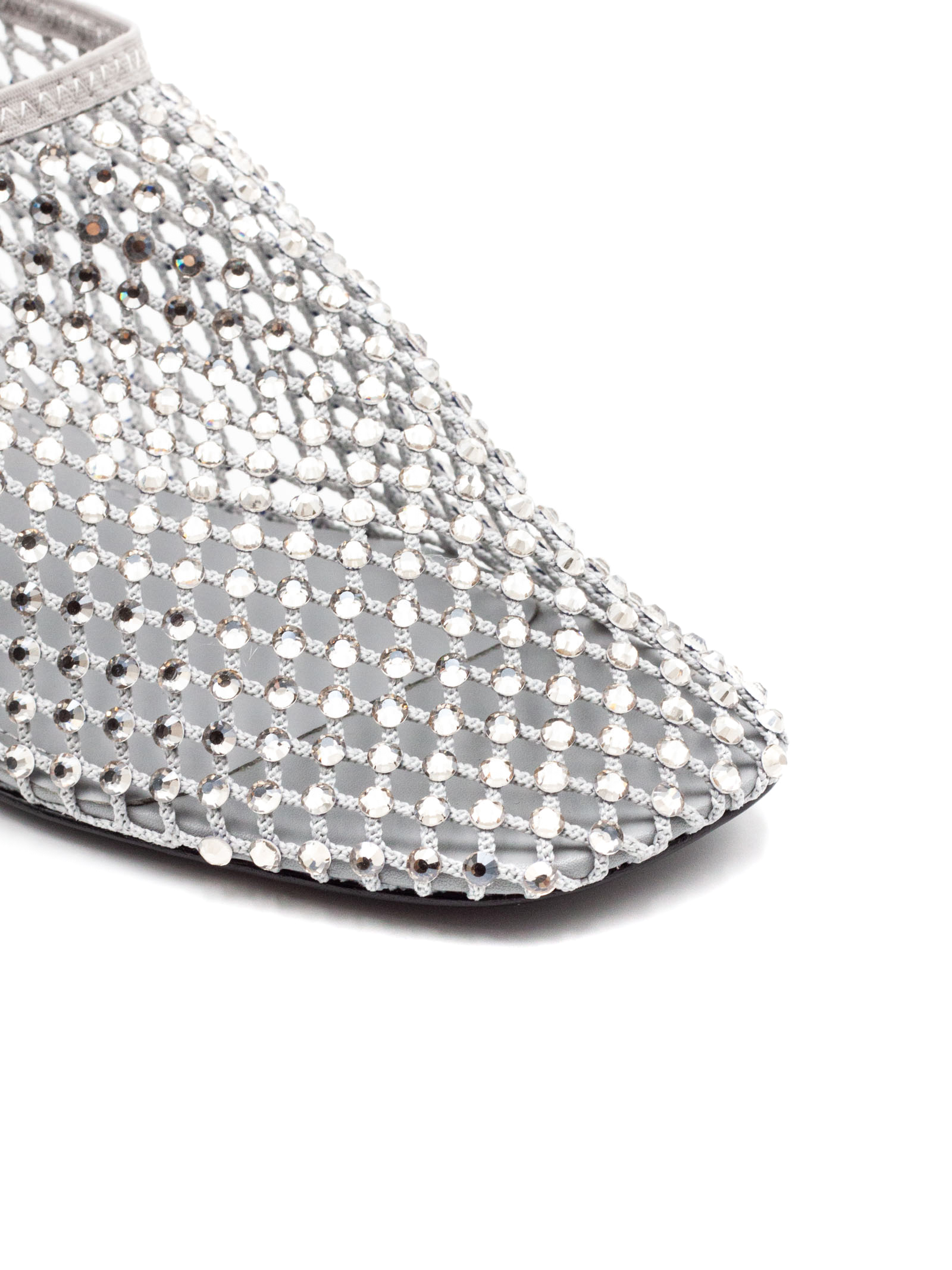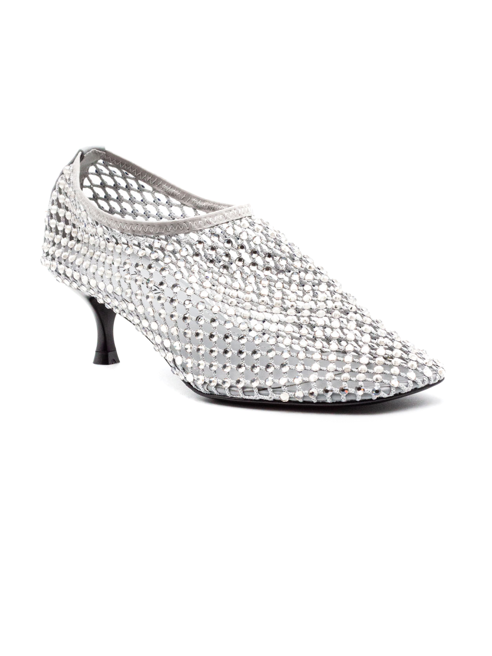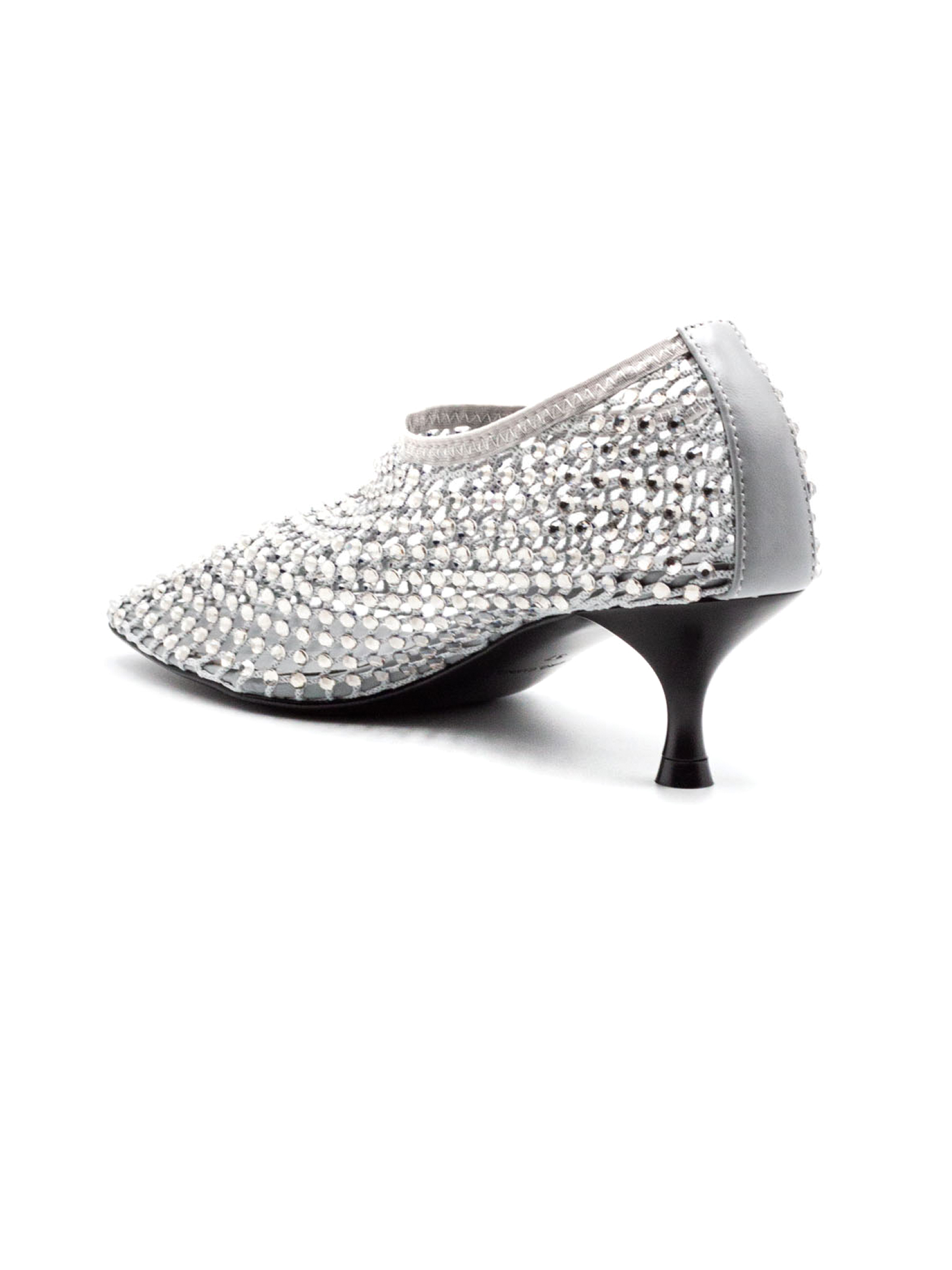 Grey mesh pumps, sparkling rhinestone detailing and appliqués, matching elastic, leather insole and leather sole, altezza tacco 4 cm