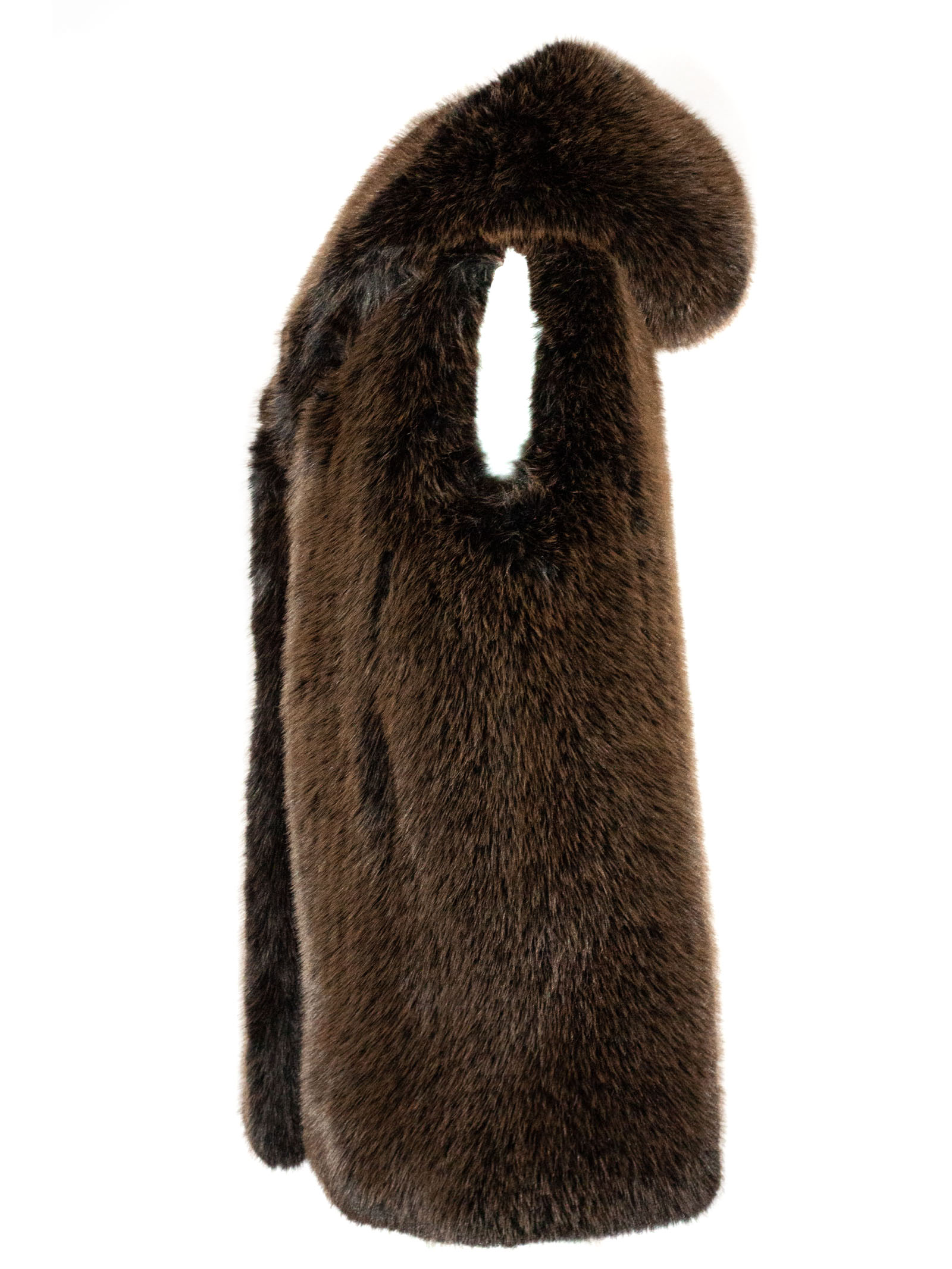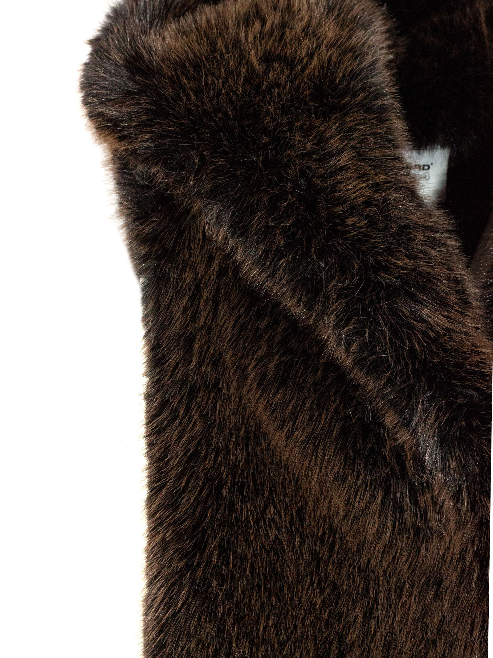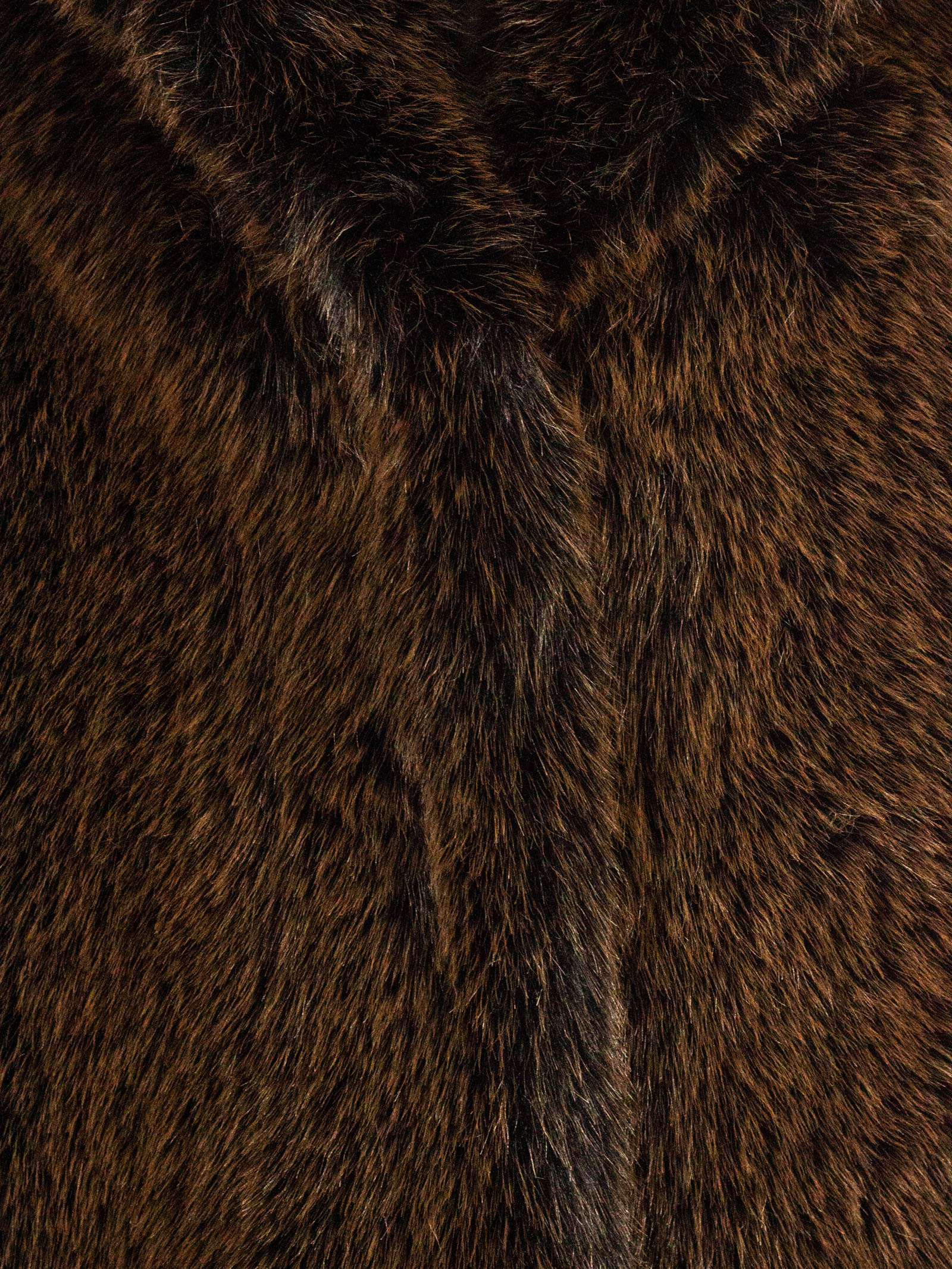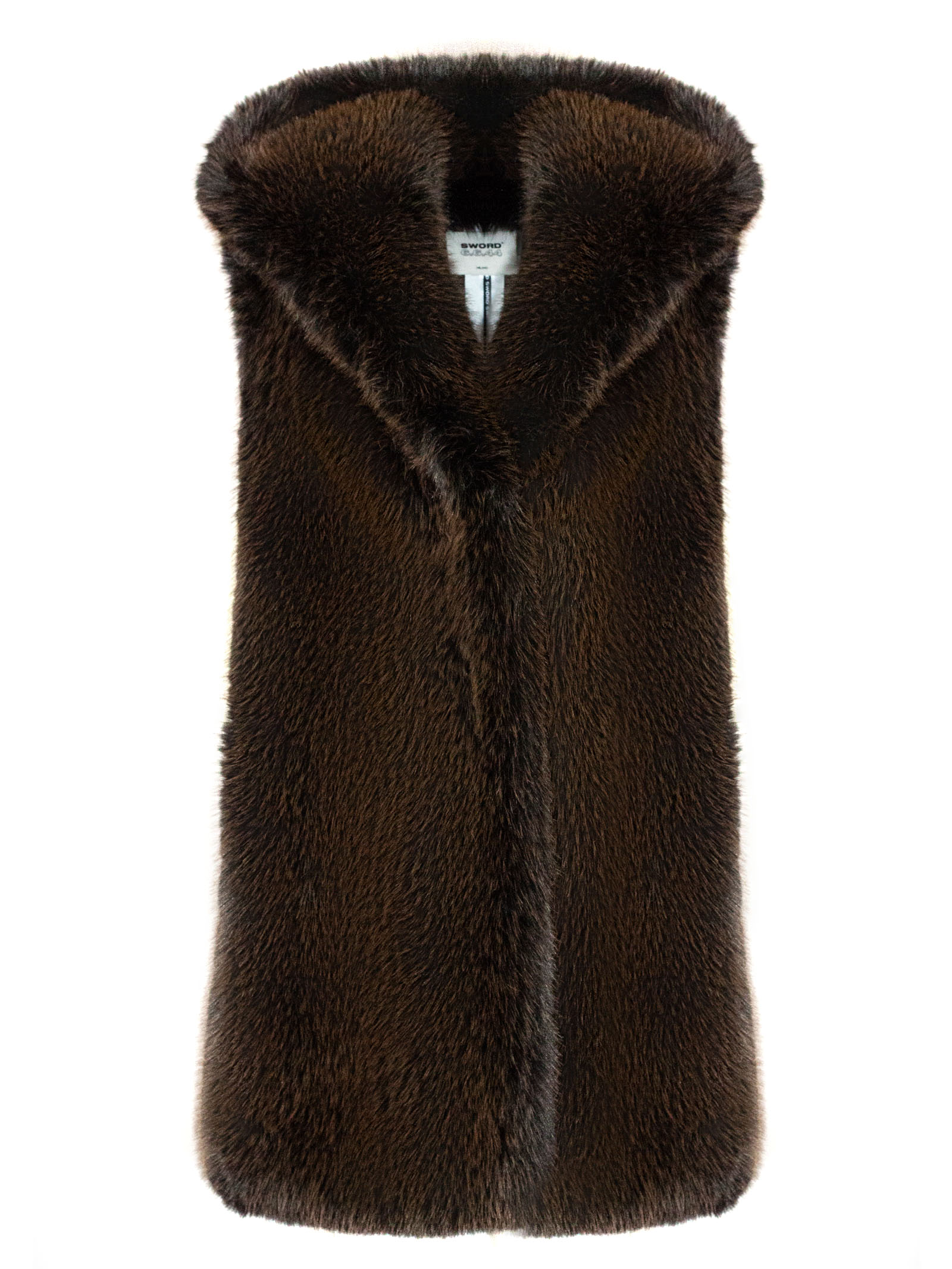 Brown faux fur gilet, soft and compact. Sleeveless style with V-neck and invisible front fastening. Straight cut and regular fit, 100%Polyester, Lining: 100% Polyester