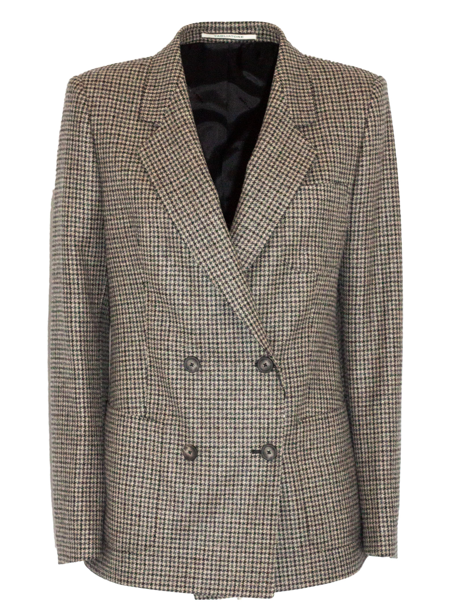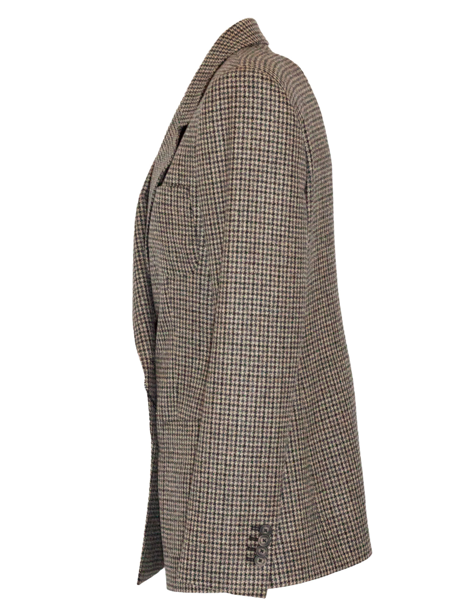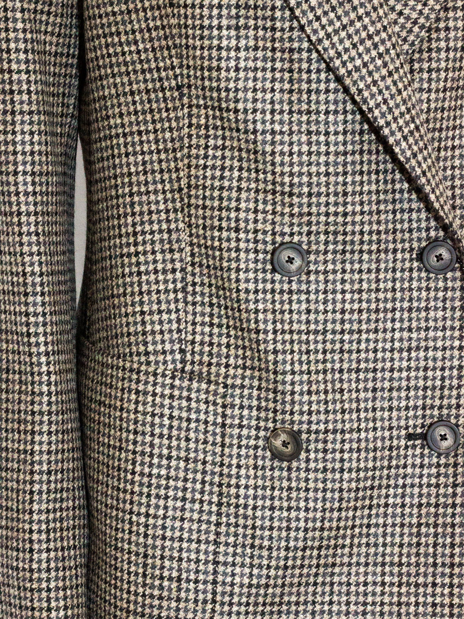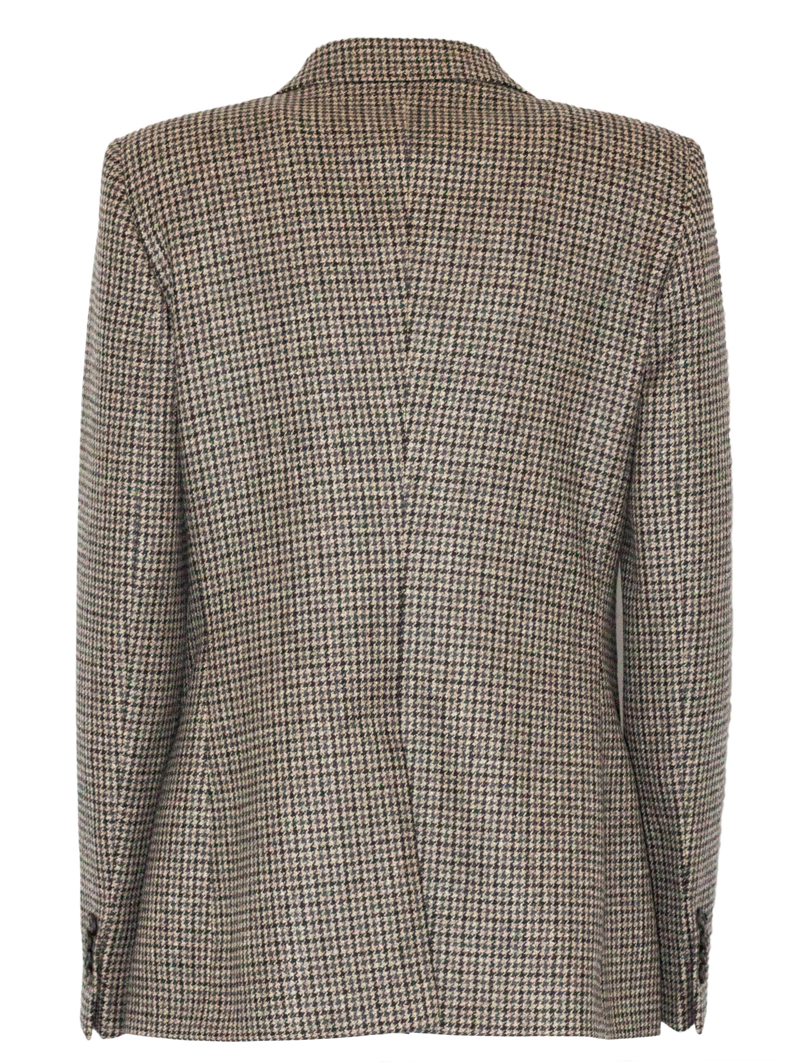Double-breasted blazer with houndstooth pattern in 110S virgin wool in beige, buttoned cuffs, classic lapels, welt pockets, breast pocket, vent at the back, lined