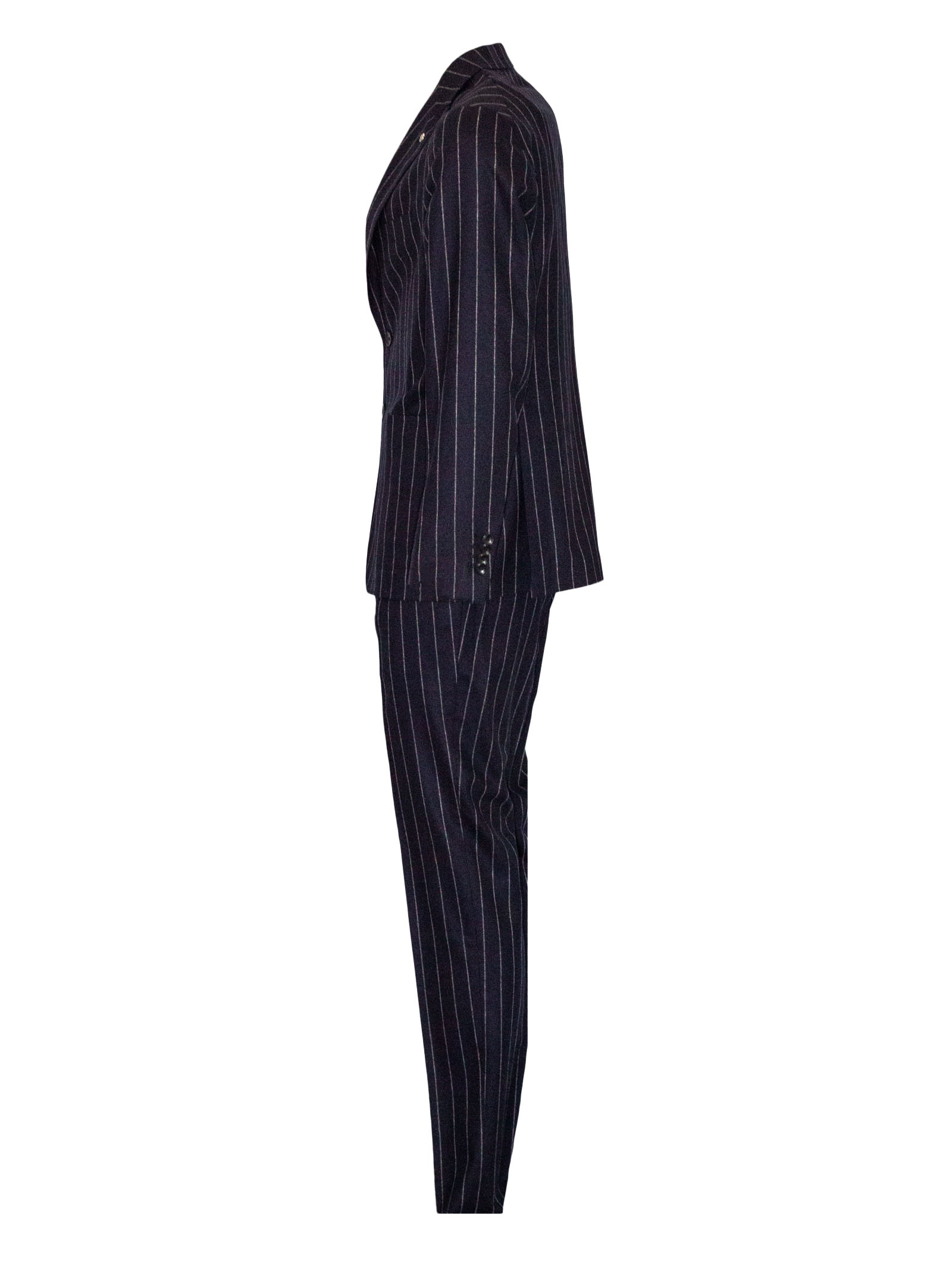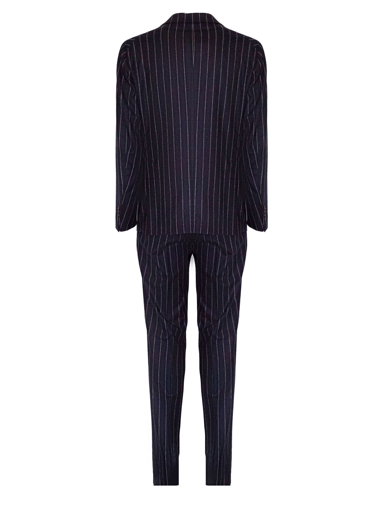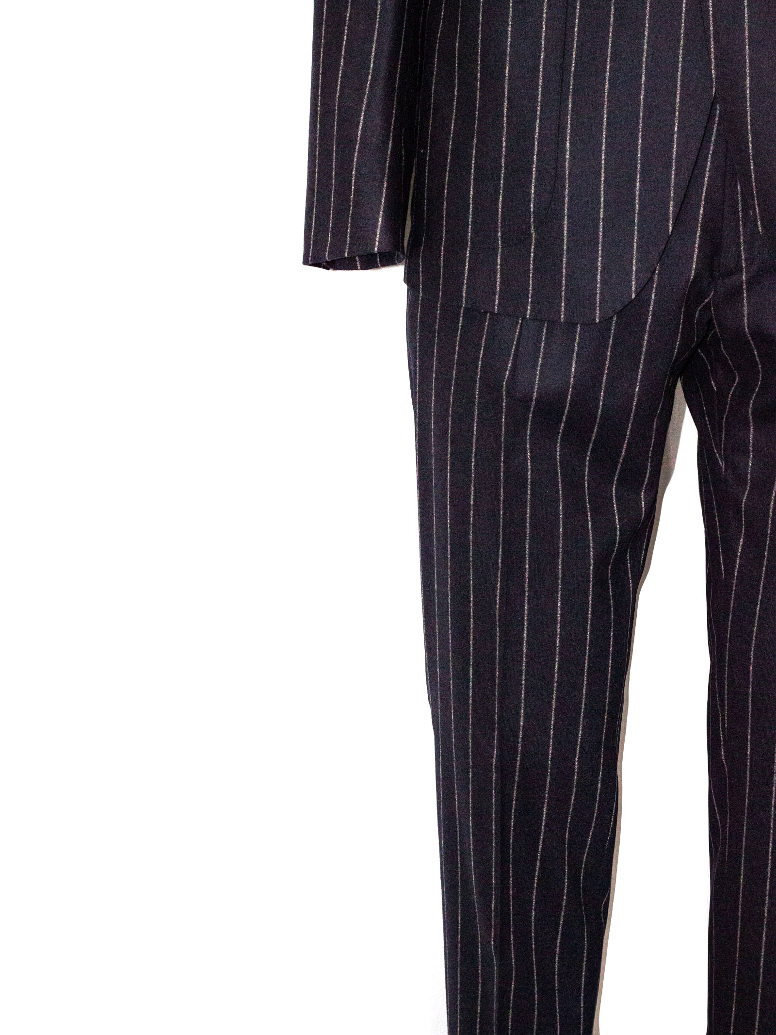 Virgin wool and cashmere pinstripe suit, jacket features two-button closure, classic lapels and flap pockets, welt pockets, breast pocket, trousers have a straight and clean line, zip closure and hidden button, 90%Virgin wool, 5%Cashmere 3%Polyamide 2%Elastane