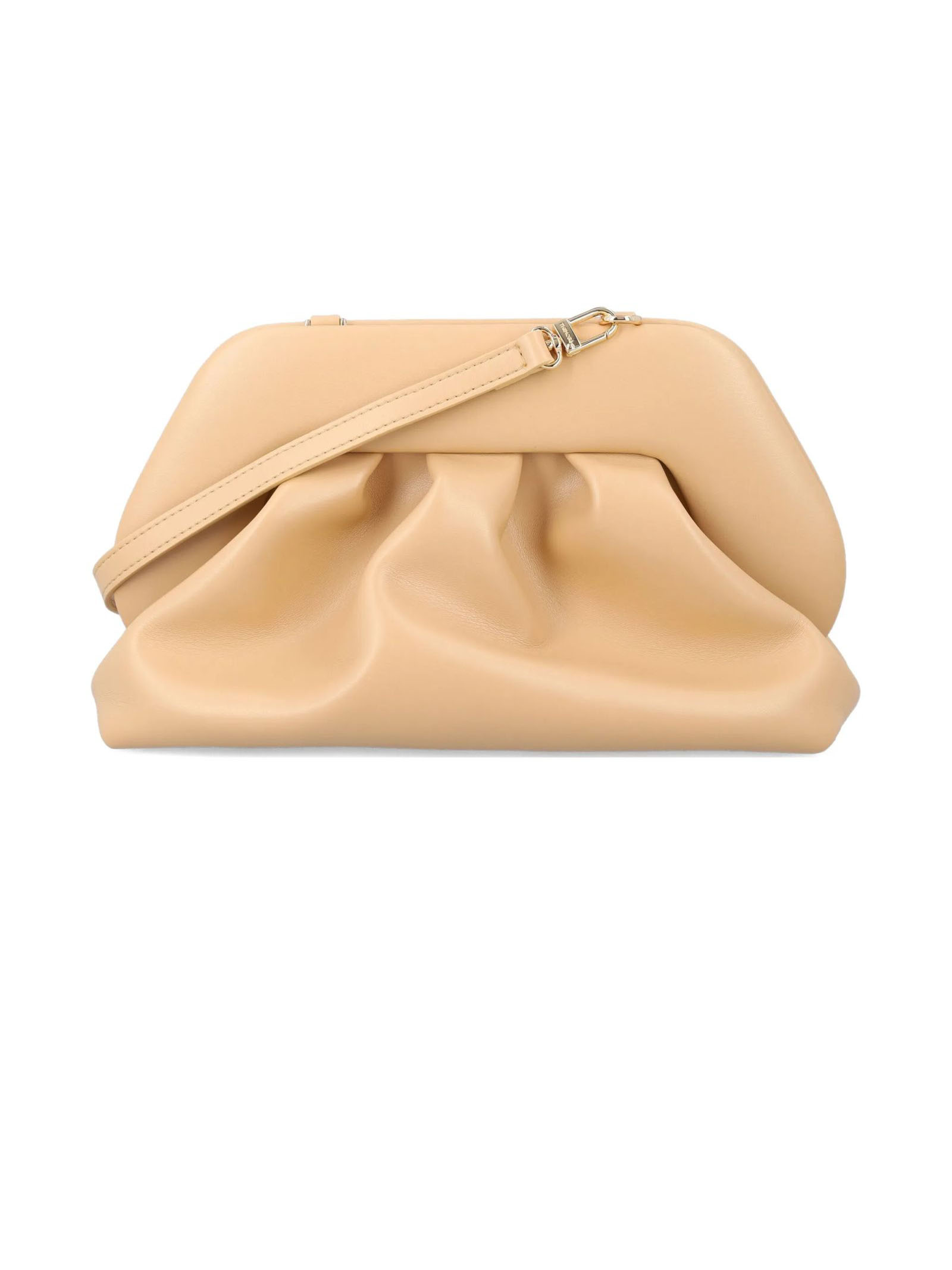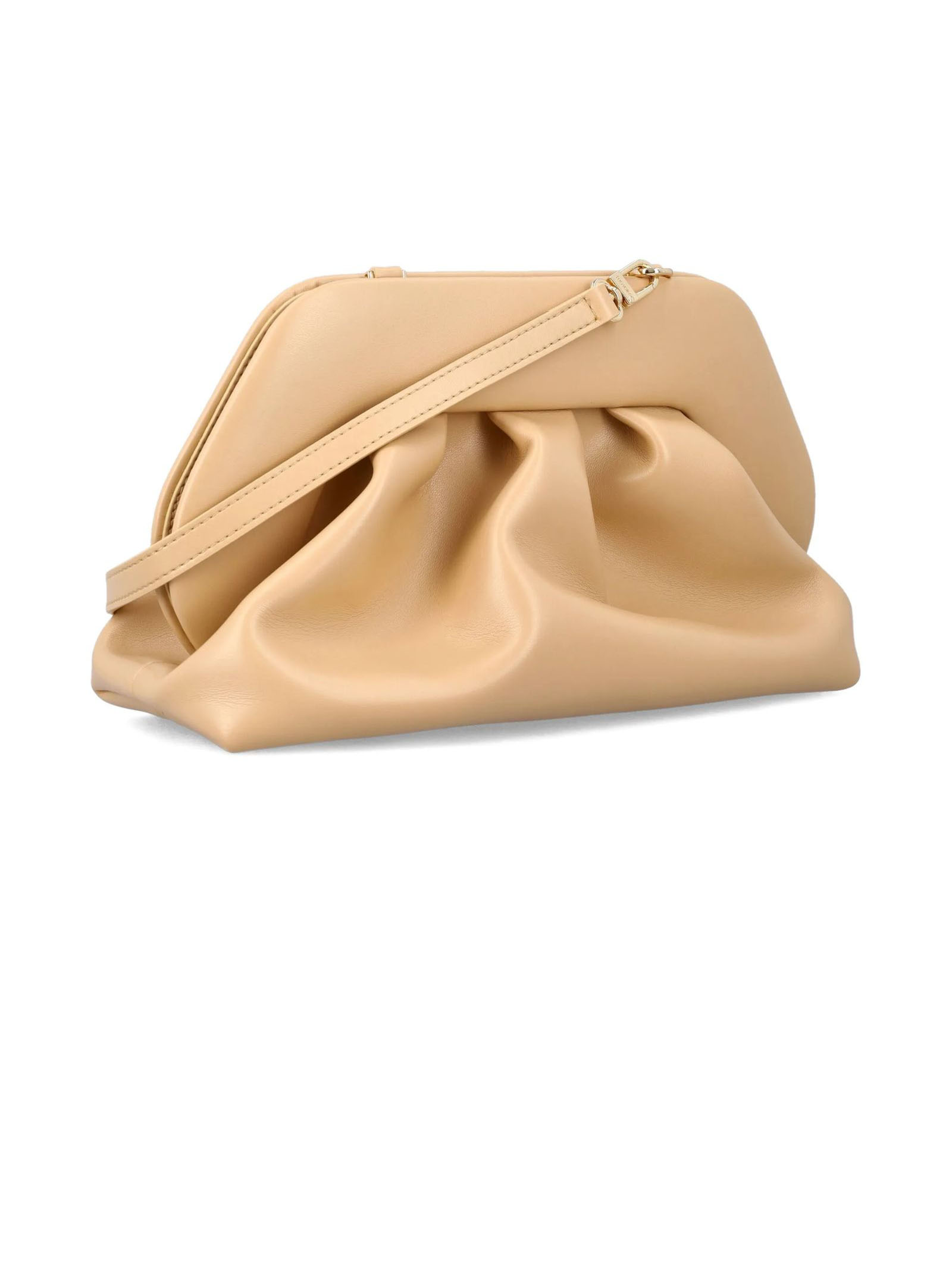 Bios medium Beige Vegan clutch bag, Adjustable Detachable Shoulder Strap, Gold-Tone Hardware, Depth 11 Cm, Height 20 Cm, Width 30 Cm