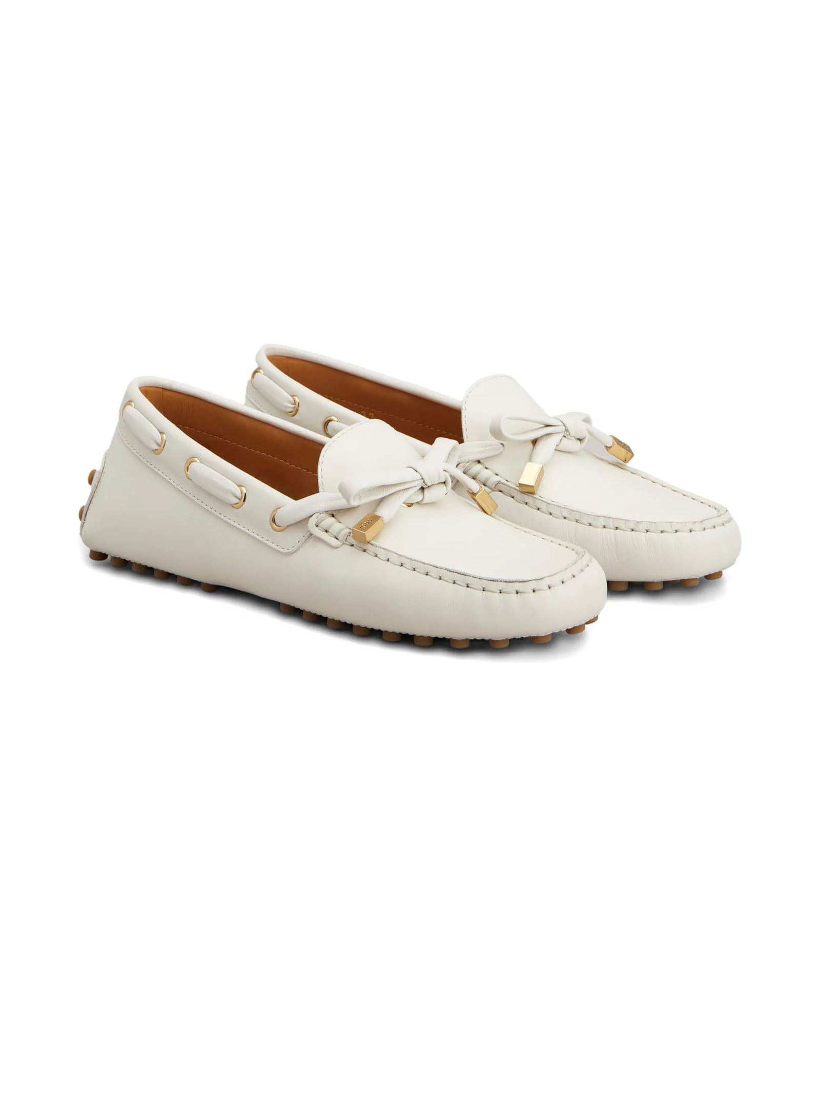 Gommino Loafers in White Leather, Woven tie, Metal ends with logo, Exposed handmade stitching, Leather lining and insole, Iconic Tod's outsole