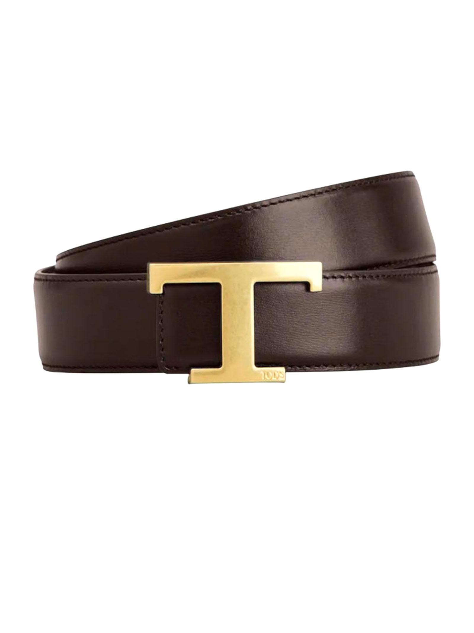 T Timeless Reversible Belt in Brown Leather, Branded metal T Timeless buckle, Width: 3.5 cm