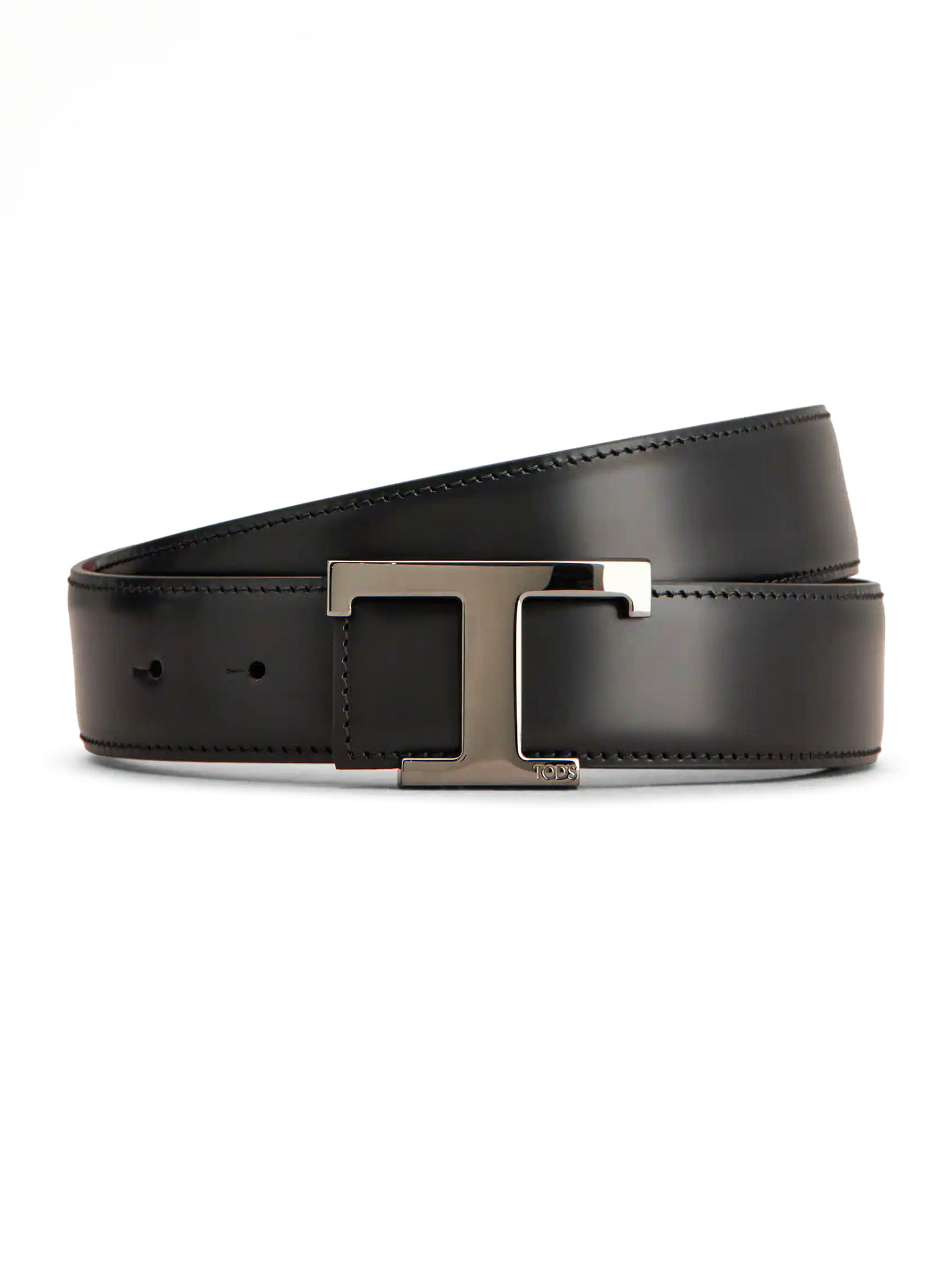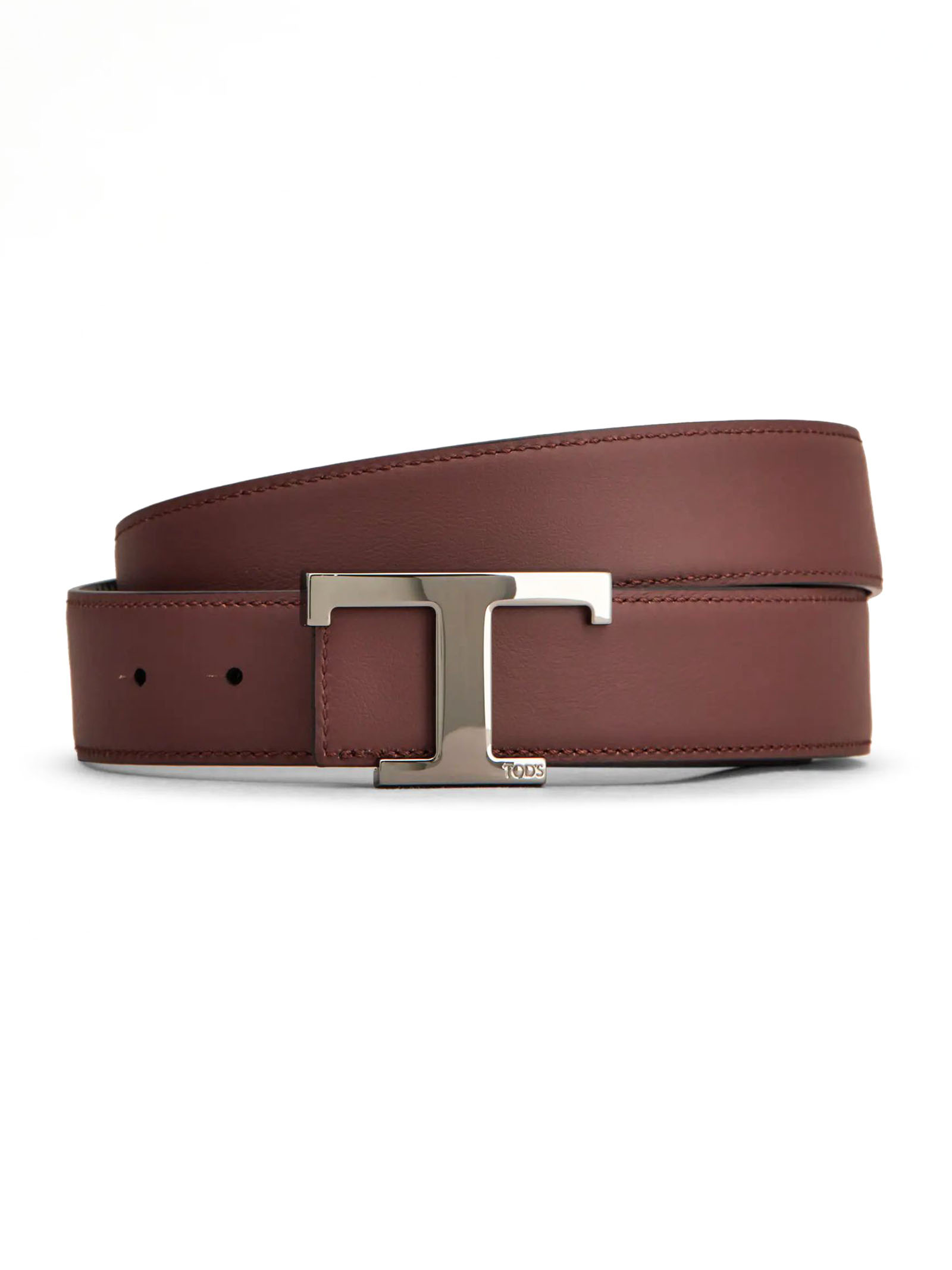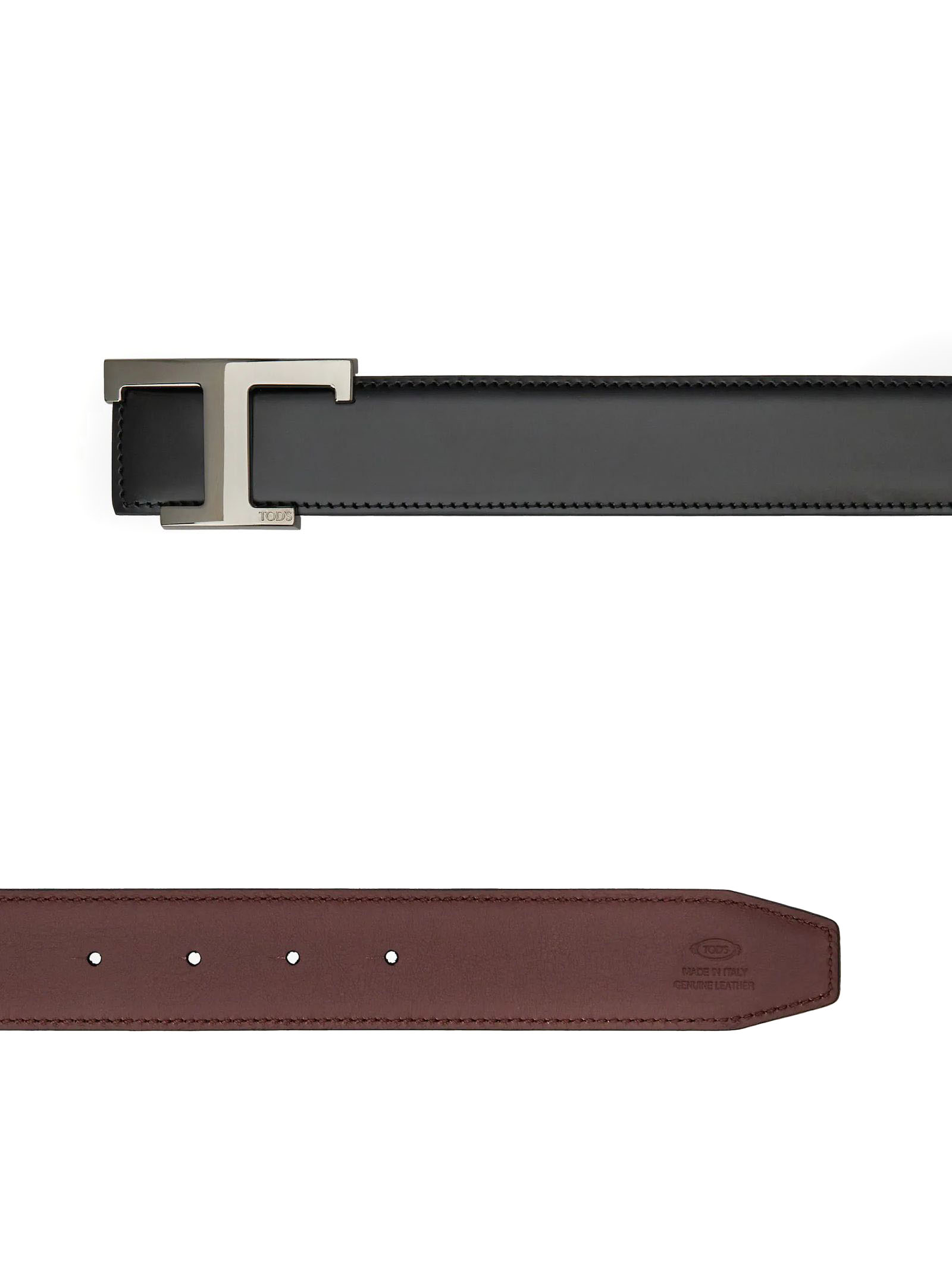 T Timeless Reversible Belt in Leather, Black and Burgundy, Branded metal T Timeless buckle, Width: 3.5 cm