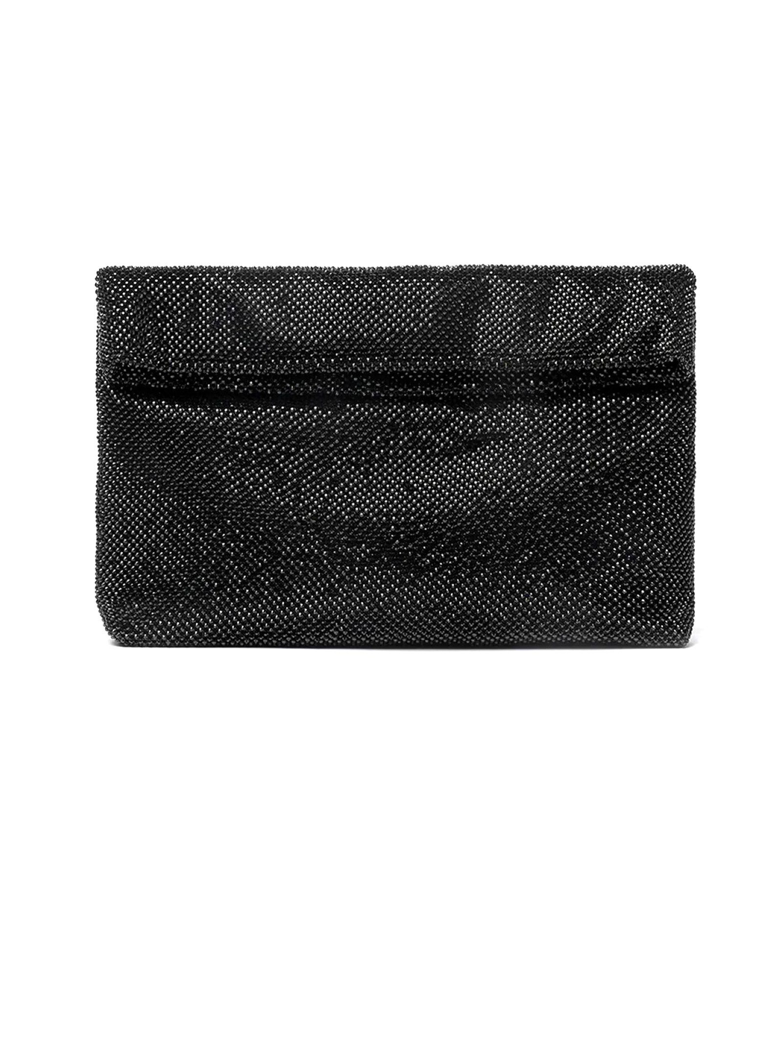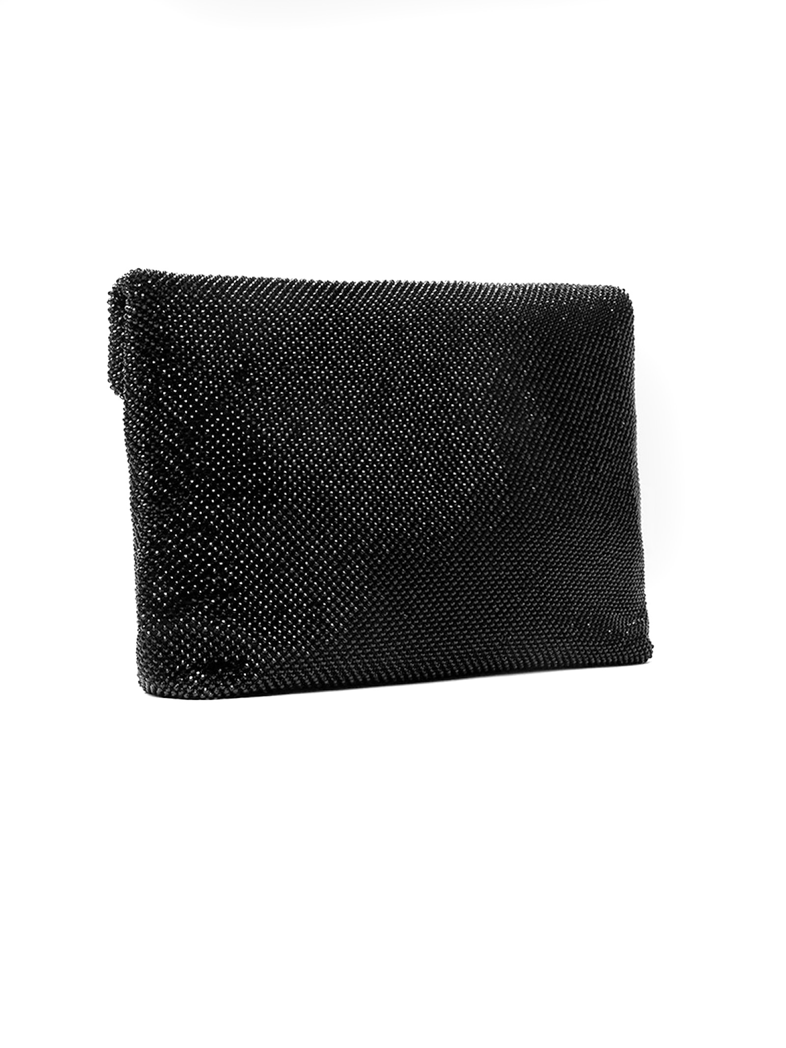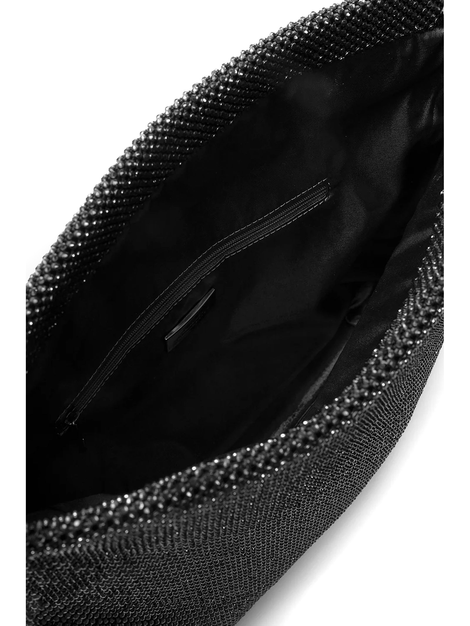 Dunham pewter maxi clutch bag in rhinestone knit, with magnetic closure, 38 x 20 x 11 cm