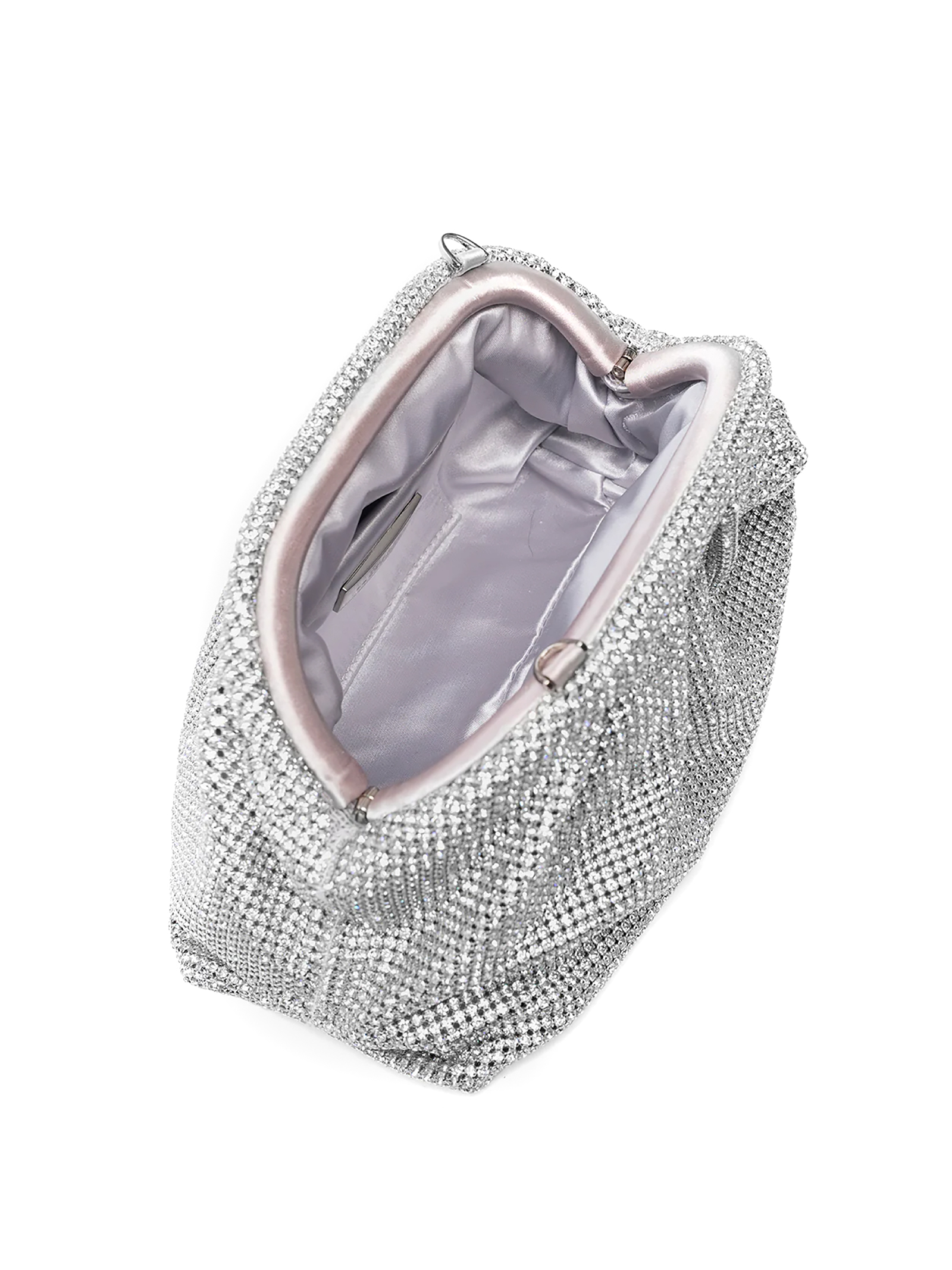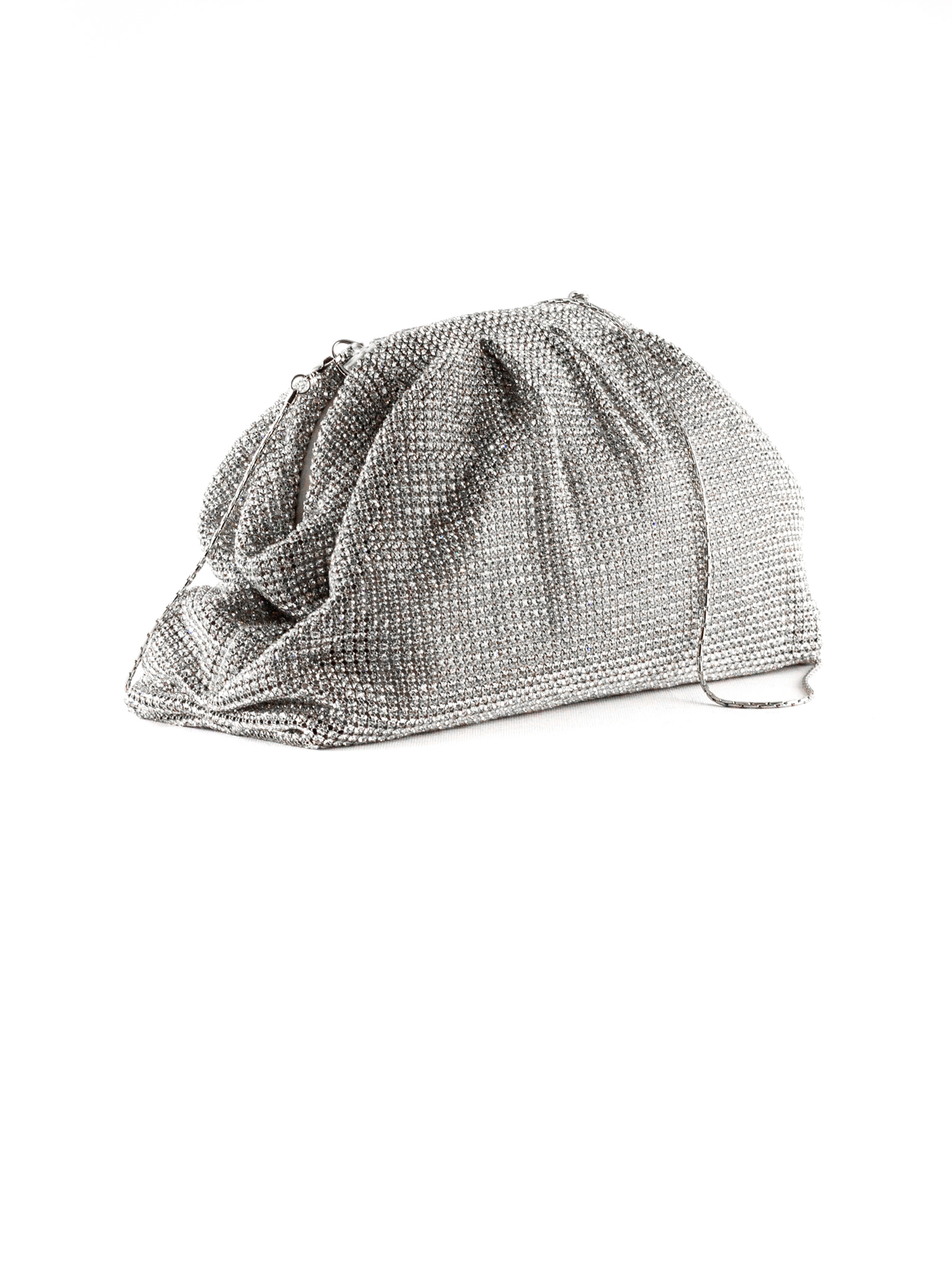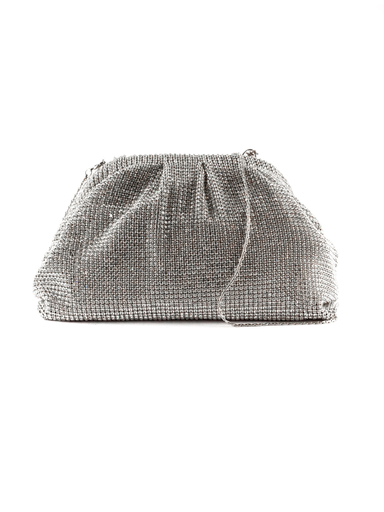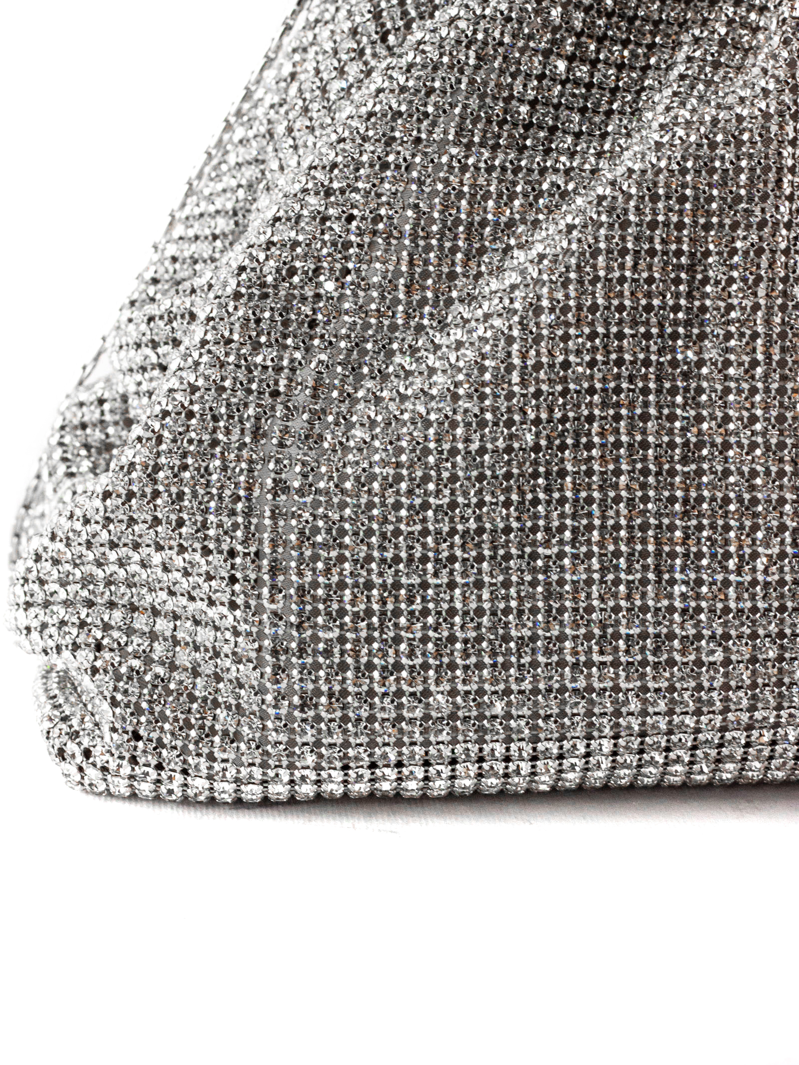 Pouch bag Petra silver made entirely of crystal mesh, with metal closure and removable shoulder strap, dimensions: W22 x H10 x D14 cm