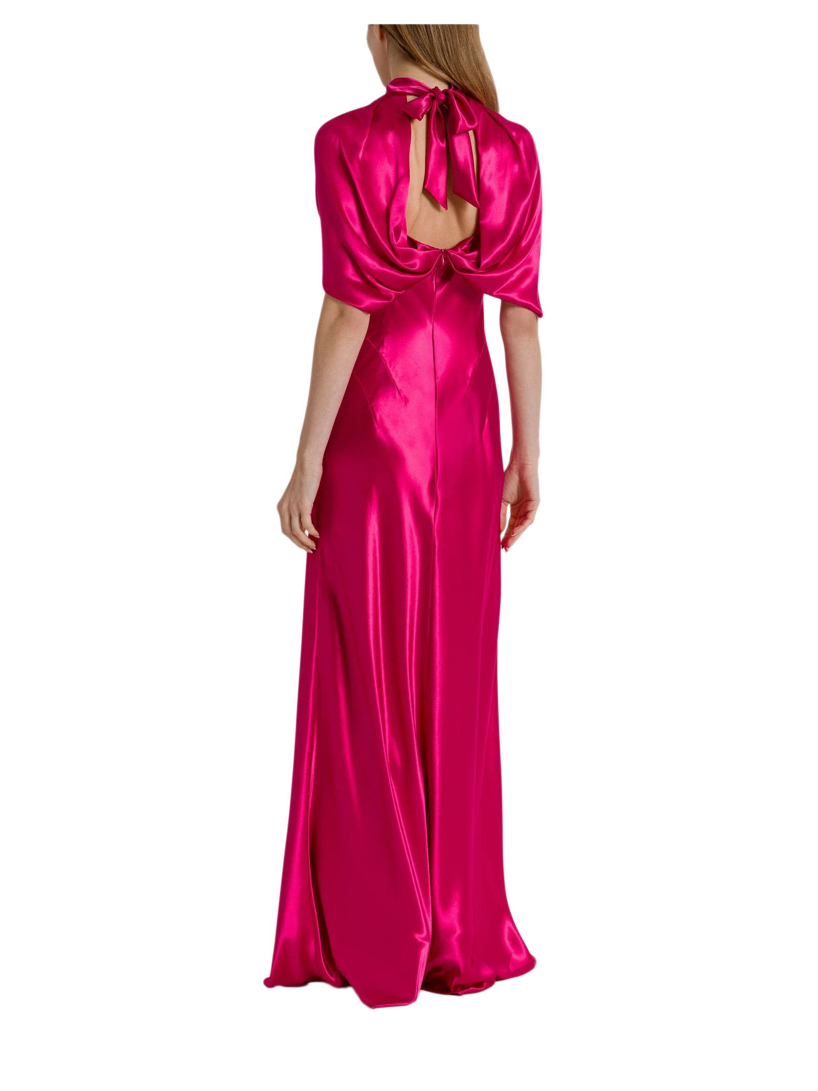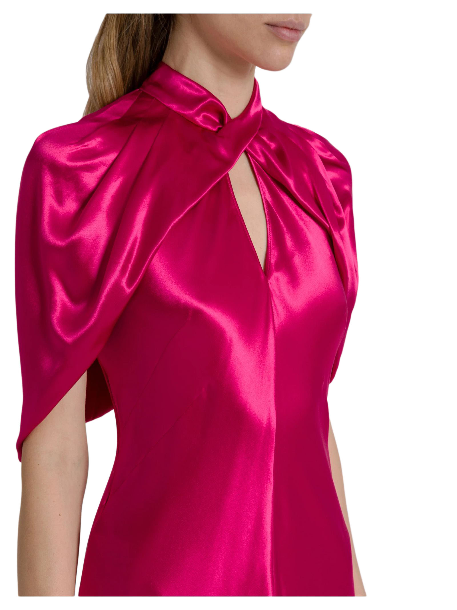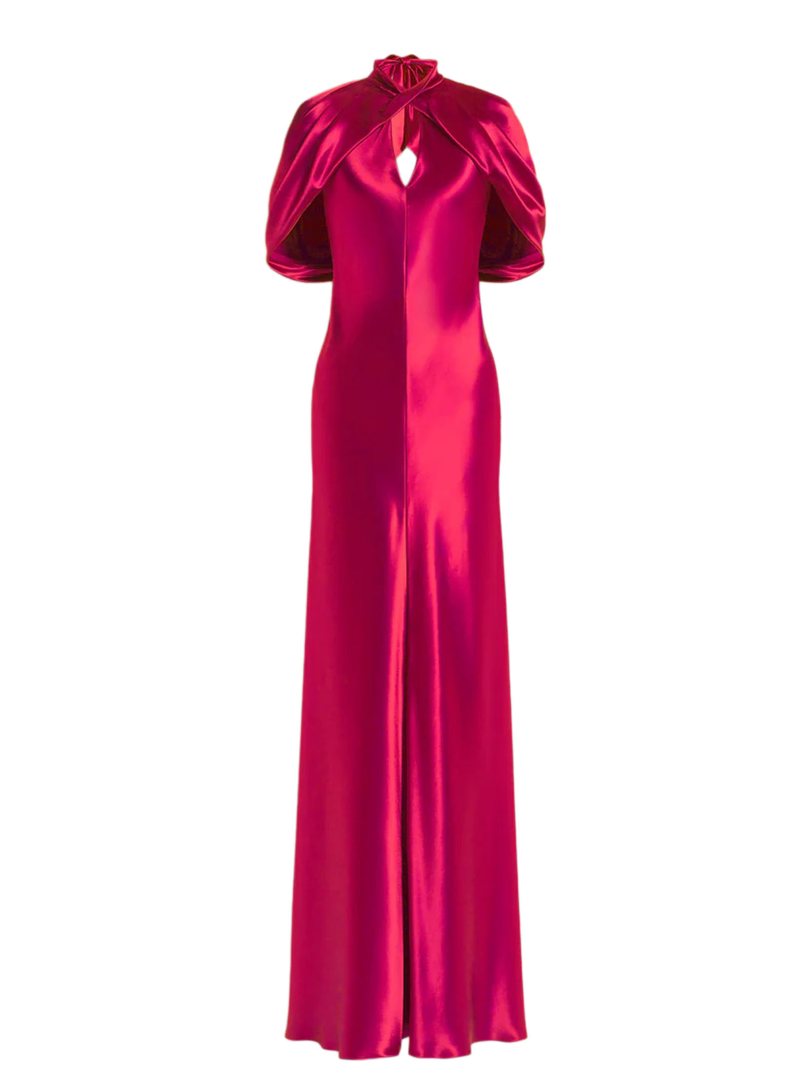 Abito Da Sera In Raso Con Maniche A Mantellina, Collo Alto, Apertura Frontale A Goccia, Lunghezza Al Pavimento