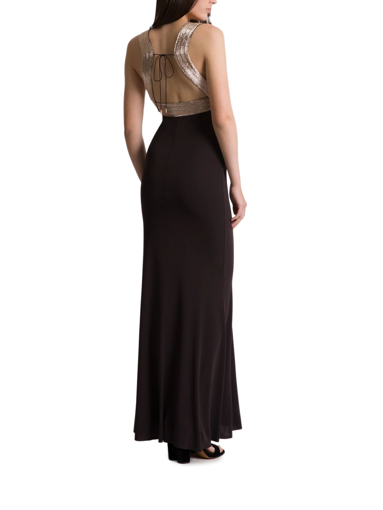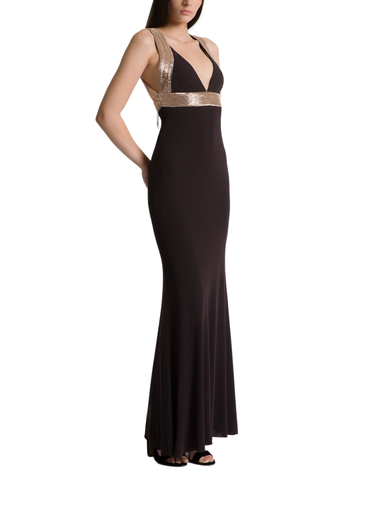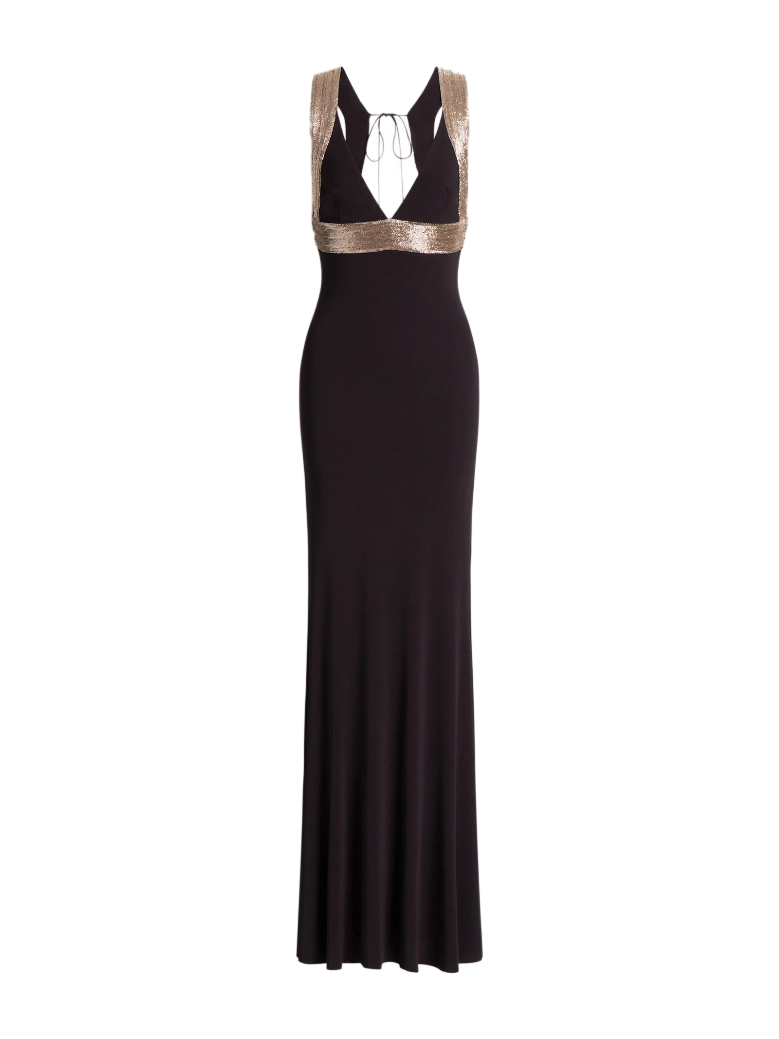 Abito lungo con dettagli ricamati a contrasto, Silhouette attillata, Bande luminose su spalline e vita
