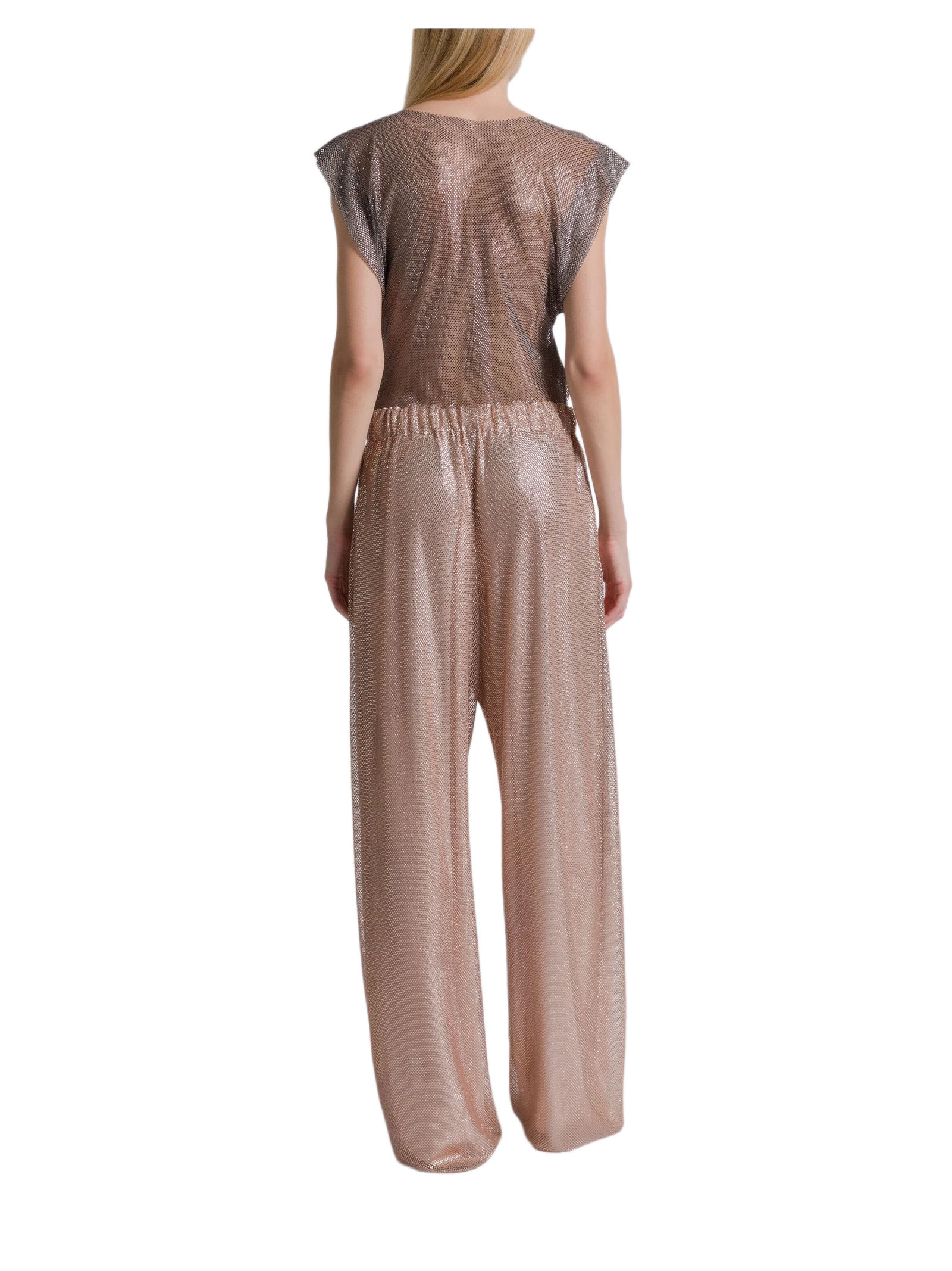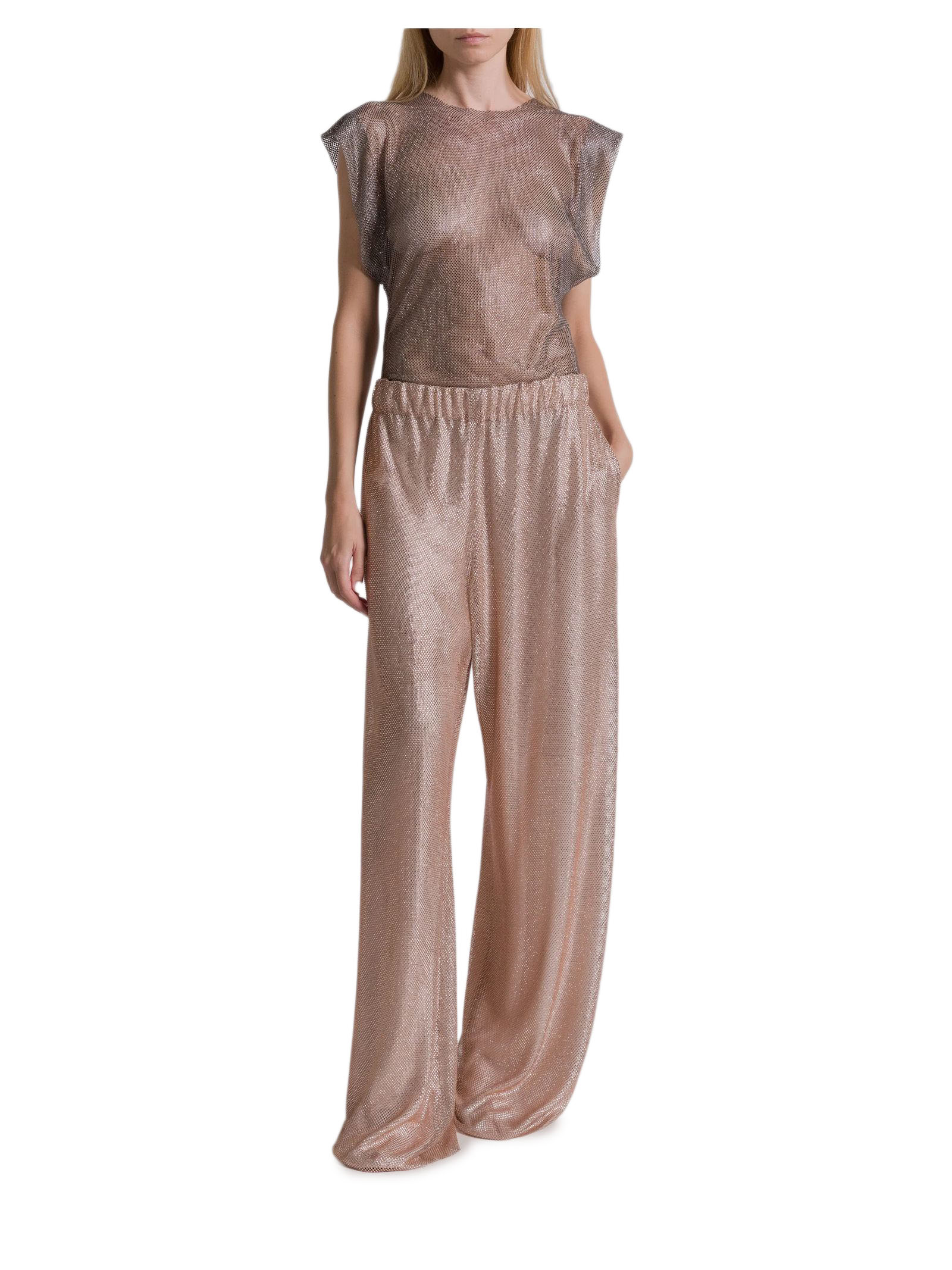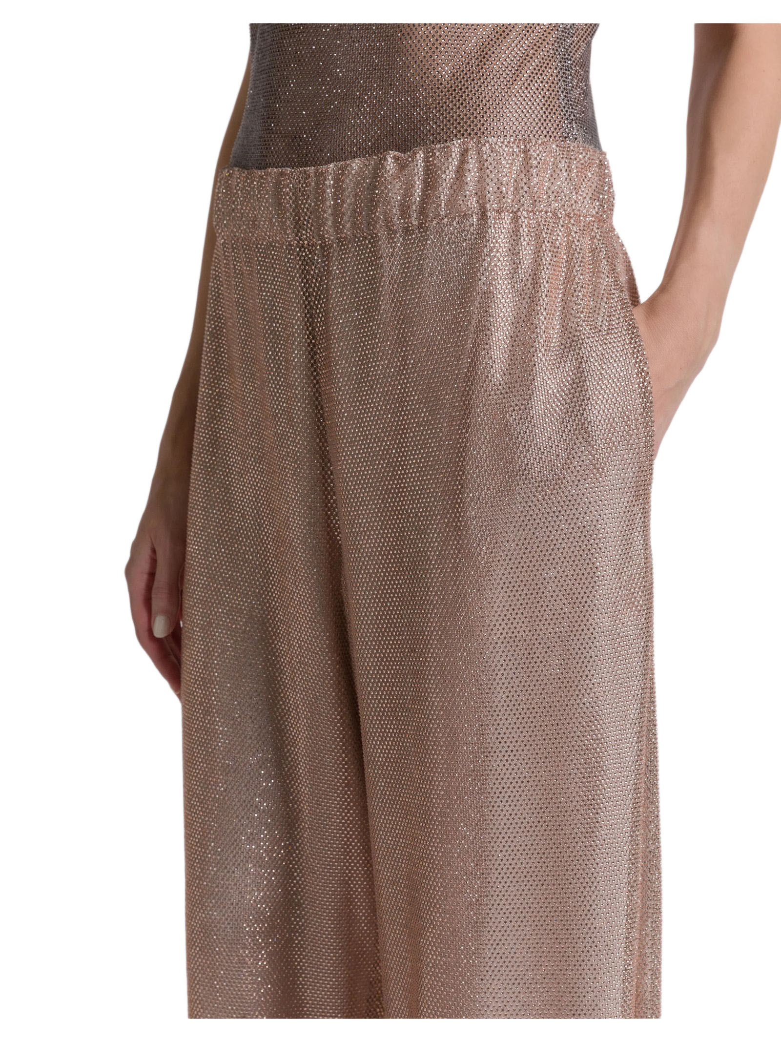 Pantaloni a gamba larga in micro strass, Vita alta, Gamba larga, Fodera in tinta con la pelle