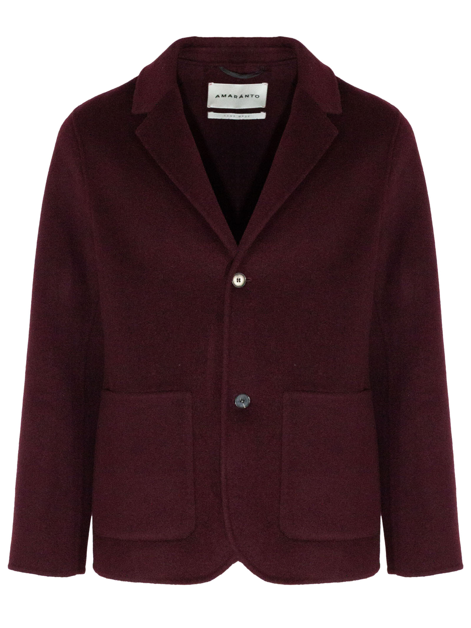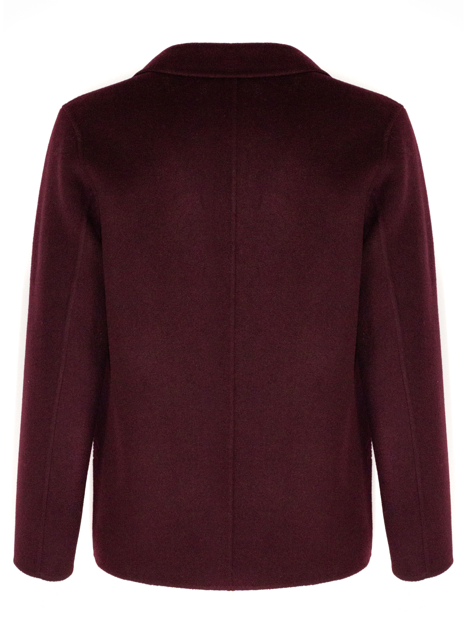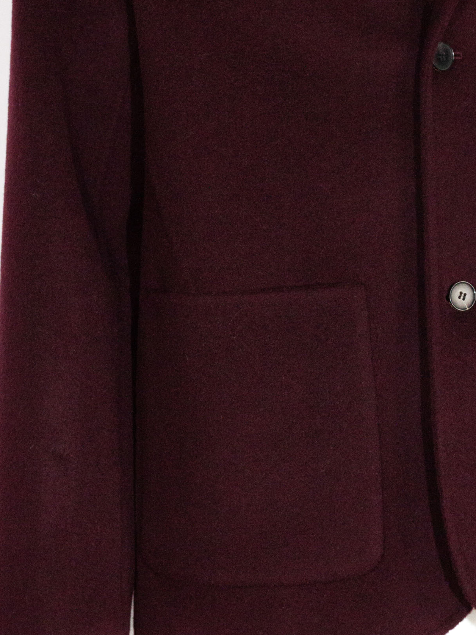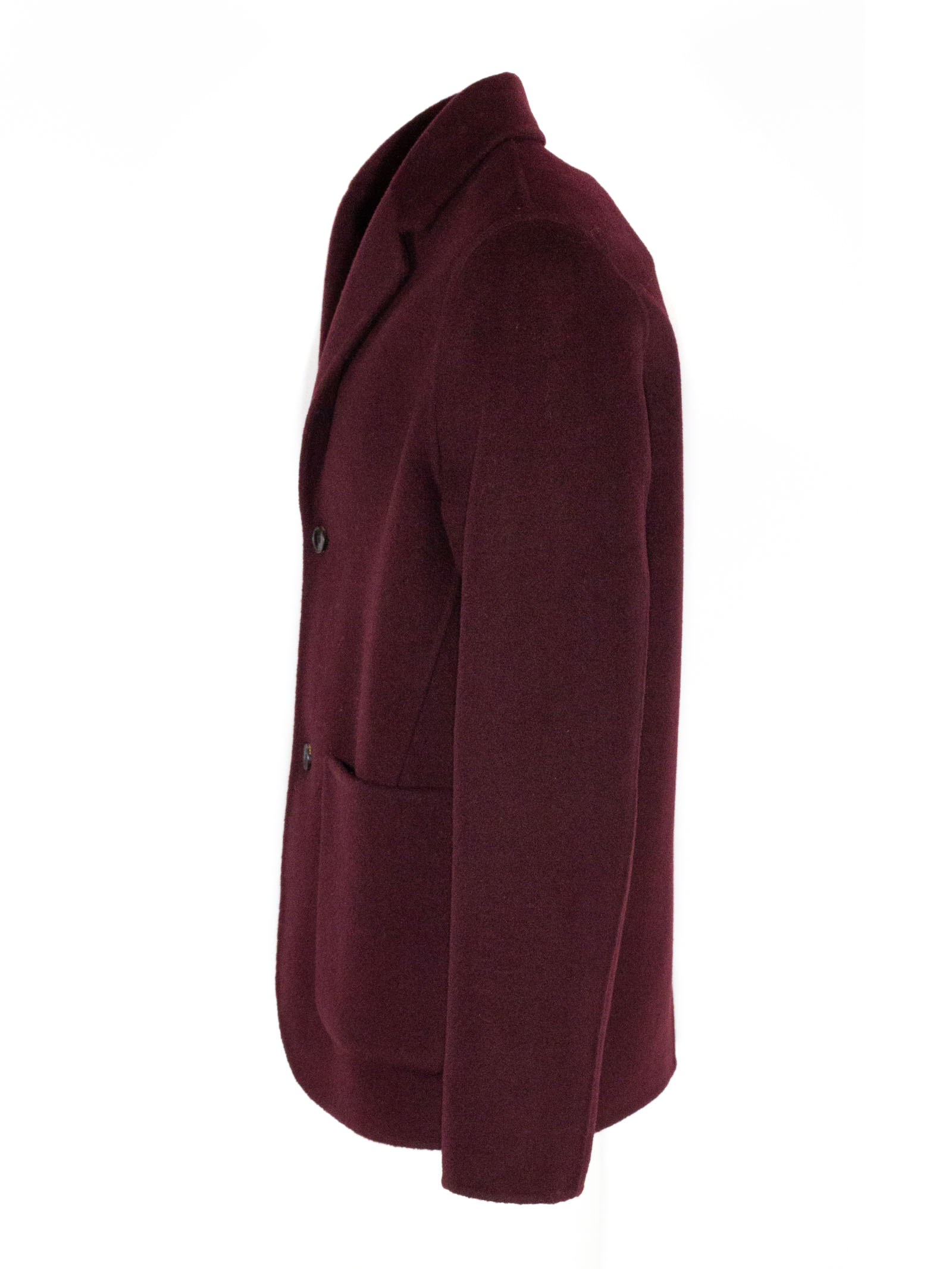 Giacca in misto lana e cashmere bordeaux con reverse classico, tasche laterali a filetto, chiusura frontale monopetto con bottoni