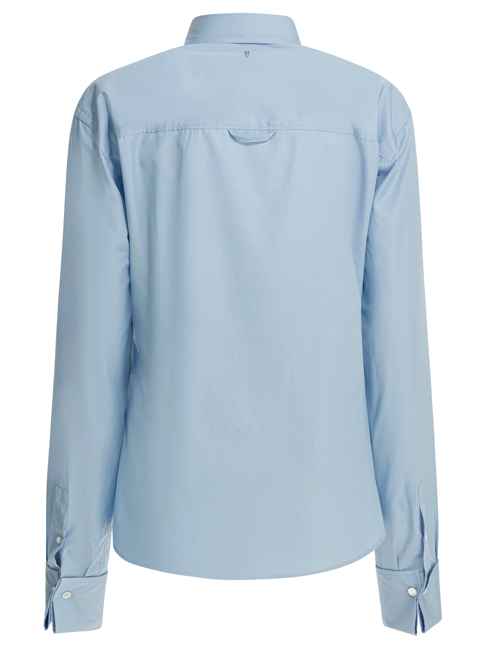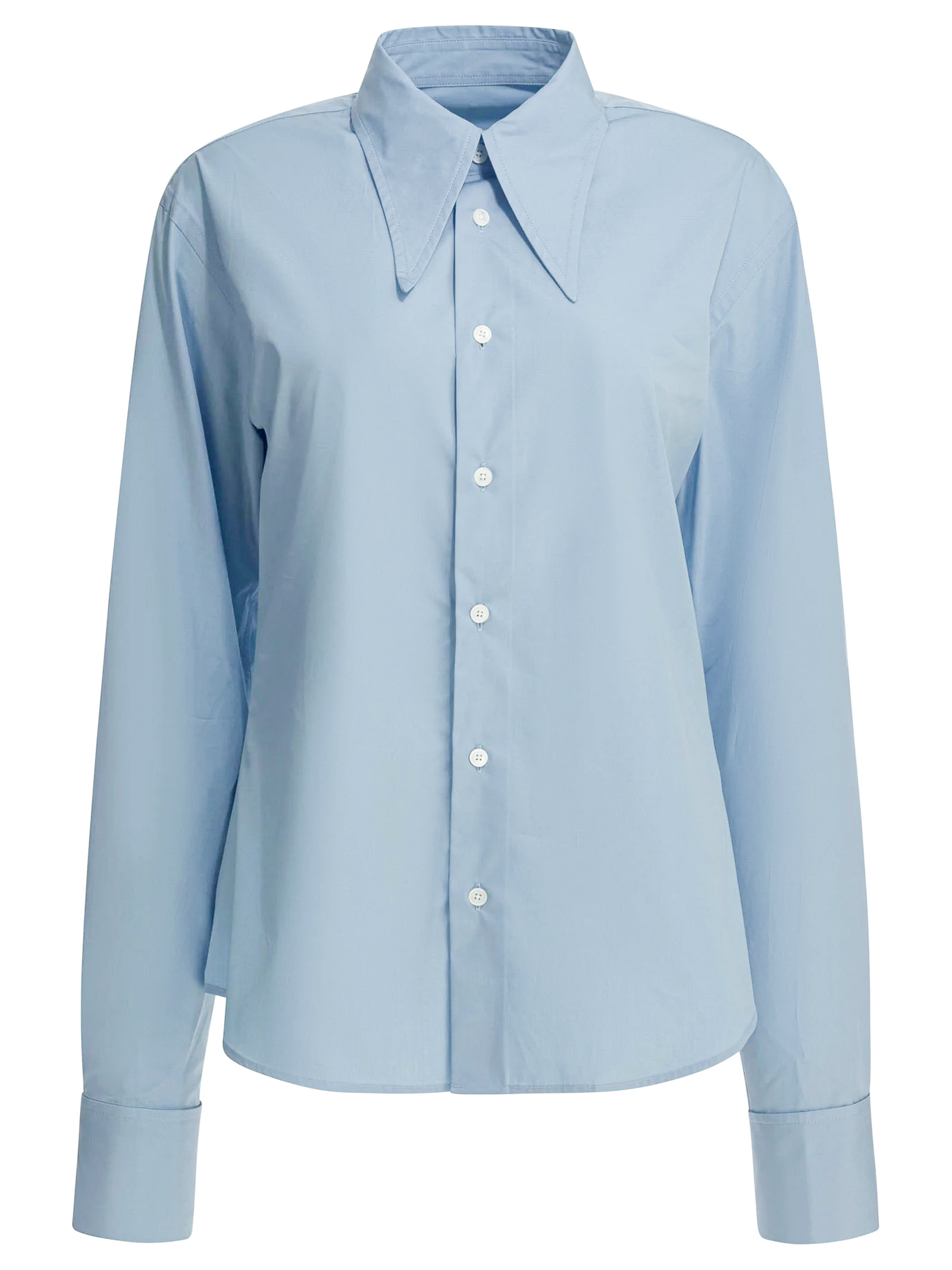 Camicia con colletto a punta in cotone blu, design con abbottonatura, colletto a punta, maniche lunghe, orlo curvo
