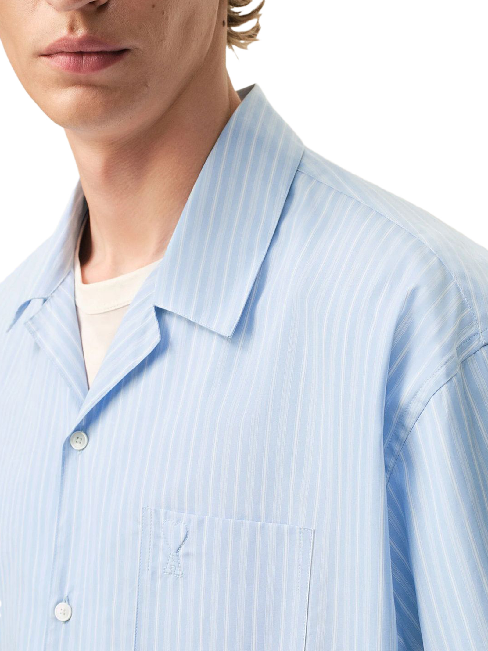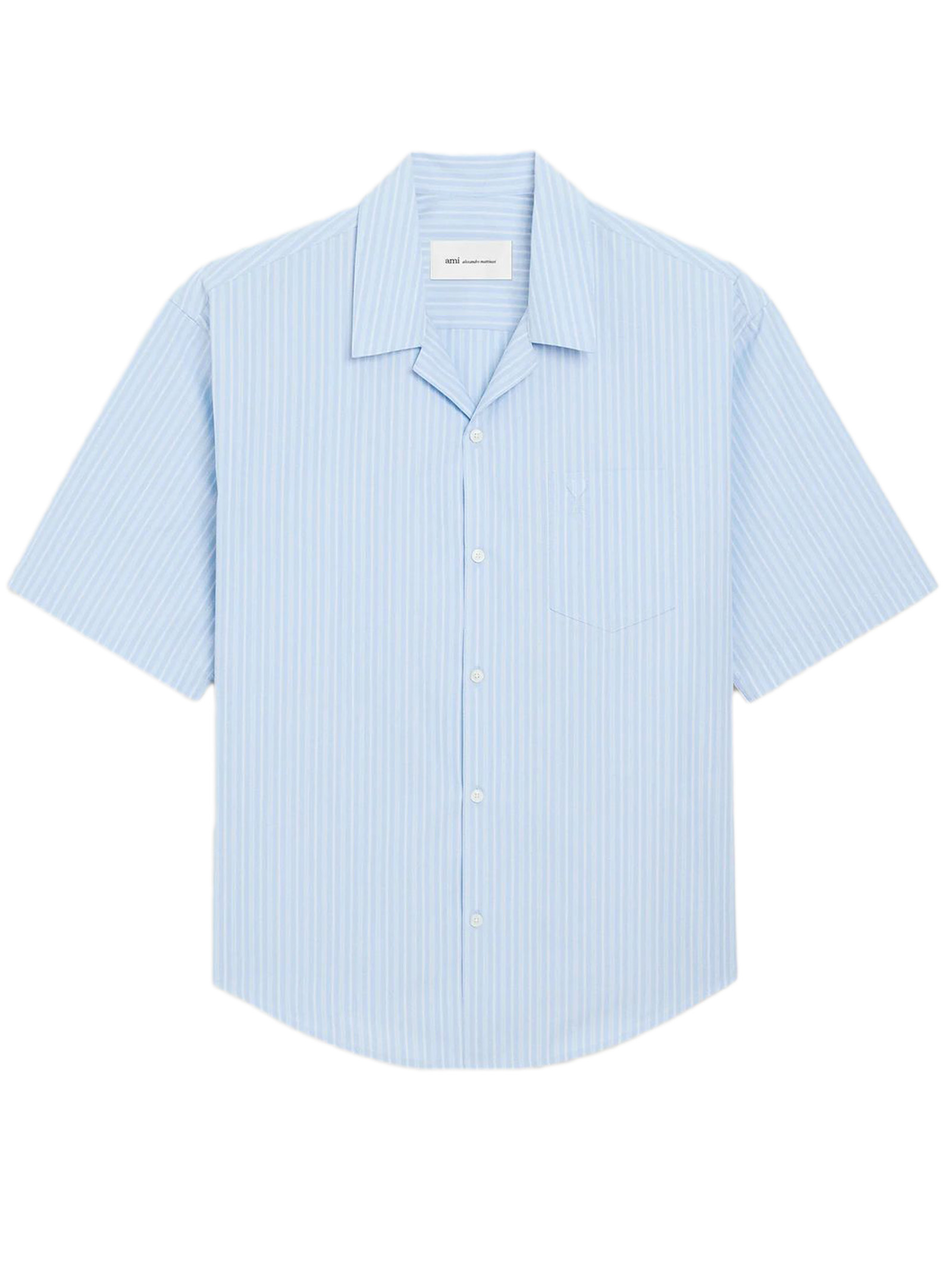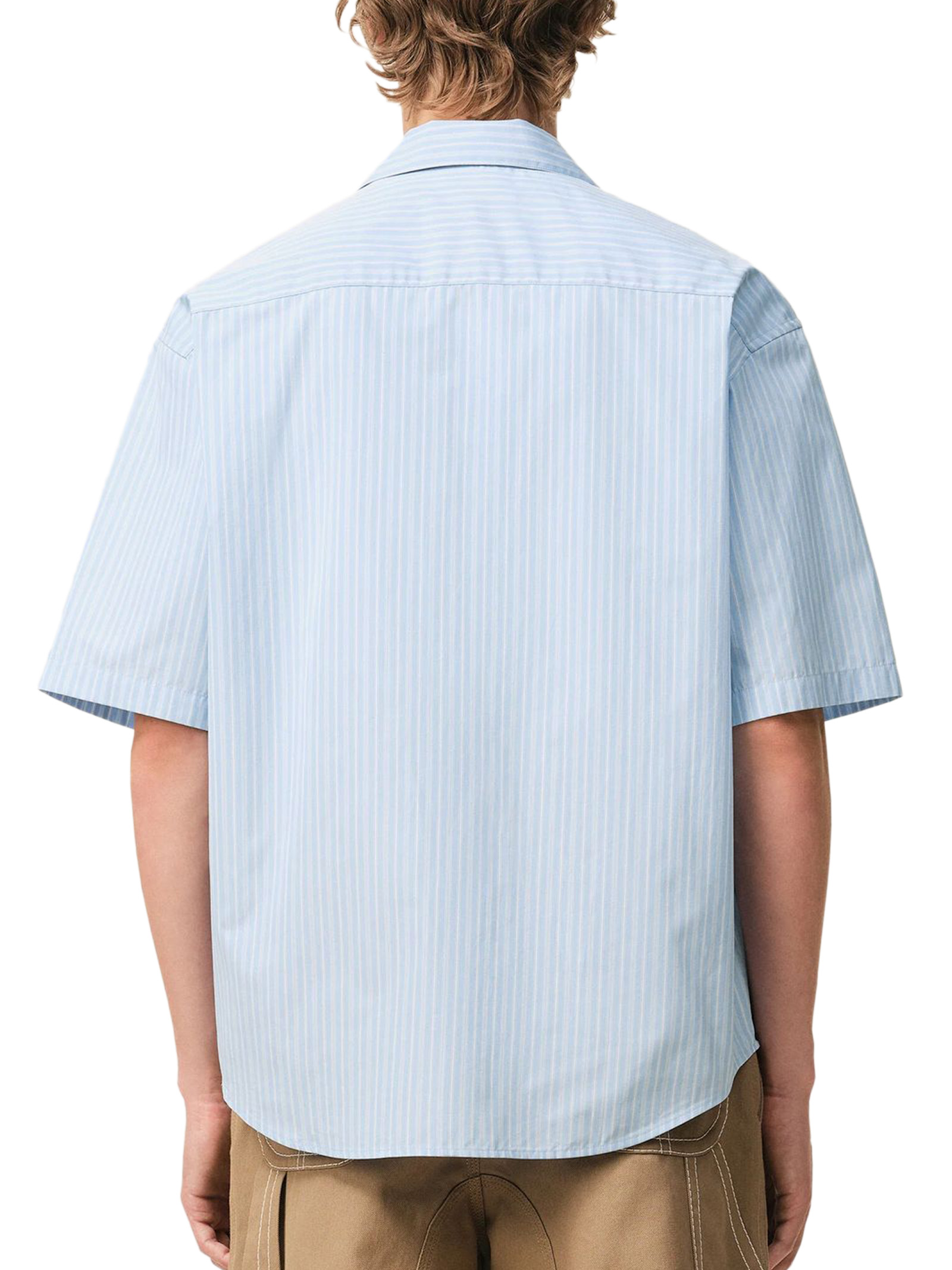 Camicia con collo aperto e maniche corte in popeline di cotone a righe